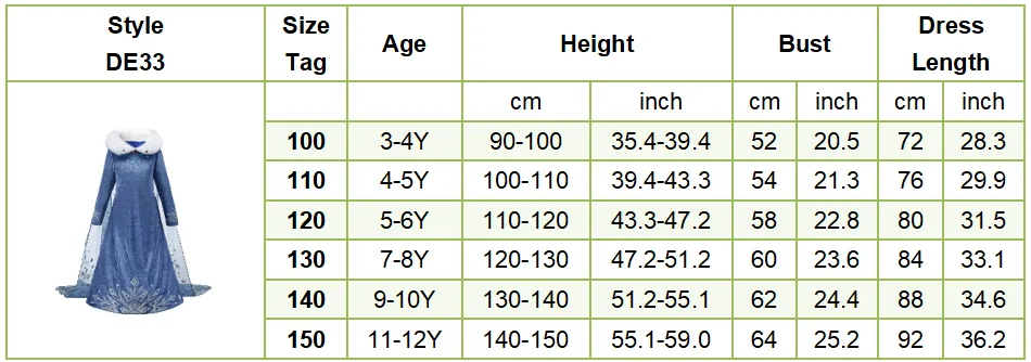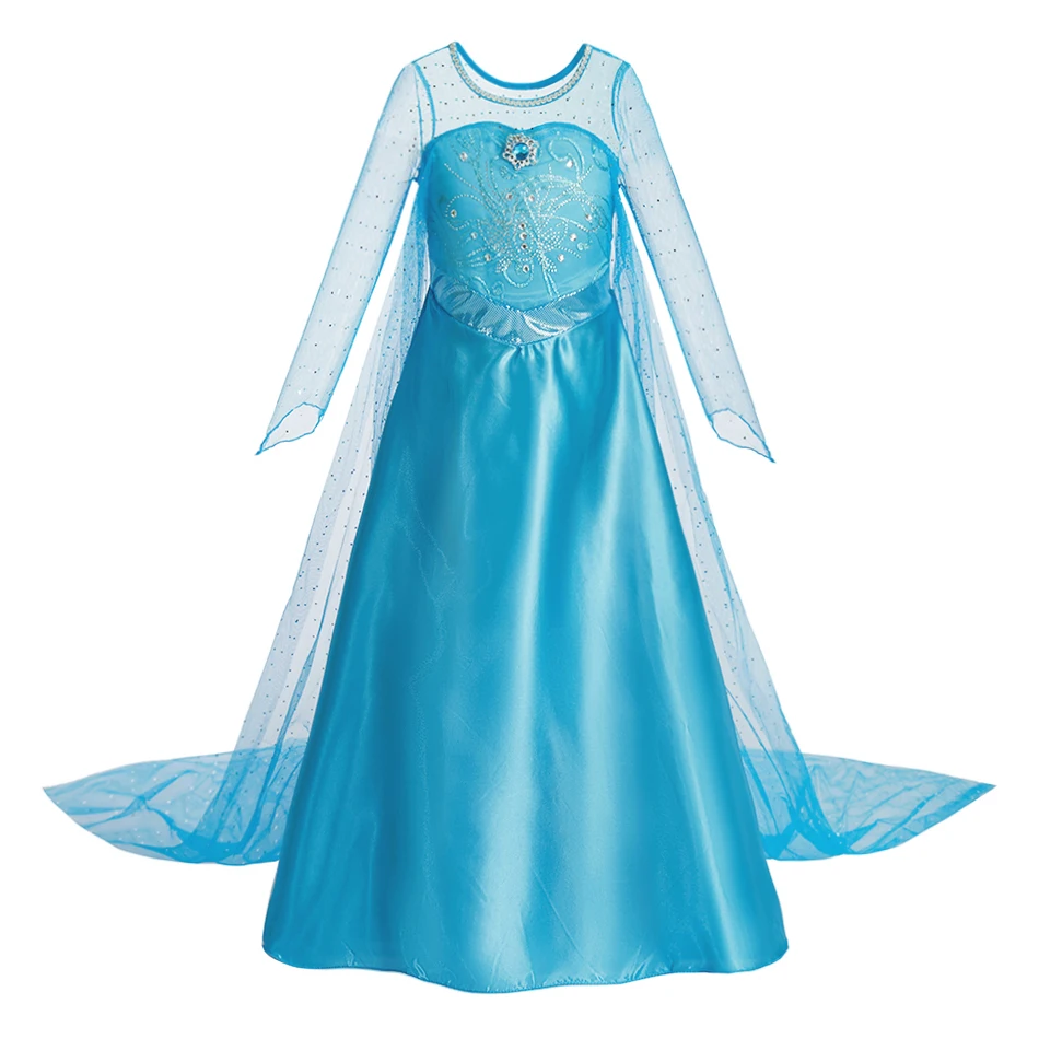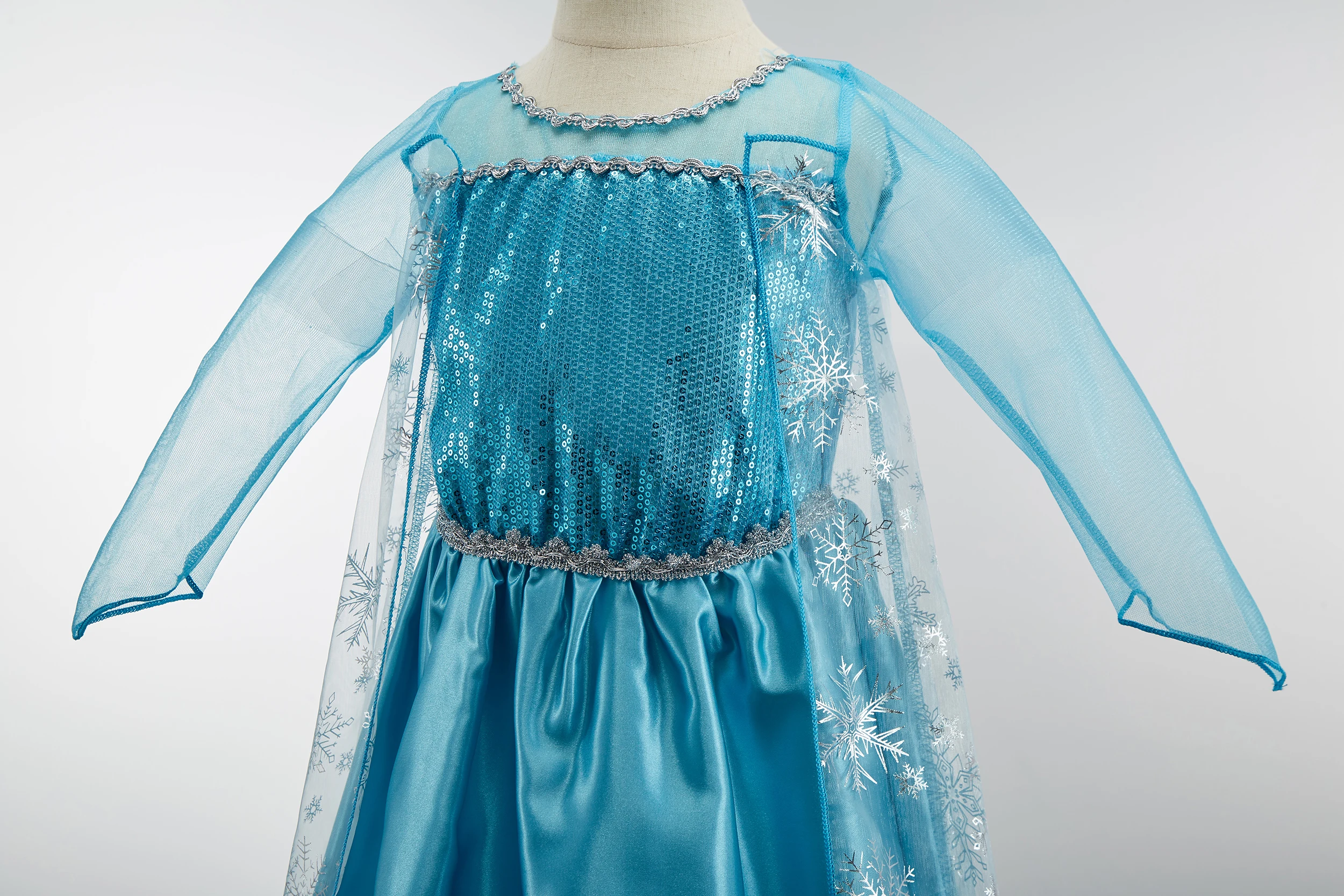 Nombre del vestido: Vestidos de Cosplay de Elsa para niñas, disfraz de princesa de Carnaval de Halloween para niños, reina de la nieve, ropa de fiesta de cumpleaños y Navidad