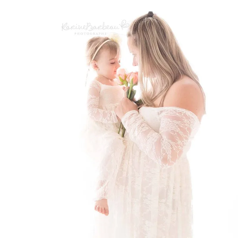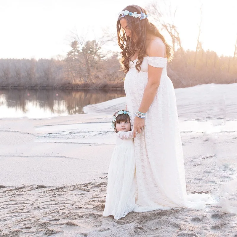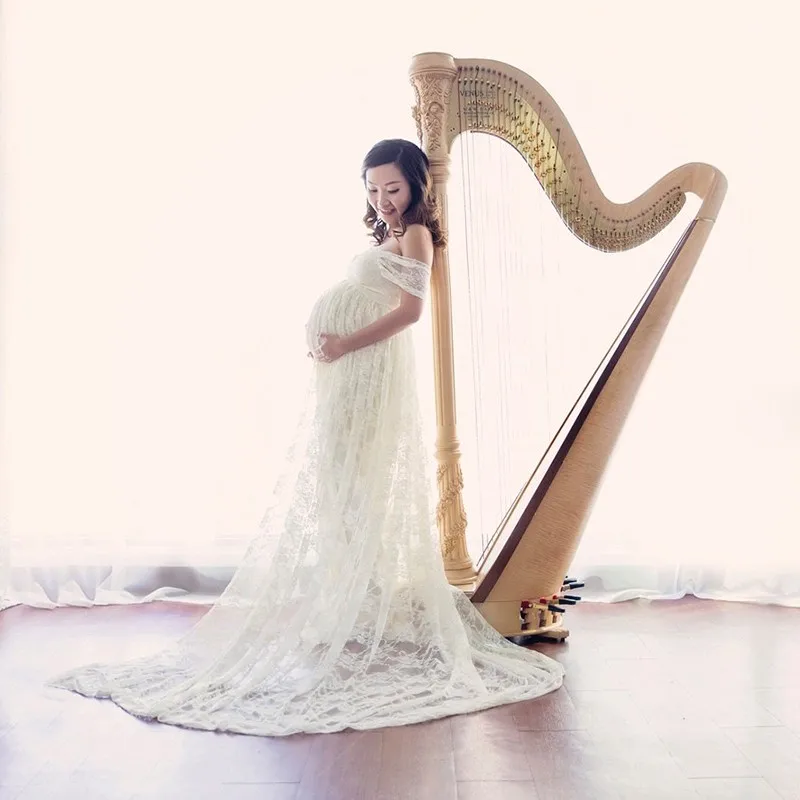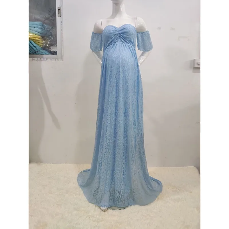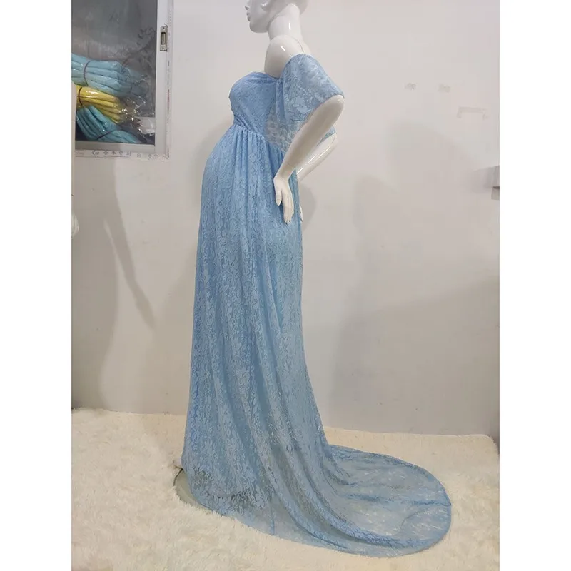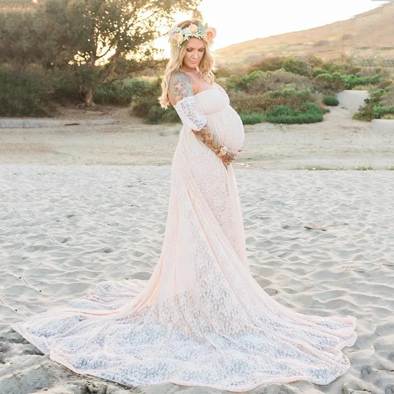 Vestidos de embarazo para sesión de fotos, vestidos para mujeres embarazadas, vestido para Baby Shower, fotografía de maternidad, vestido de cola en el suelo de encaje