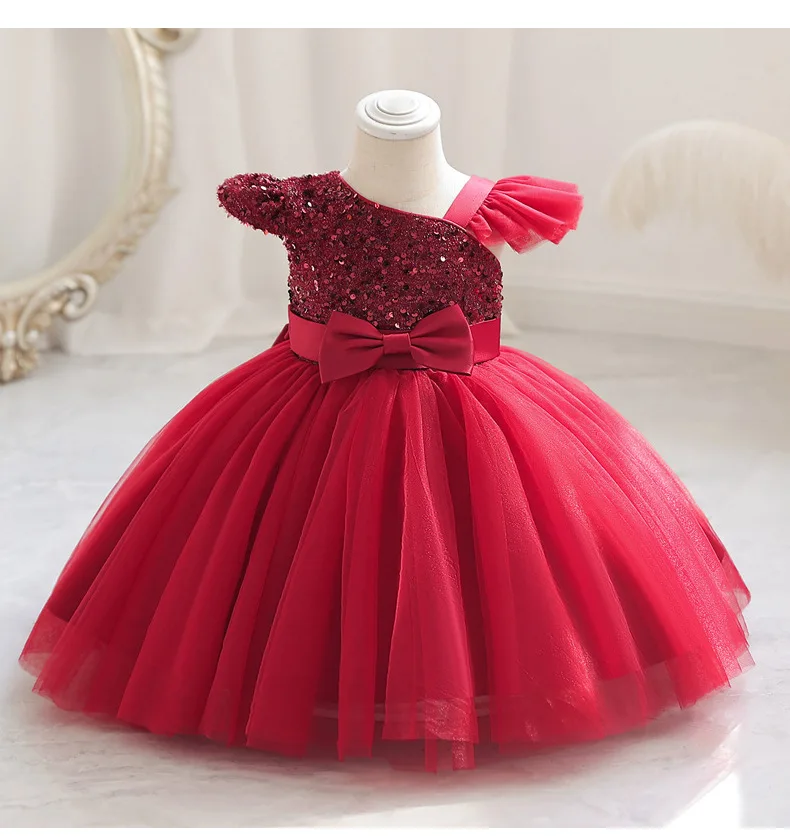 Comprar Vestidos de fiesta de lentejuelas para bebé, vestido de princesa con lazo para bautismo, boda, 1 año, vestido de dama de honor de tul