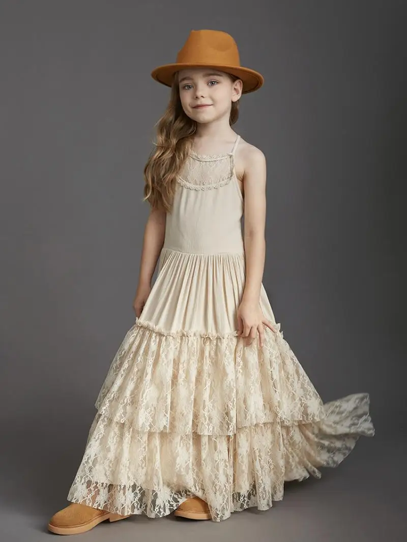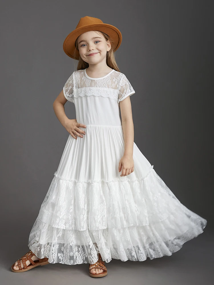 Comprar Vestidos largos de encaje de manga corta para niñas, ropa de princesa para bebés, flores, boda, fiesta de Navidad, 2024