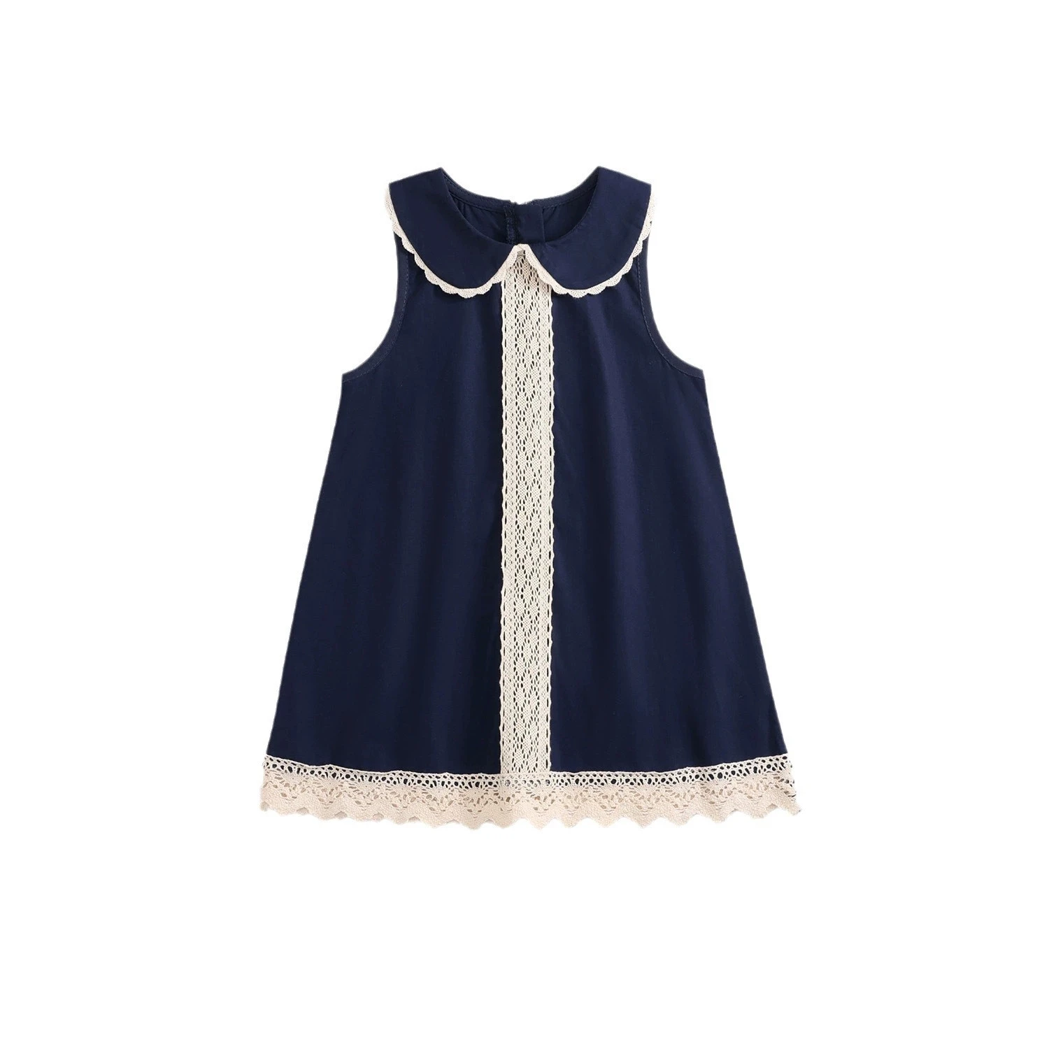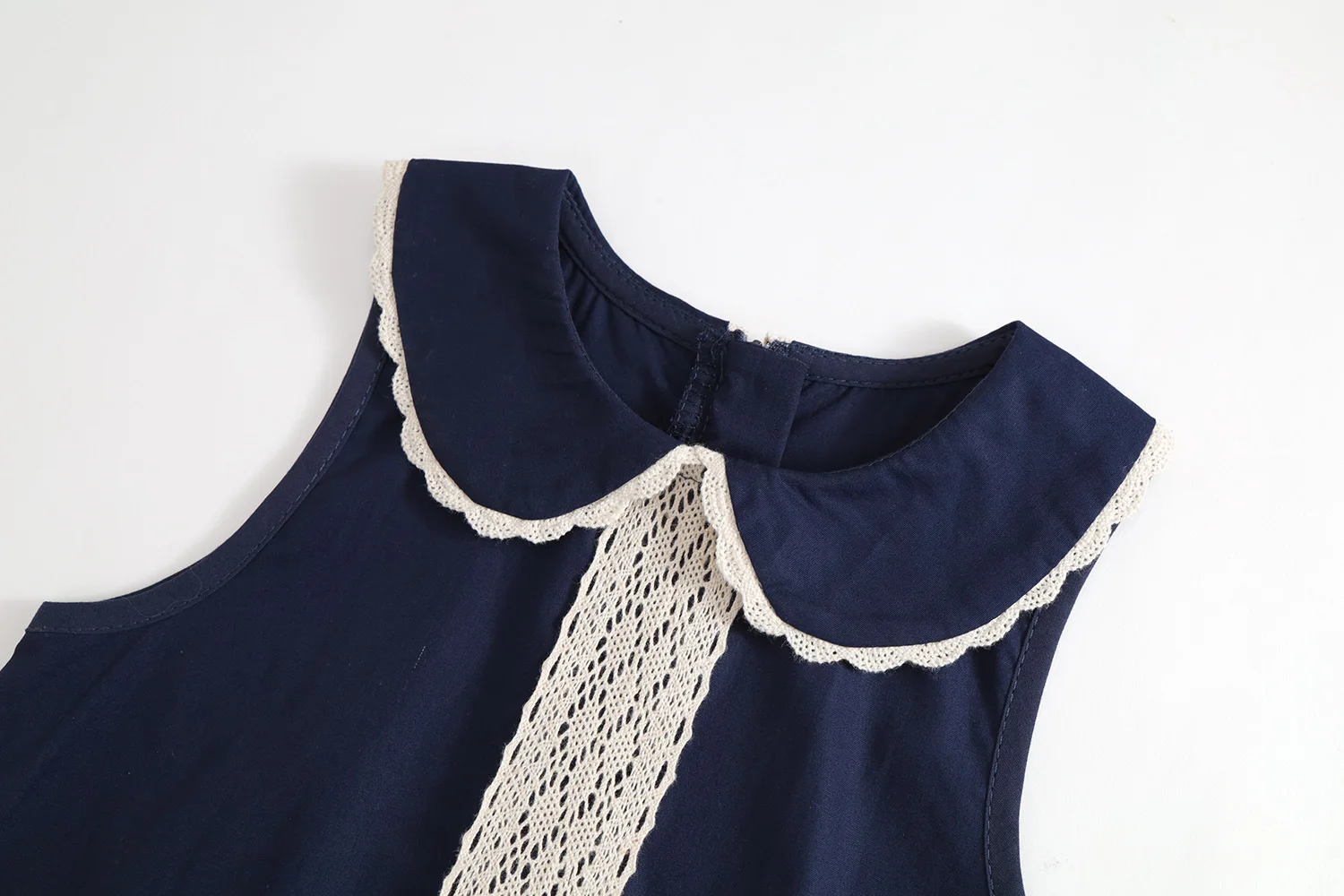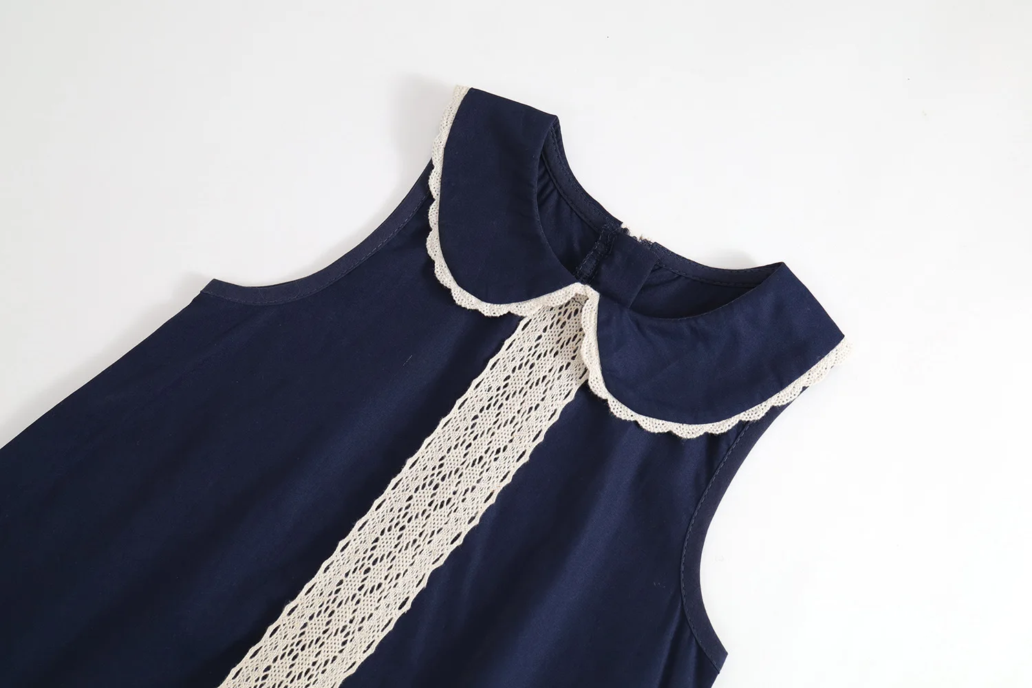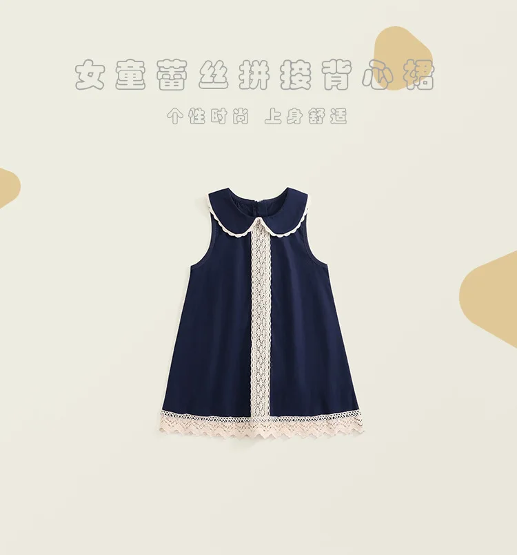 Vestidos de lujo para niñas de verano, moda coreana, cuello de muñeca, malla de encaje, sin mangas, vestido de princesa vaquero, Boutique, ropa para niños BC1703