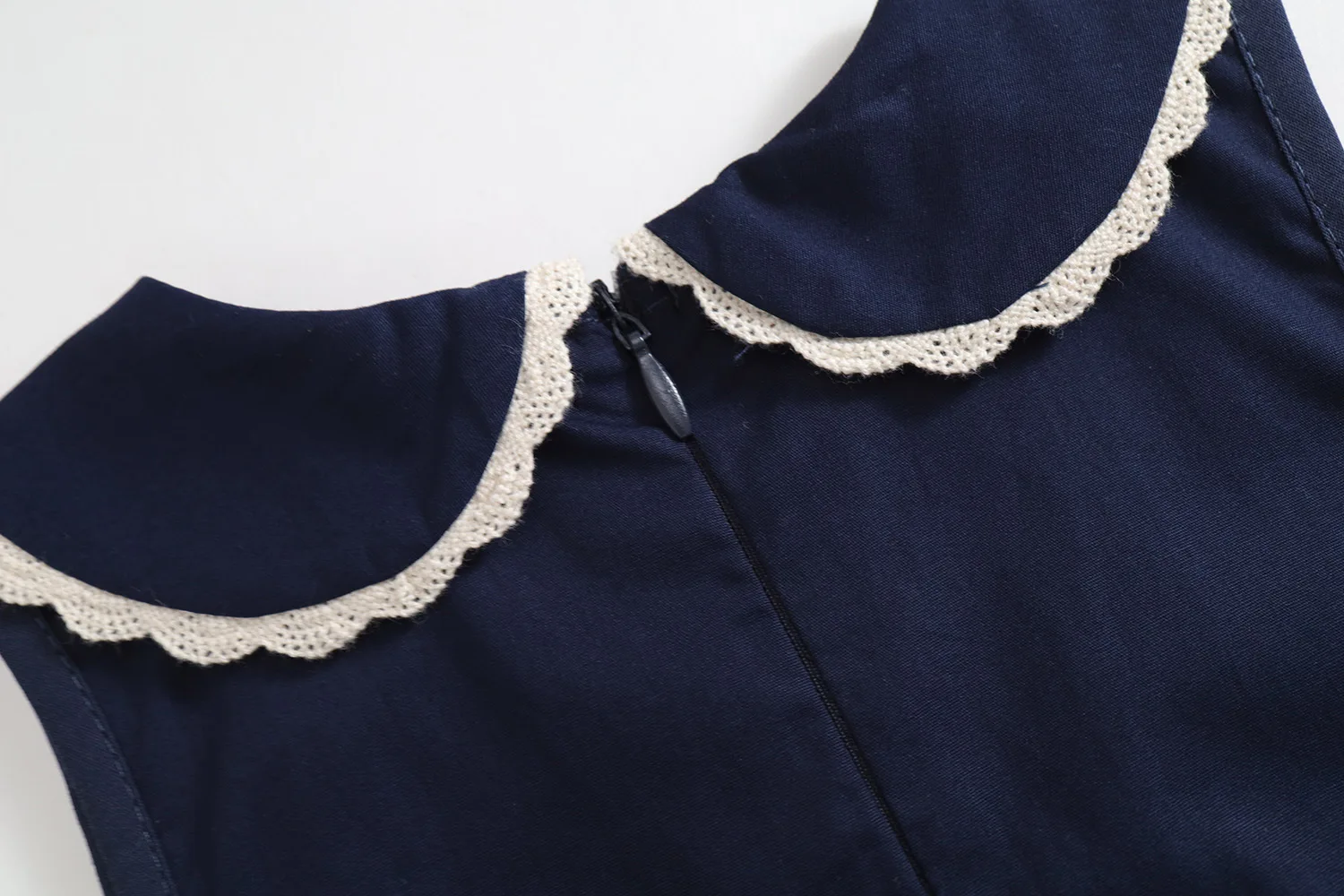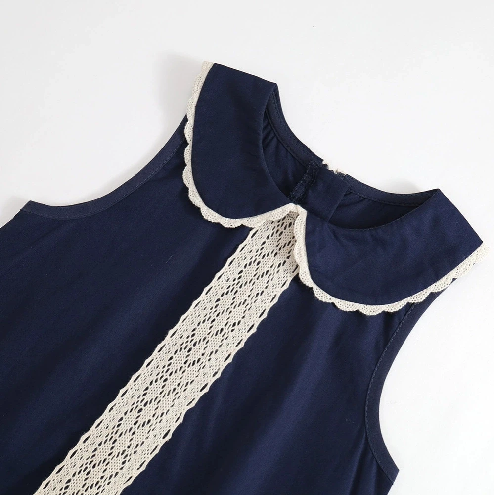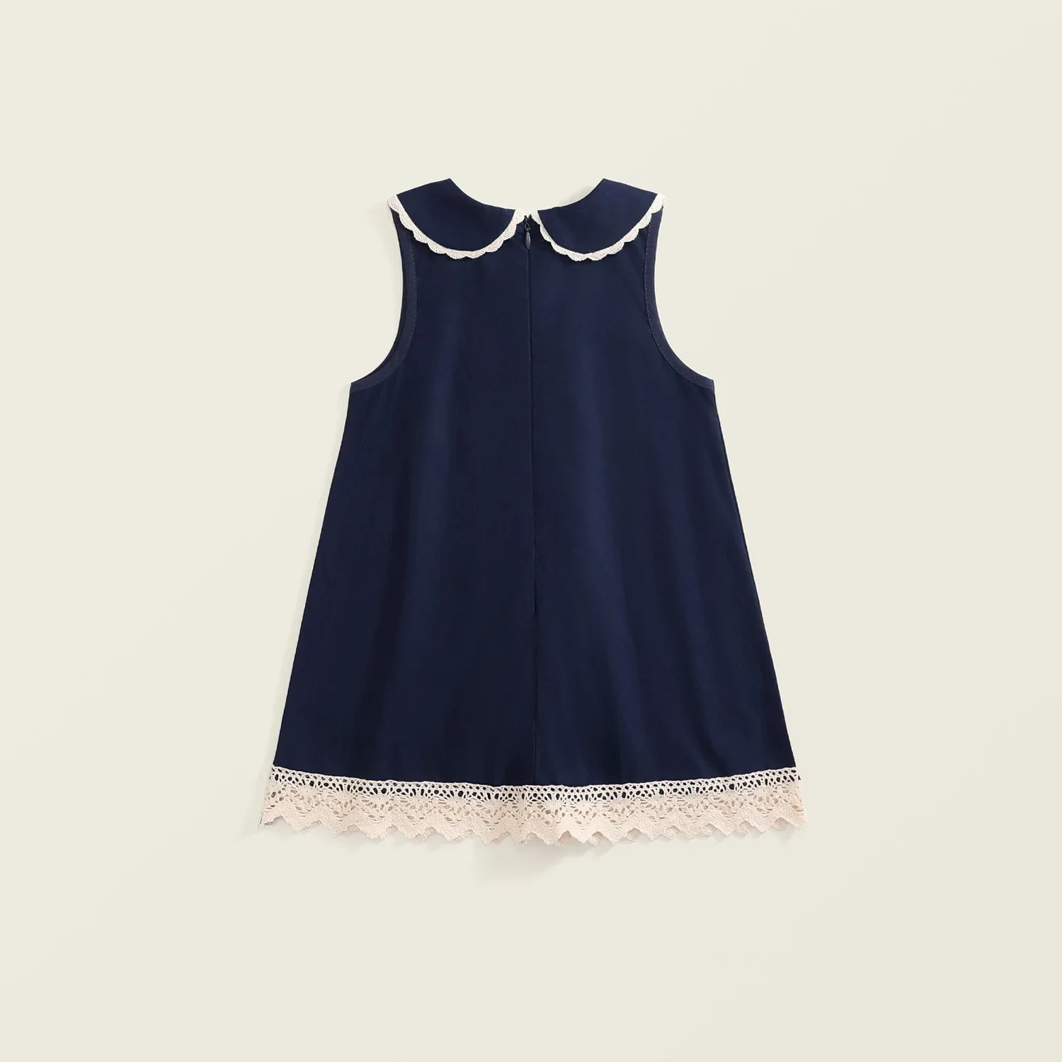 Vestidos de lujo para niñas de verano, moda coreana, cuello de muñeca, malla de encaje, sin mangas, vestido de princesa vaquero, Boutique, ropa para niños BC1703