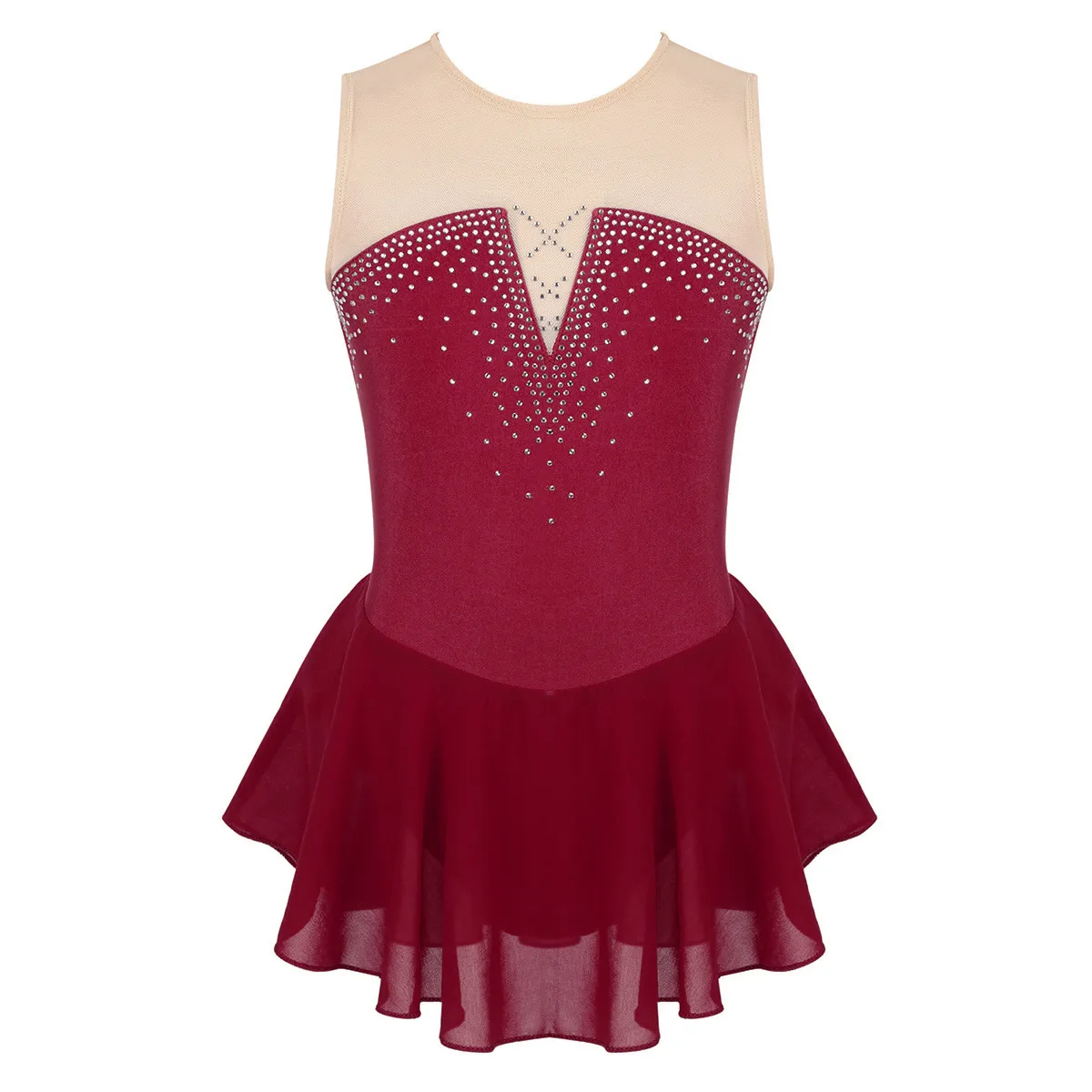 Comprar Vestidos de malla sin mangas para niñas, leotardo brillante con incrustaciones de diamantes de imitación, empalme, patinaje, Ballet, baile, gimnasia, bailarina, tutú