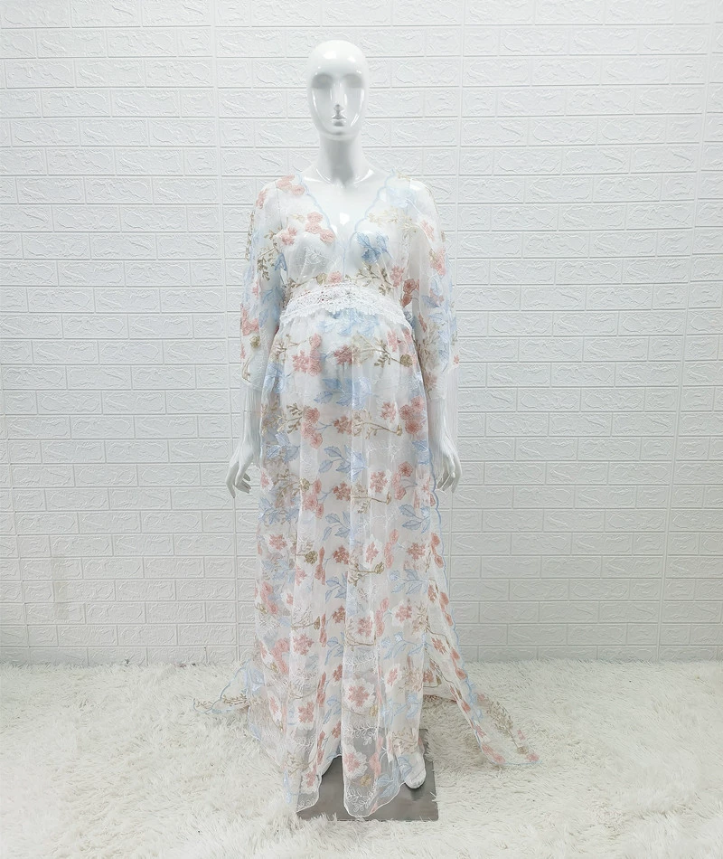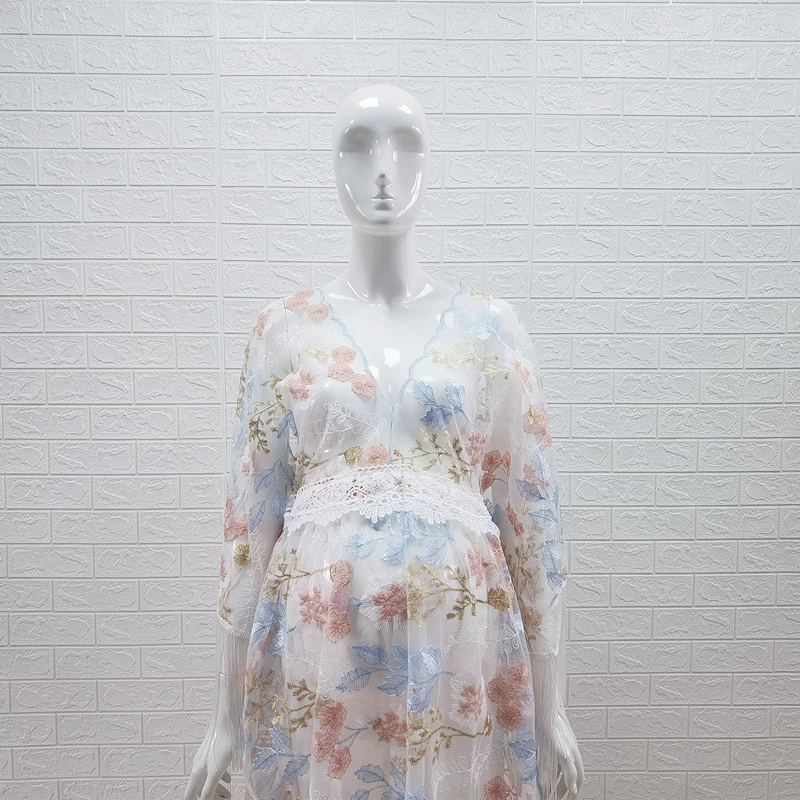 Comprar Vestidos de maternidad bohemios bordados para fotografía, sesión de fotos de embarazo, vestido largo de encaje bohemio