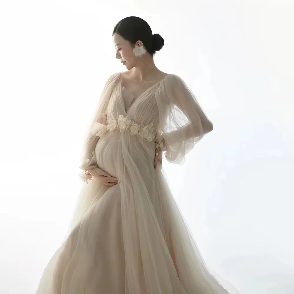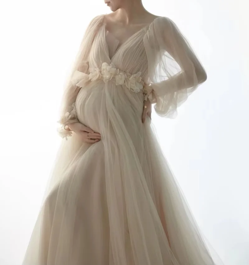 Comprar Vestidos de maternidad de malla para sesión de fotos, vestidos largos florales de tul de manga larga para mujeres embarazadas, fotografía, vestido de sesión de embarazo