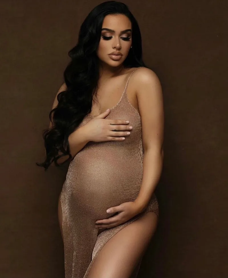 Comprar Vestidos de maternidad para sesión de fotos, vestido de embarazo, sesión de fotografía, bata de punto dorada, accesorios de ropa
