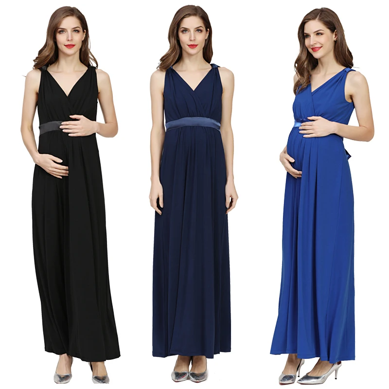 1) Descripción: Vestidos de maternidad de verano Bonita ropa de fiesta para embarazadas y vestidos generosos con cuello en V Sin mangas Ropa de foto sexy para mujeres embarazadas