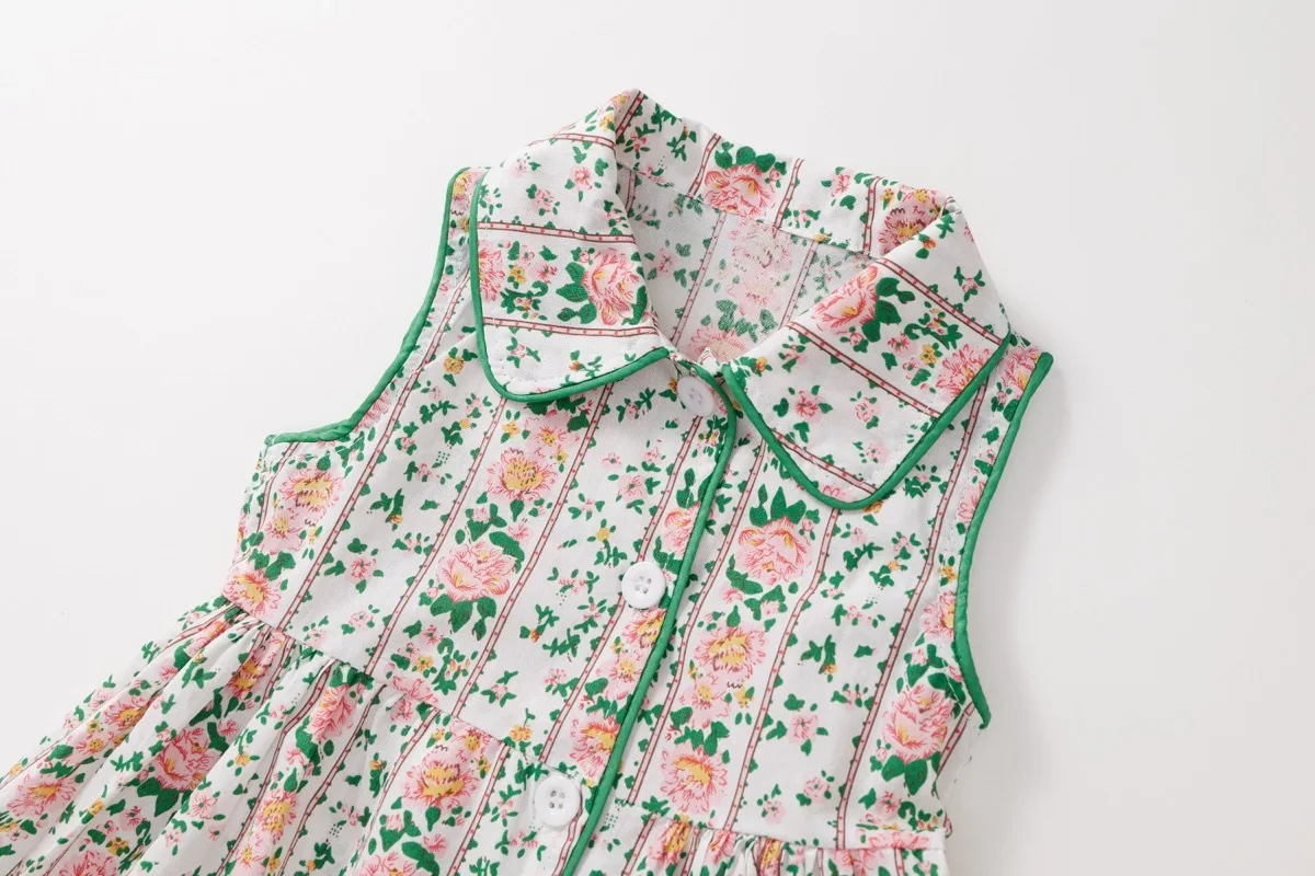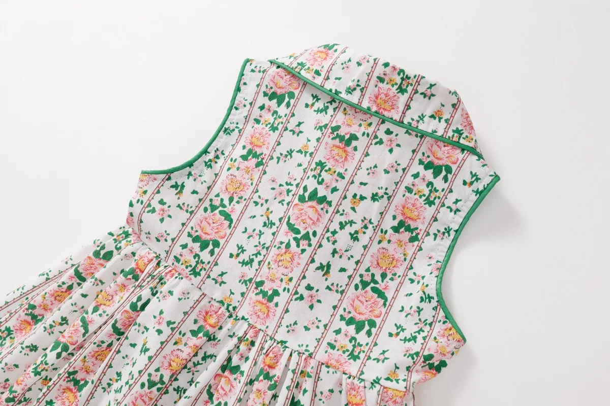 Vestidos de niña de flores de verano estilo chino moda raya sin mangas de algodón princesa Vintage vestido de bebé Boutique ropa para niños B061