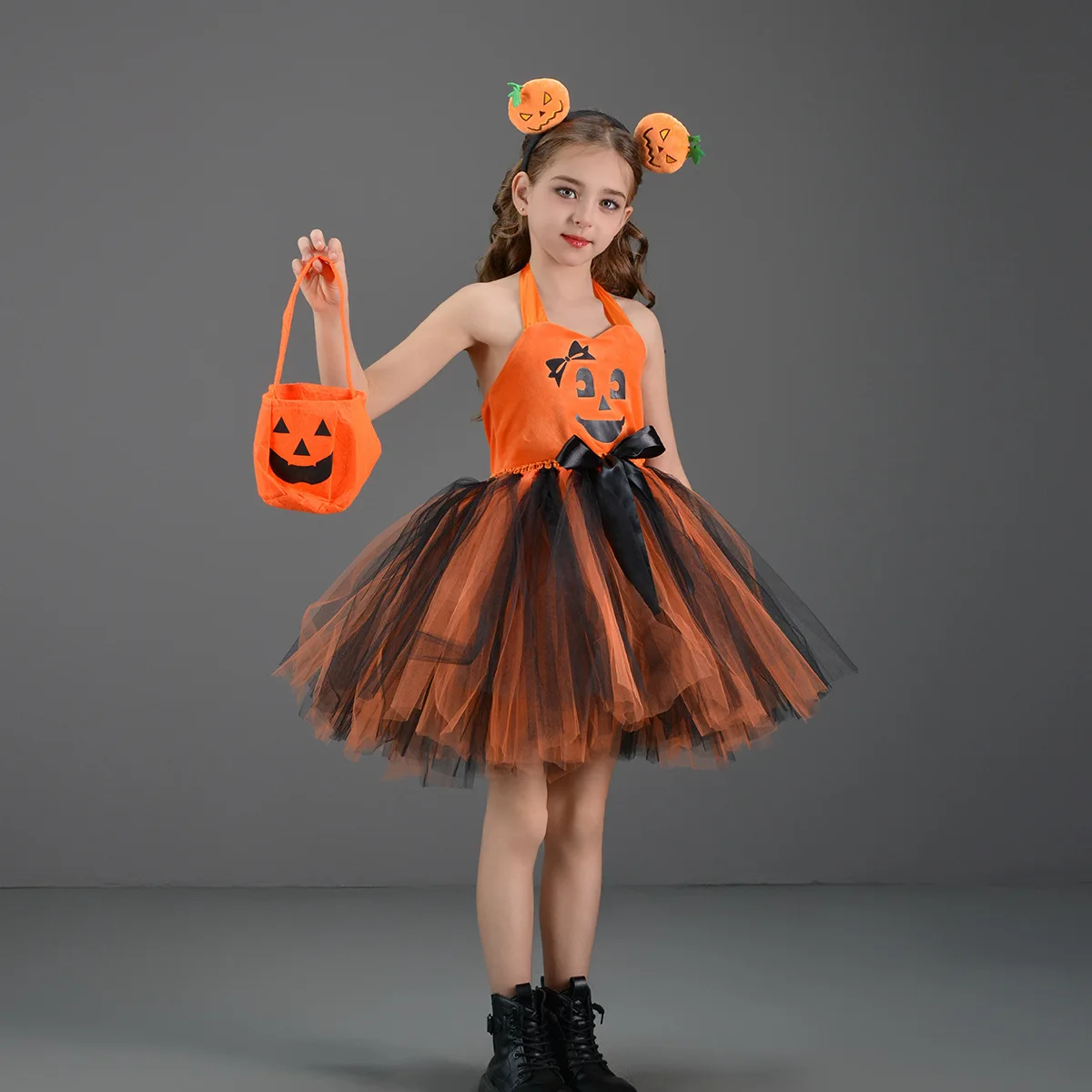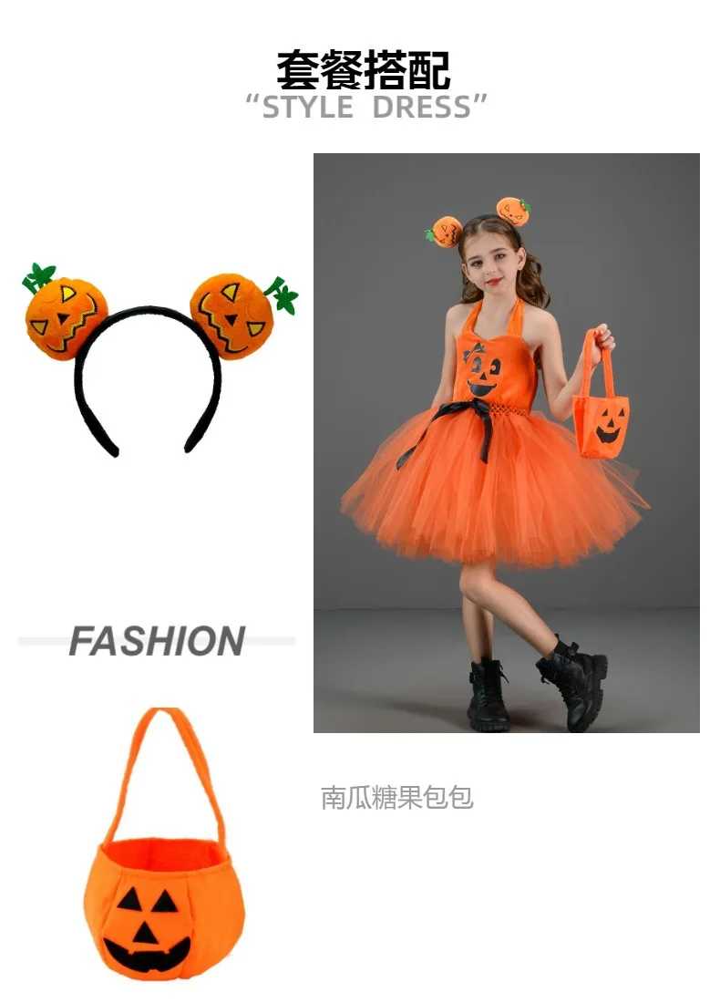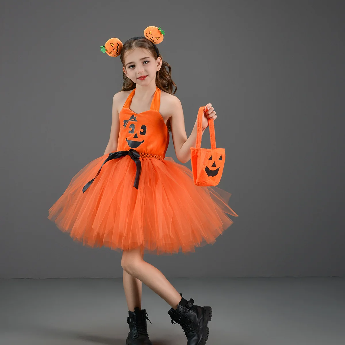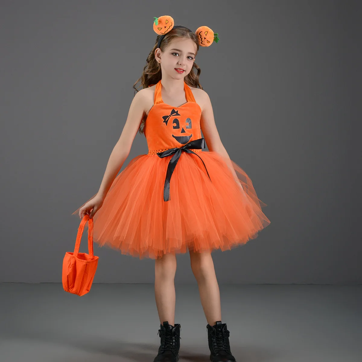 Vestidos de niña de Halloween, nueva moda, vestido sencillo para niña, vestido de fiesta elegante clásico Retro, Cosplay de calabaza, conjuntos animados lindos para niños