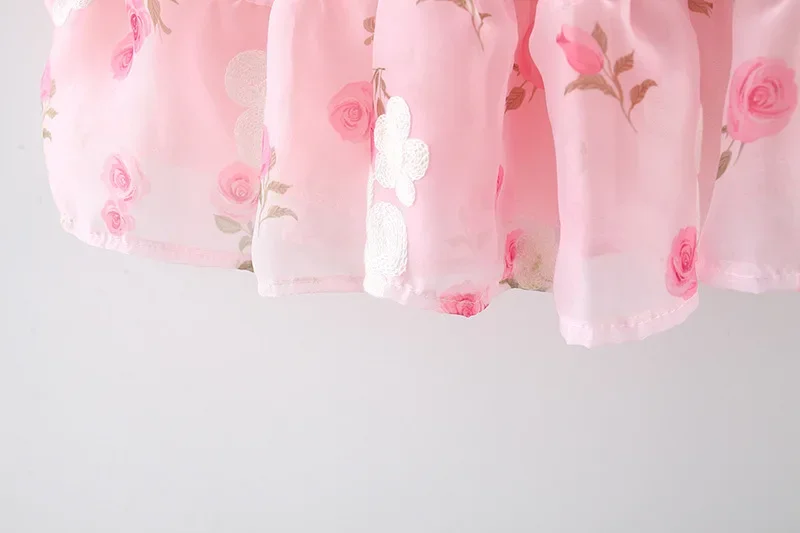 Comprar Vestidos de niña de verano con estampado de flores degradadas, decoración trasera con lazo, vestido de niña dulce Estilo Princesa, ropa de moda