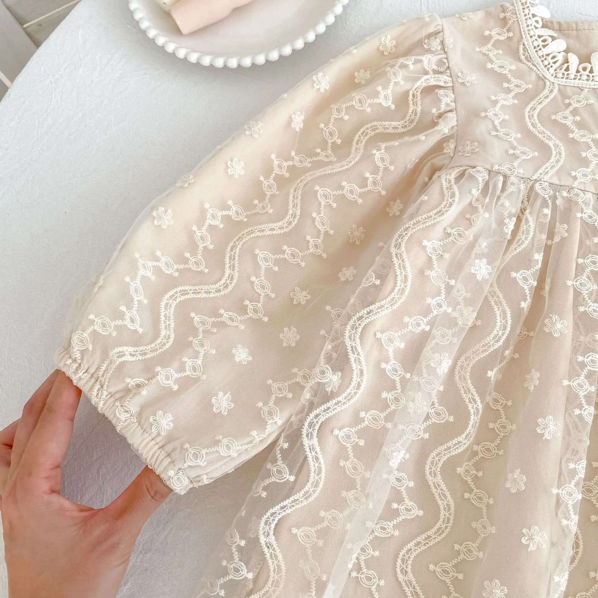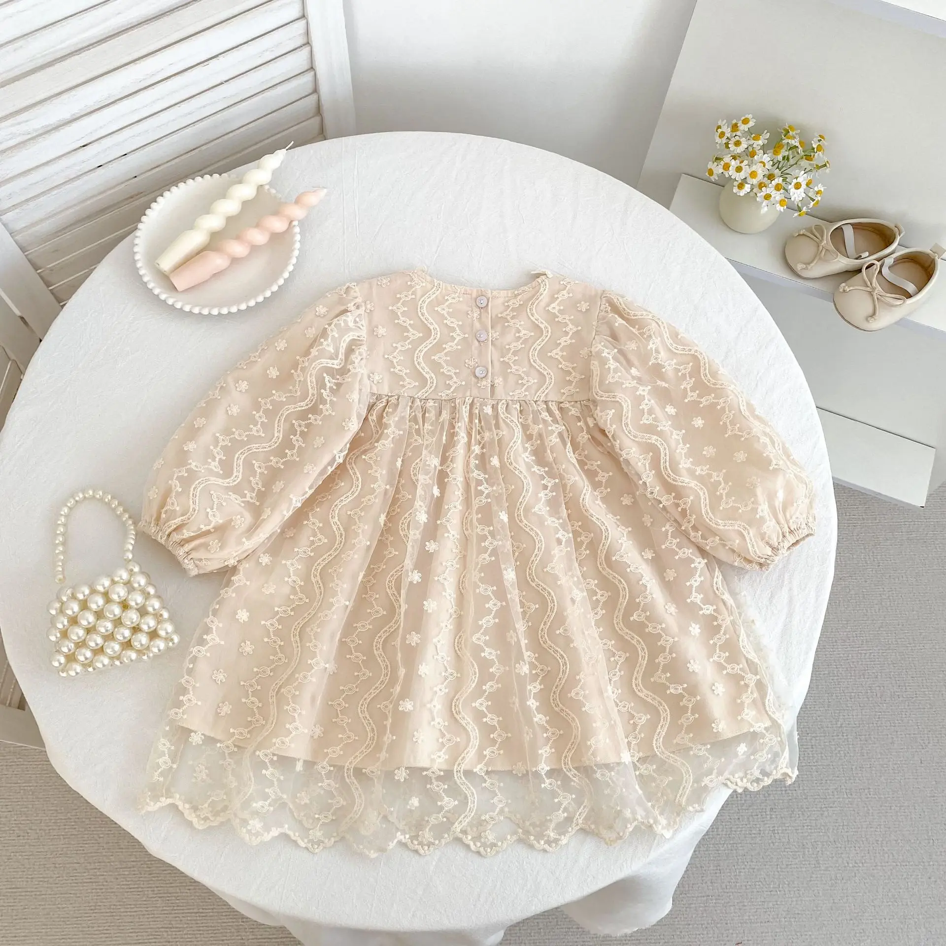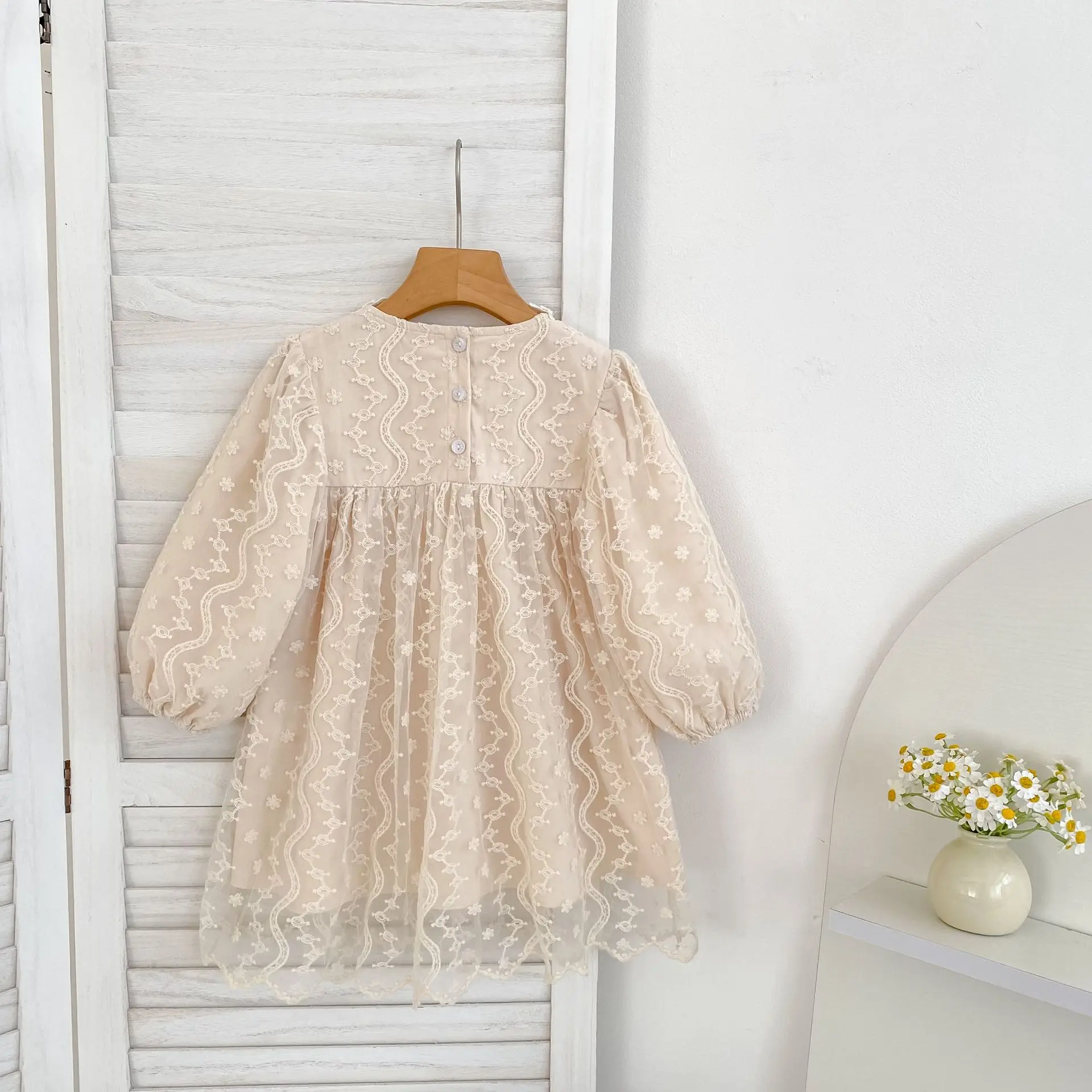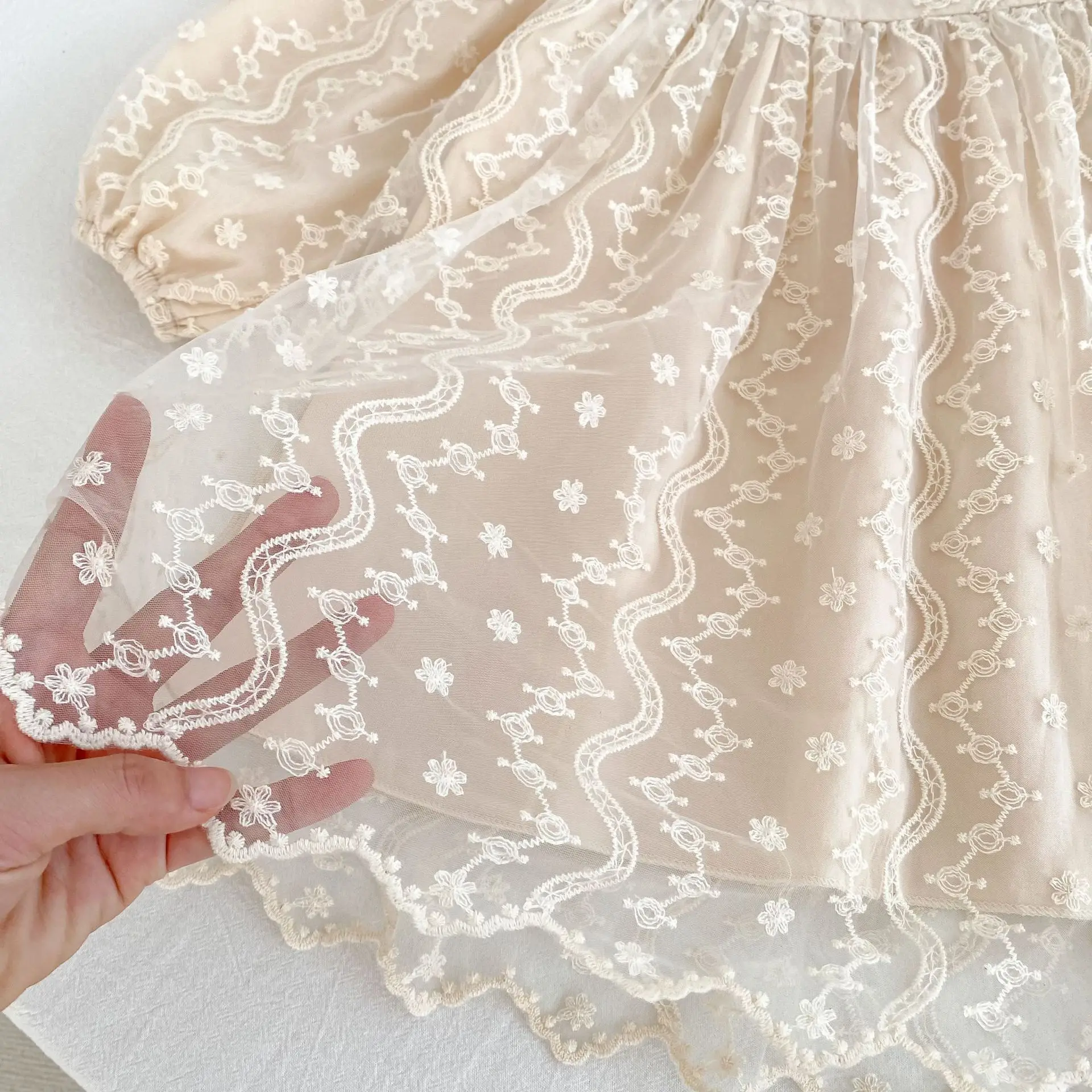 Vestidos de princesa de encaje de tul para niñas de estilo coreano: trajes para hermanos bordados de manga larga, ropa para niños esponjosa y agradable para la piel