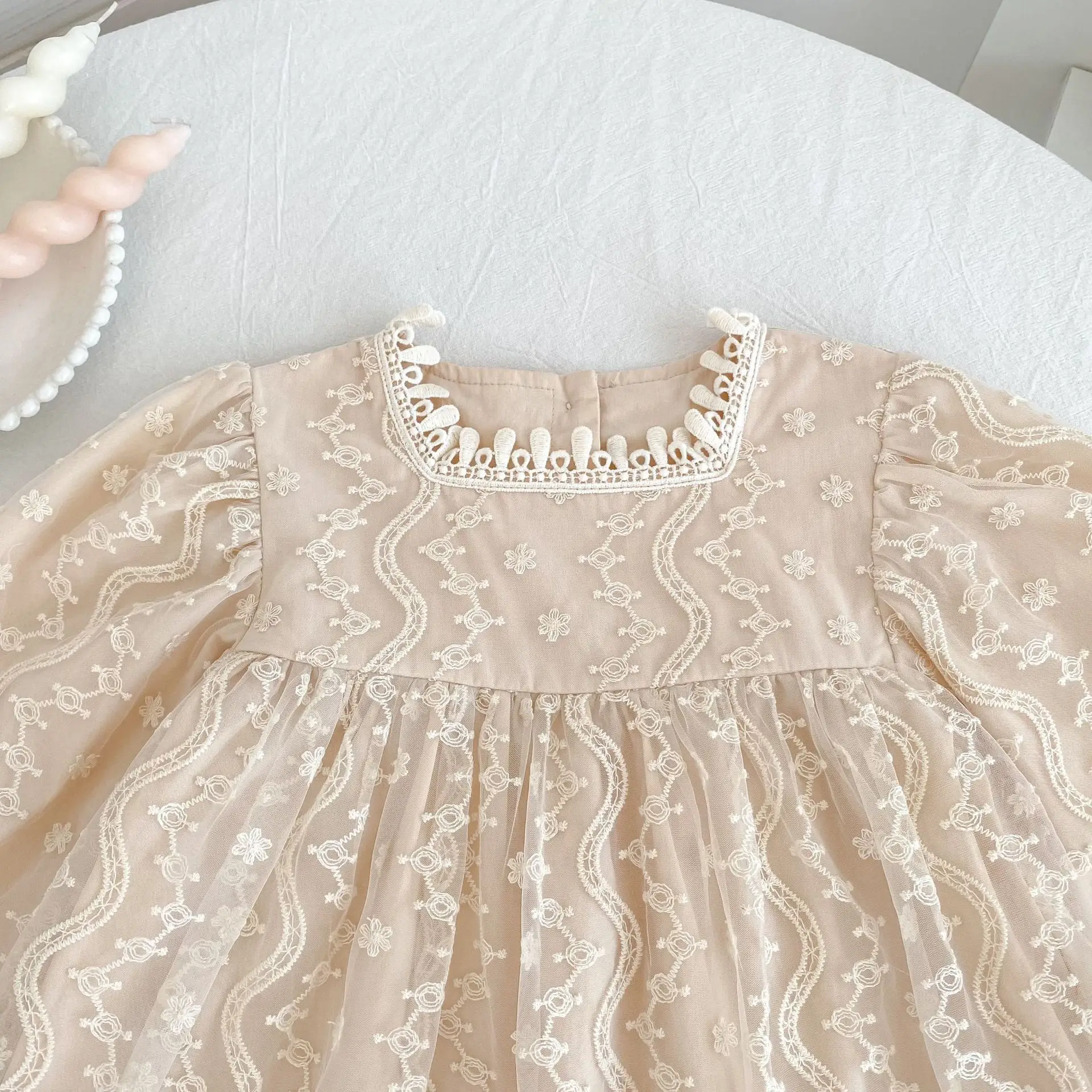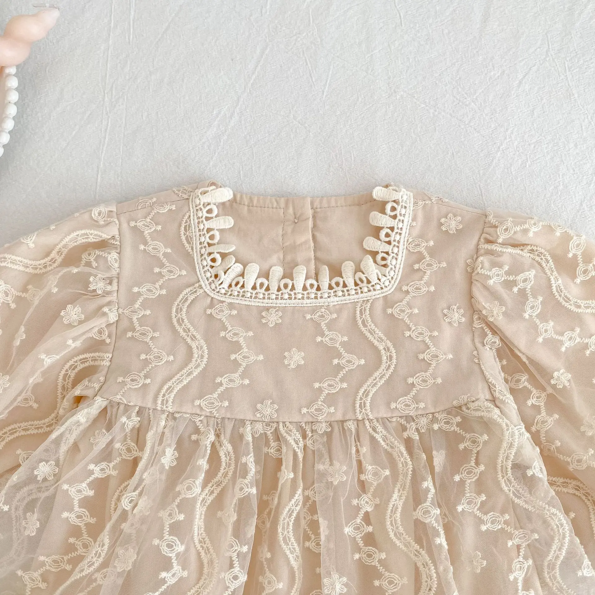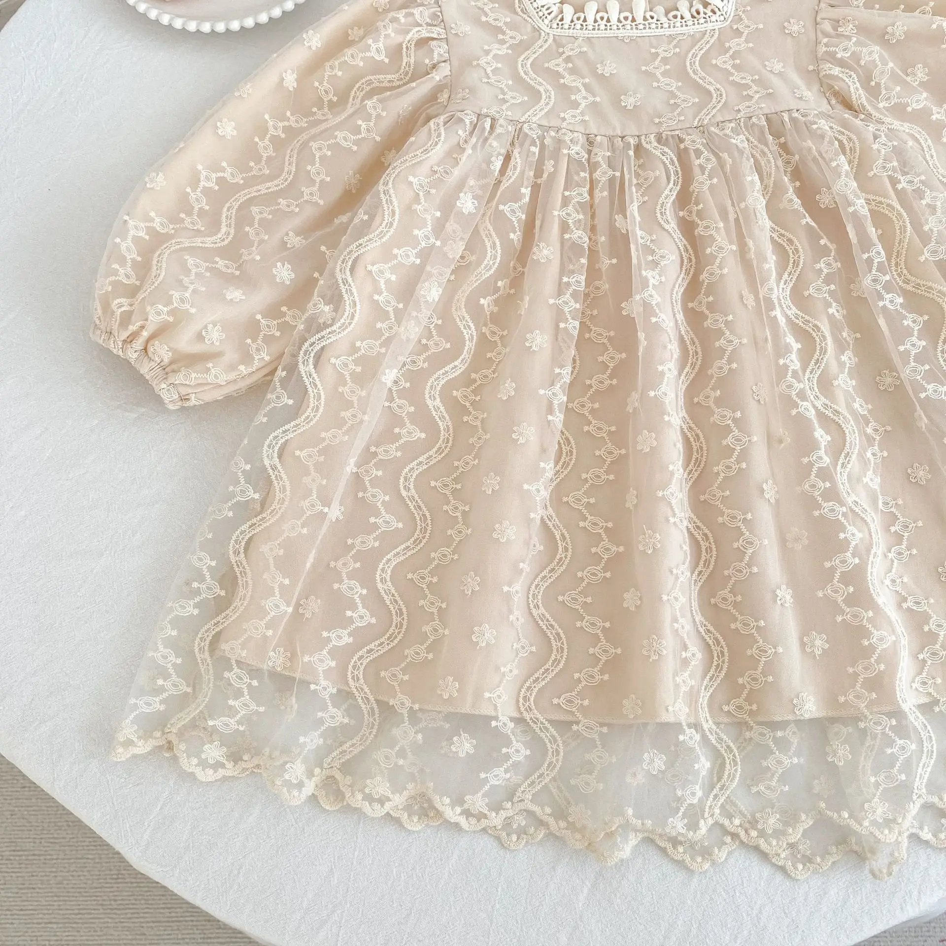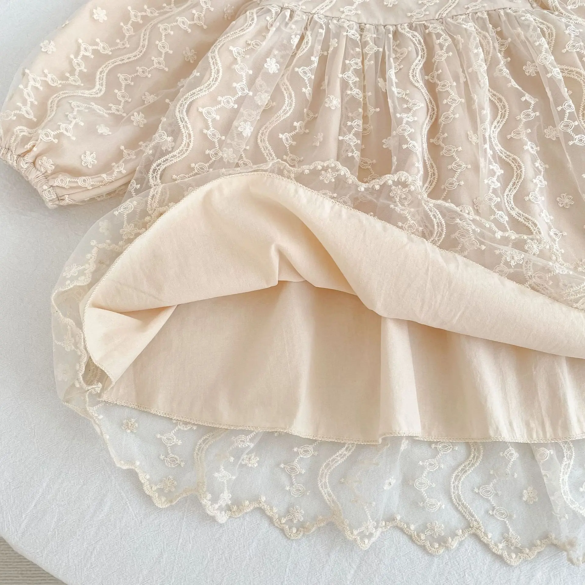 Vestidos de princesa de encaje de tul para niñas de estilo coreano: trajes para hermanos bordados de manga larga, ropa para niños esponjosa y agradable para la piel