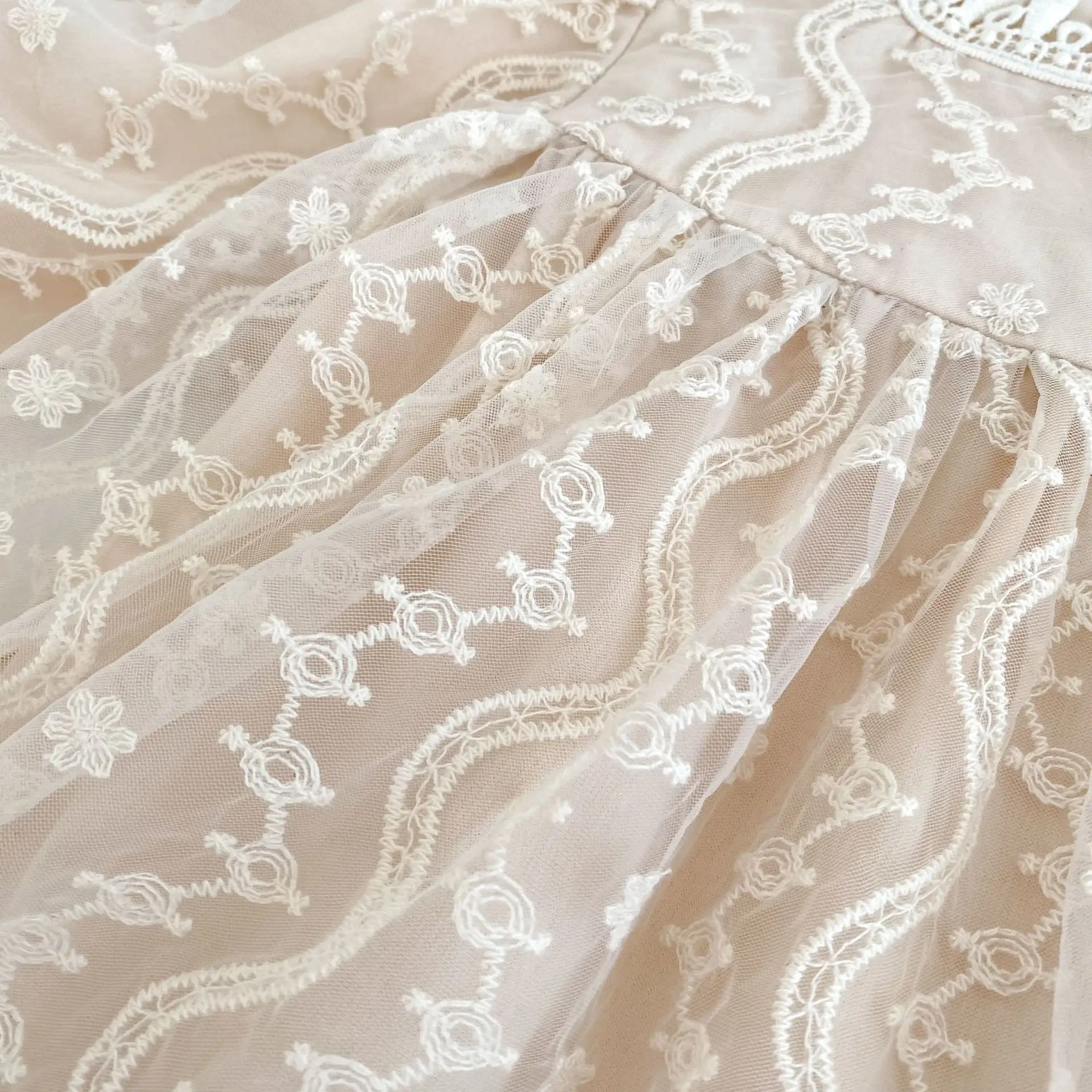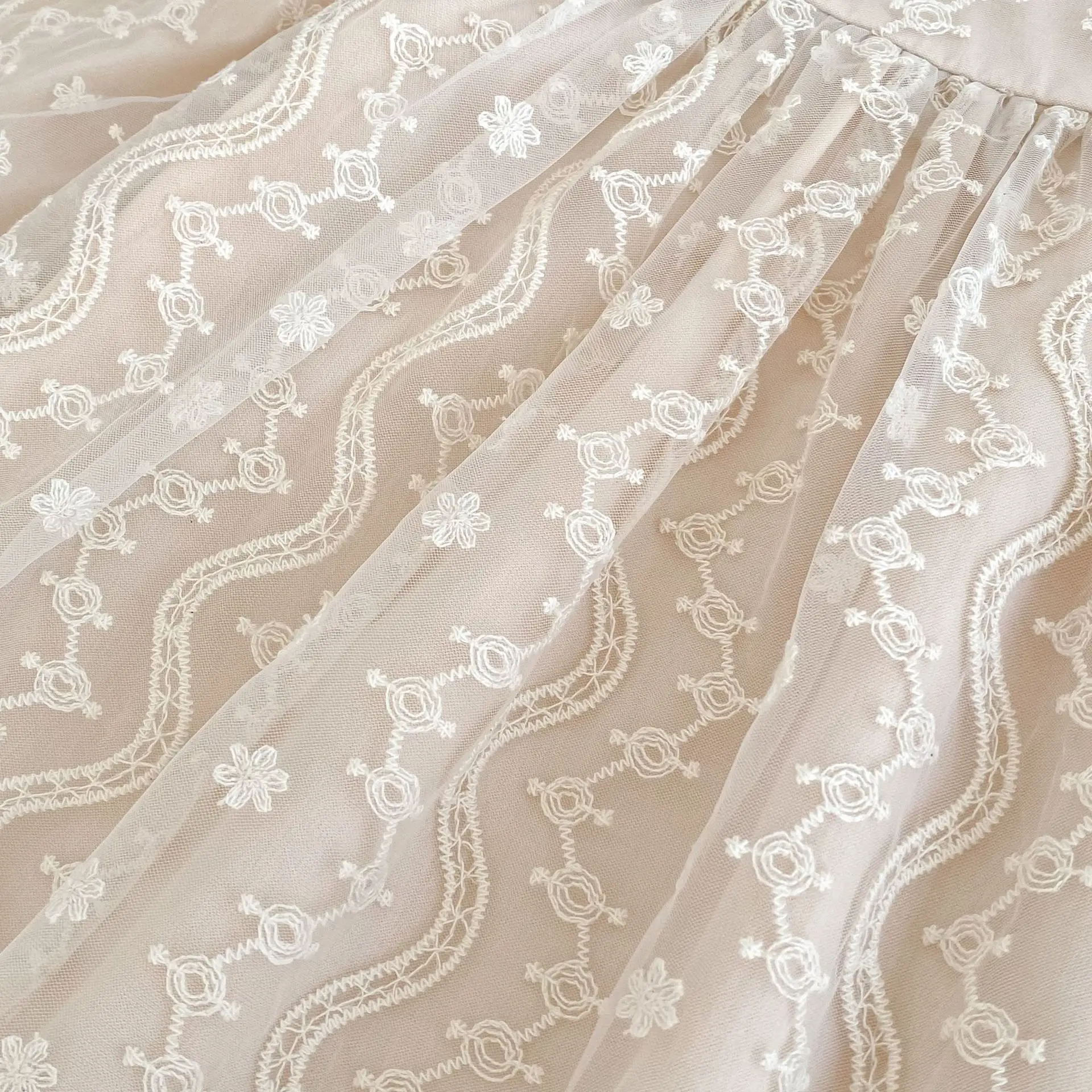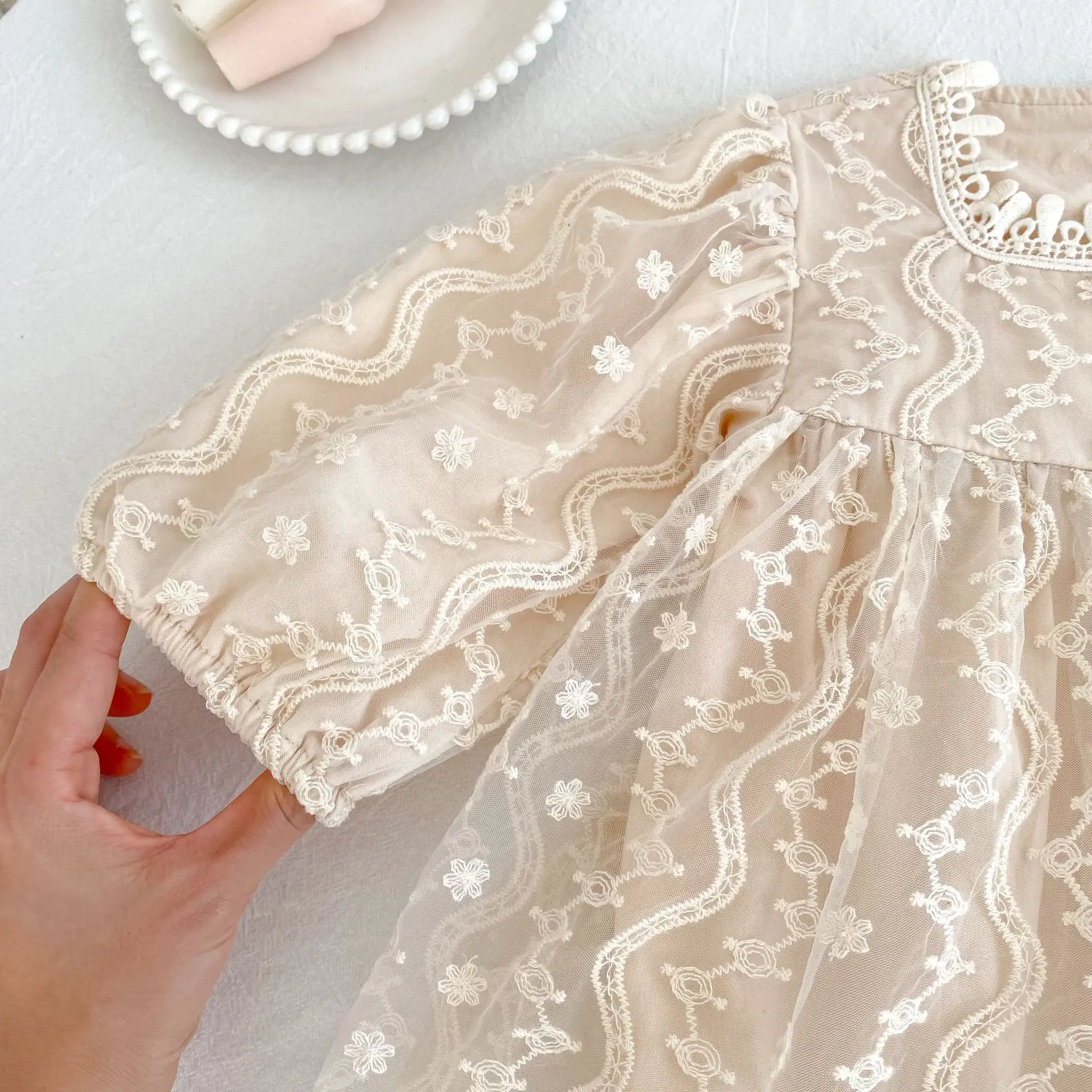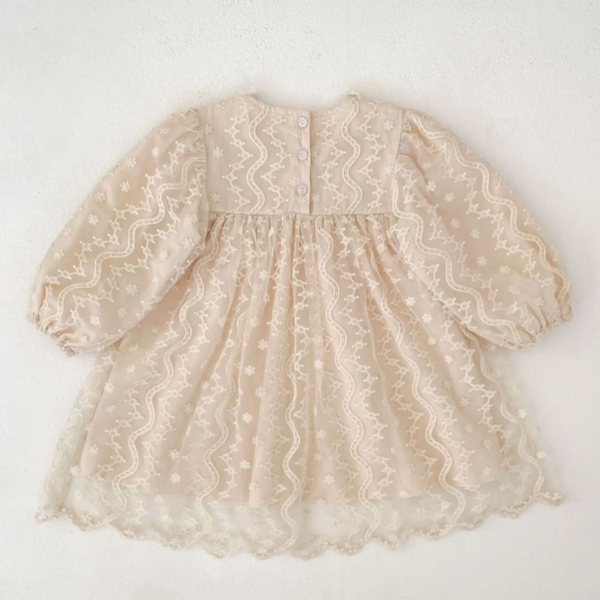 Vestidos de princesa de encaje de tul para niñas de estilo coreano: trajes para hermanos bordados de manga larga, ropa para niños esponjosa y agradable para la piel