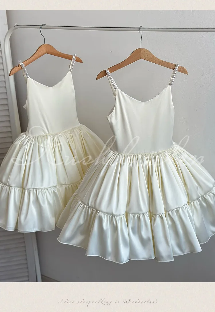 Vestidos de princesa para niña de flores para boda, fiesta de cumpleaños, vestido de baile con cuello en V, desfile de damas de honor junior, vestido de baile formal para niños