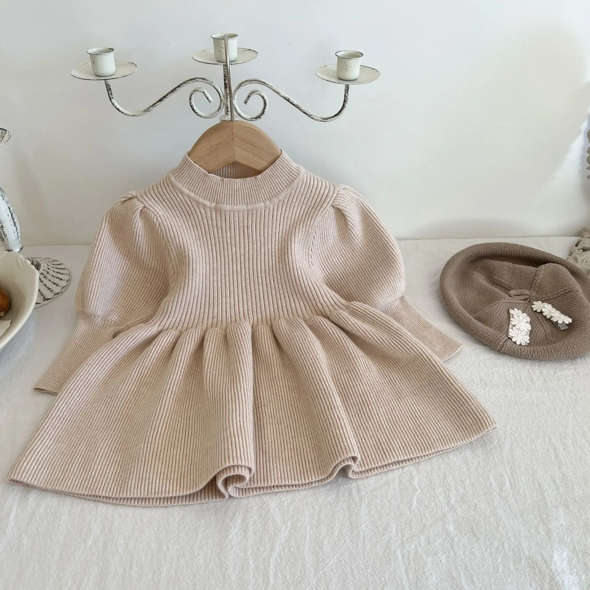 Comprar Vestidos de punto para niña, faldas de suéter de punto de princesa extranjera, faldas de manga larga para bebé, Otoño e Invierno