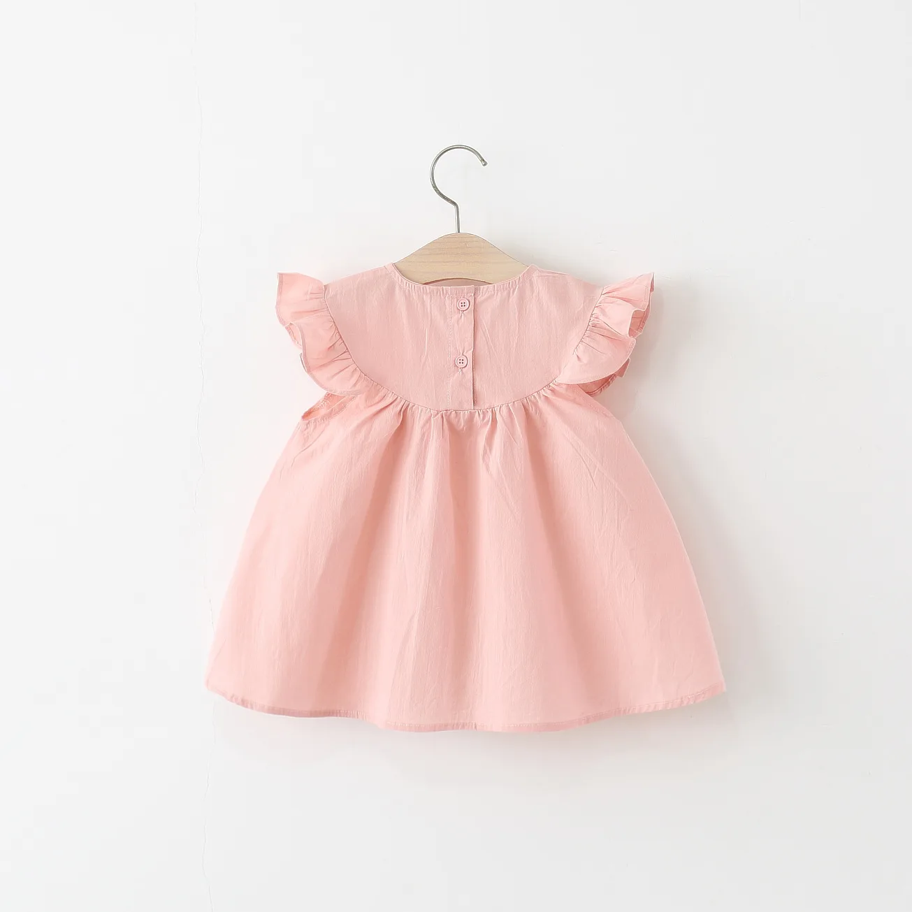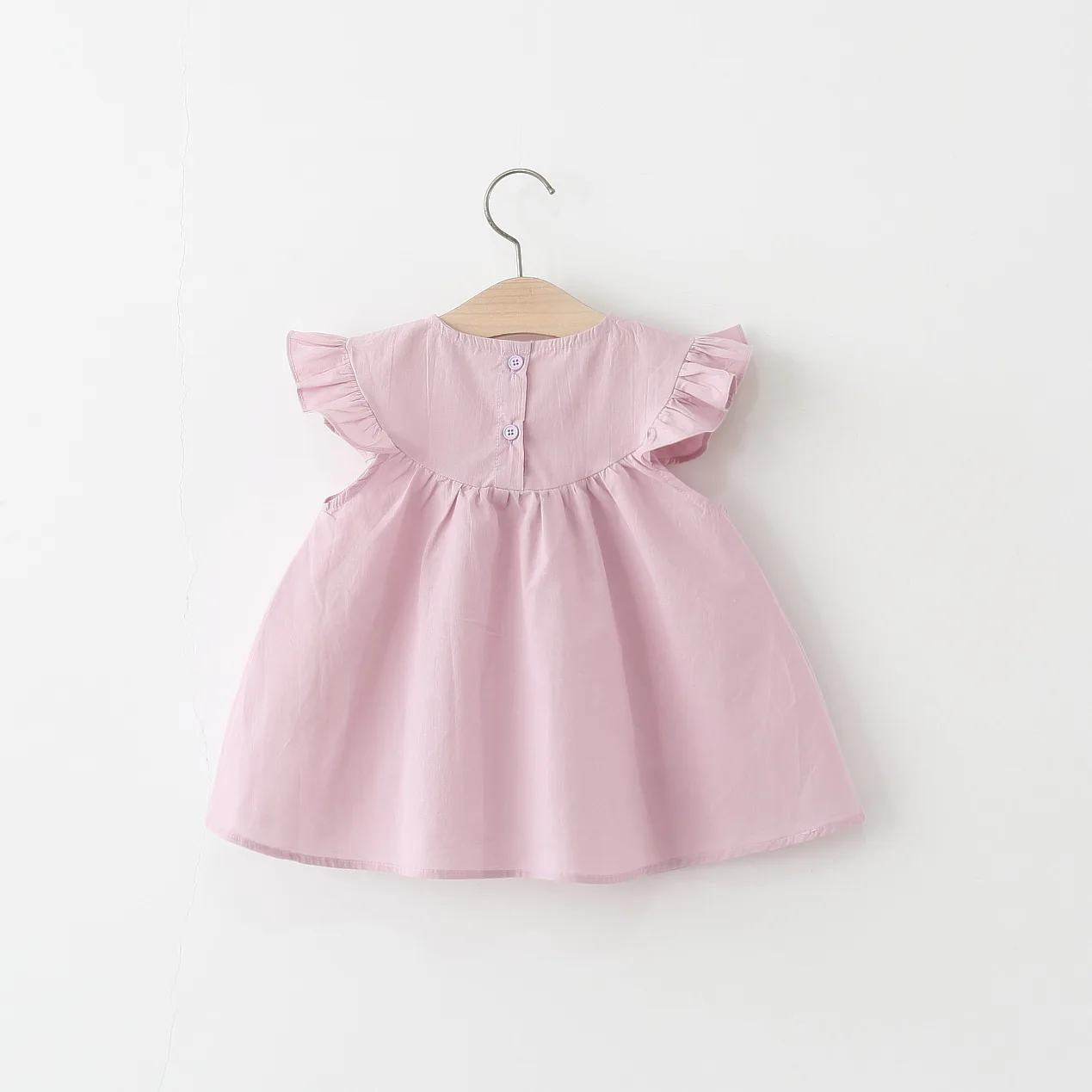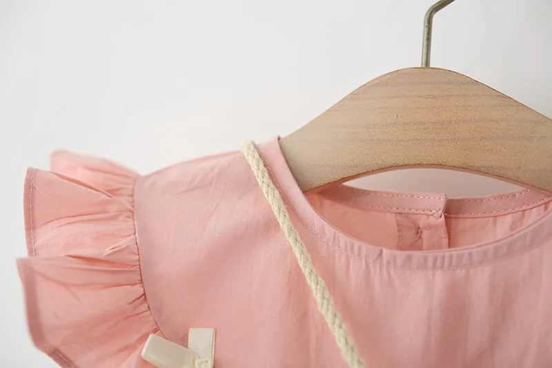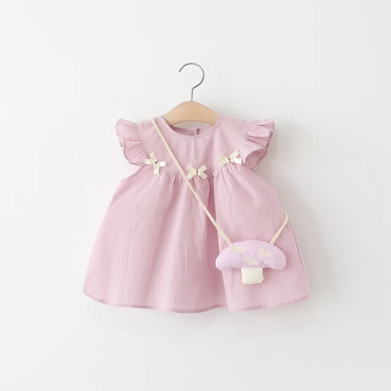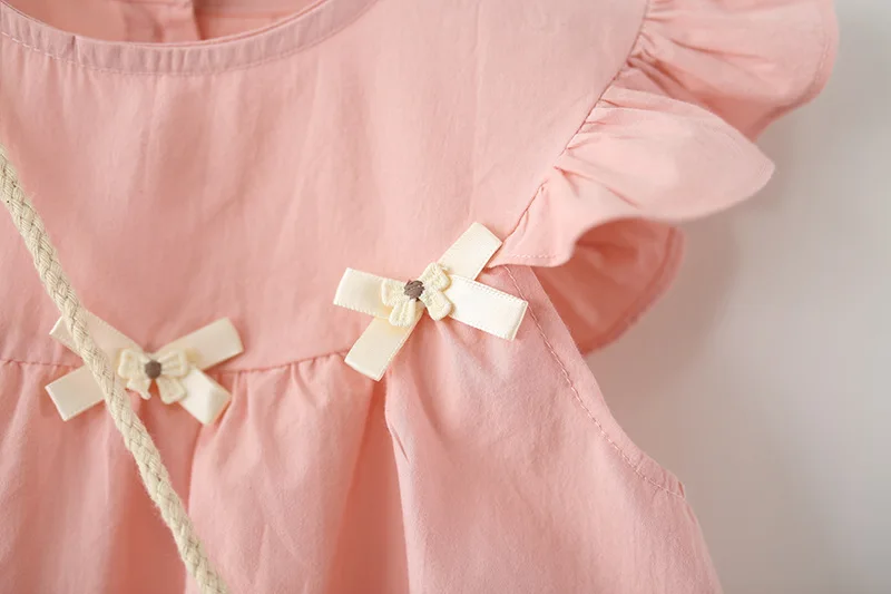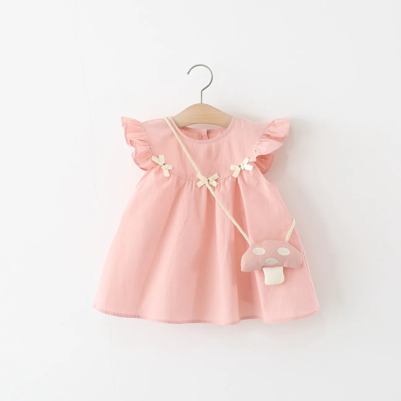 Vestidos de verano de 2 piezas, ropa para niñas, bonito vestido coreano de princesa con lazo liso sin mangas de algodón para niños pequeños + bolsa, ropa para bebés B087