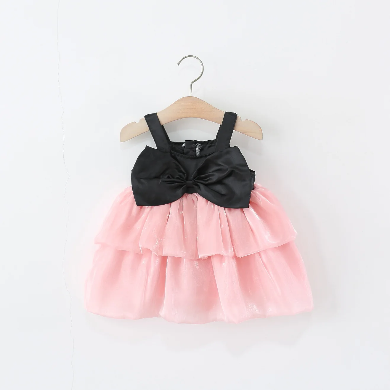 Vestidos de verano para bebé, moda coreana, bonito lazo sin mangas de malla, vestido de princesa de cumpleaños de lujo para niñas, Boutique, ropa para niños B102