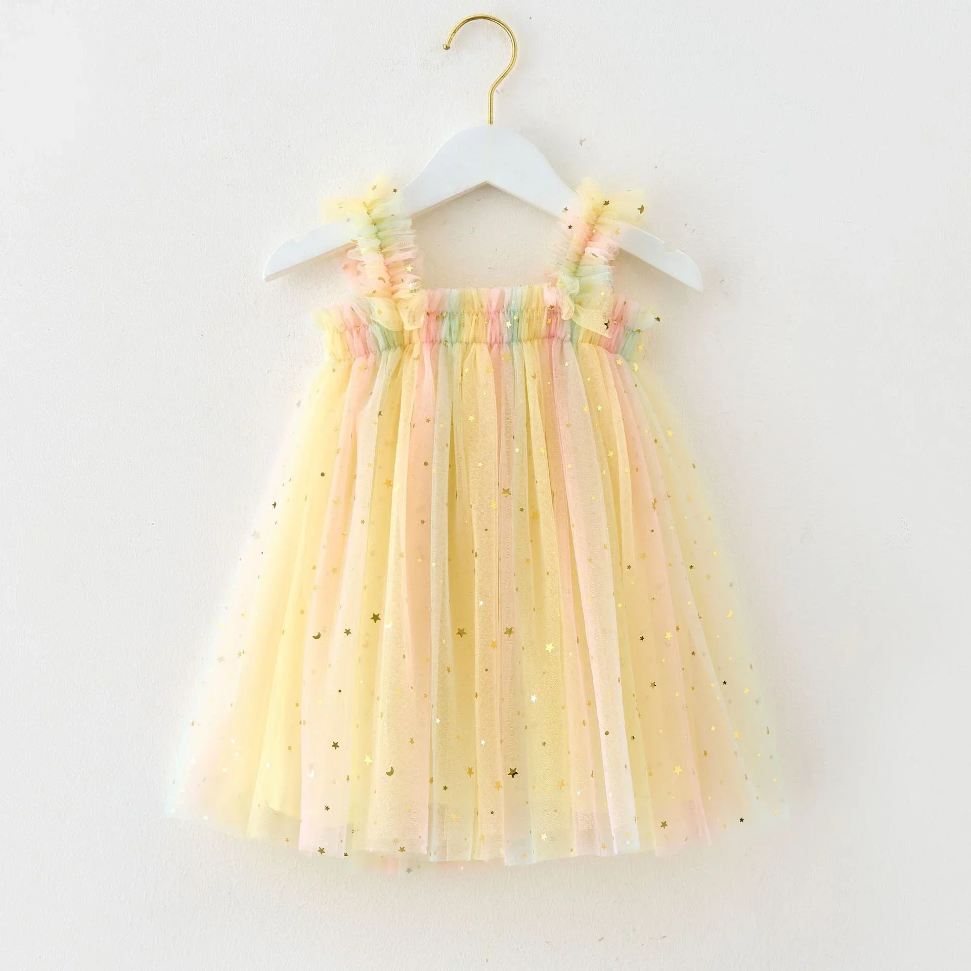 Vestidos de verano para niñas de 1 a 5 años, vestido de lentejuelas con tirantes, sin mangas, vestido de princesa de malla con estrellas, traje, ropa para bebés