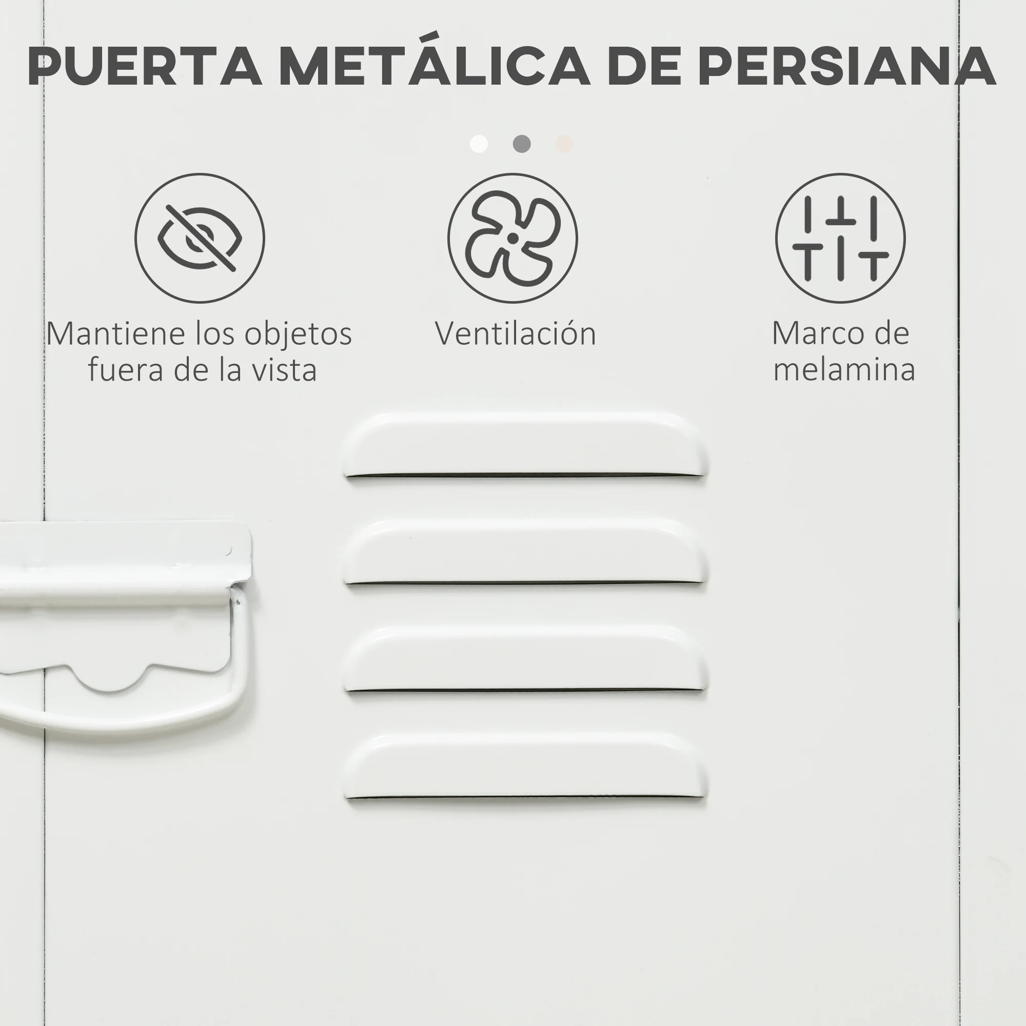 ● Estructura de tablero de partículas resistente, con puerta de metal para mayor resistencia y protección