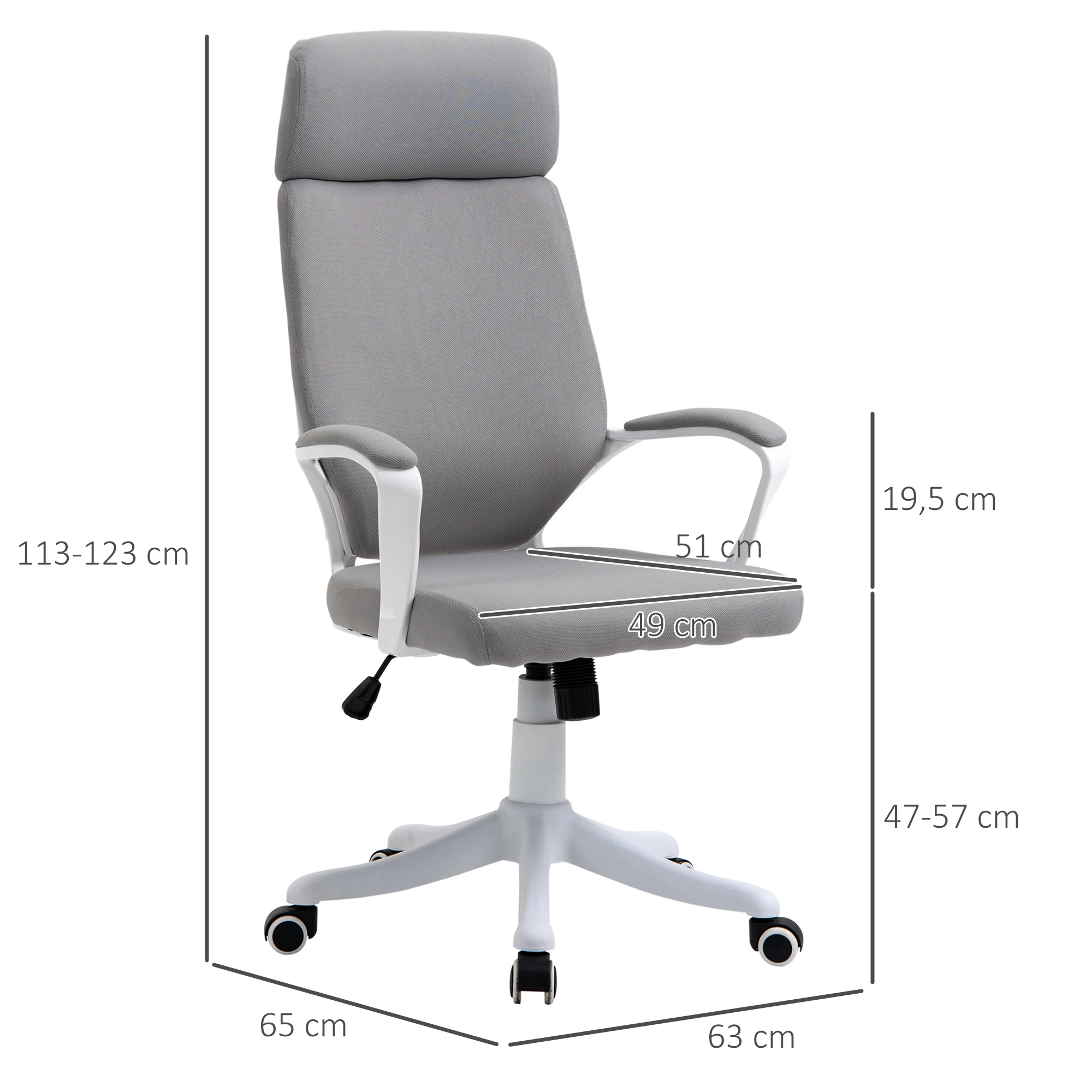 Especificaciones: - Color: gris claro - Material: tejido elástico, espuma, nylon, PP - Medidas totales: 63x65x113-123 cm (LxANxAL) - Medidas del asiento: 49x51x47-57 cm (LxANxAL) - Medidas del reposabrazos: 6x30 cm (LxAL) - Altura del reposabrazos al asiento: 19,5 cm - Medidas del respaldo: 45x69 cm (LxAL) - Carga máxima: 120 kg - Referencia: 921-523