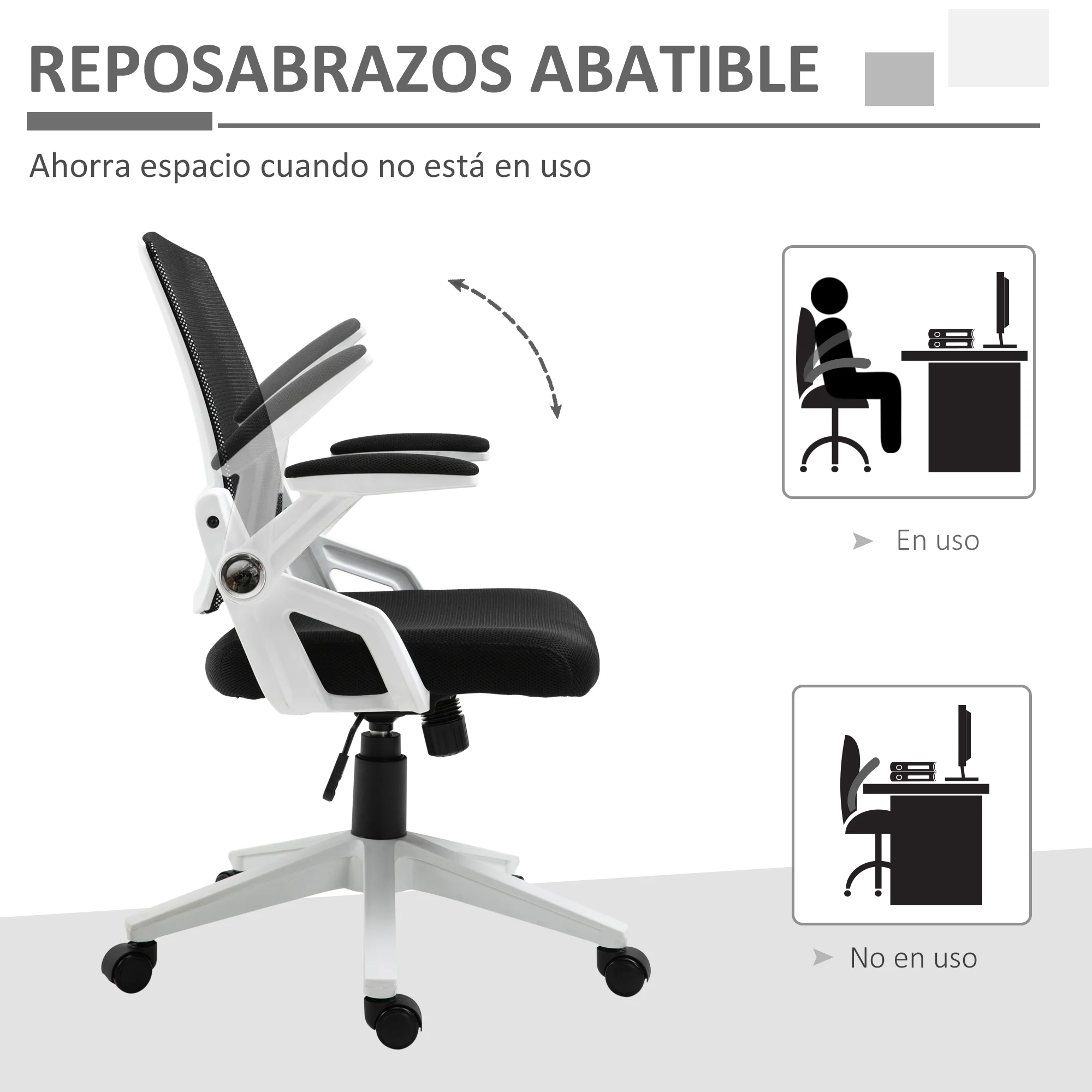 - Apoyabrazos abatible 90° para ahorrar espacio