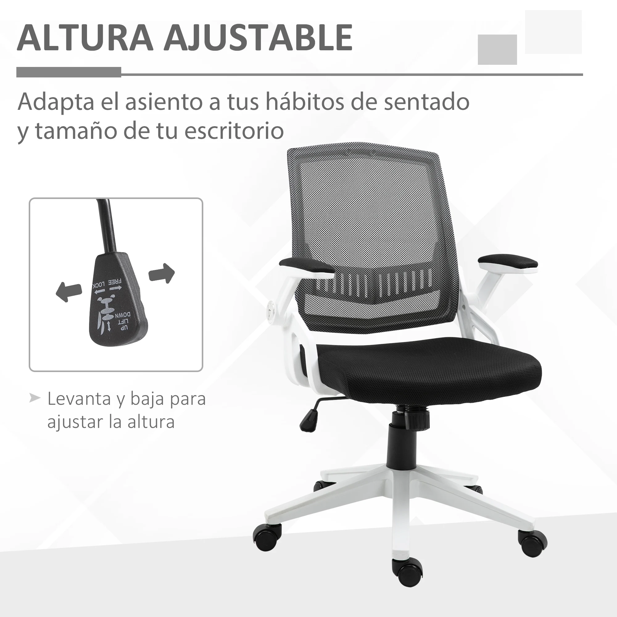 - Silla con altura regulable para ajustar a tus hábitos de sentado y medidas del escritorio
