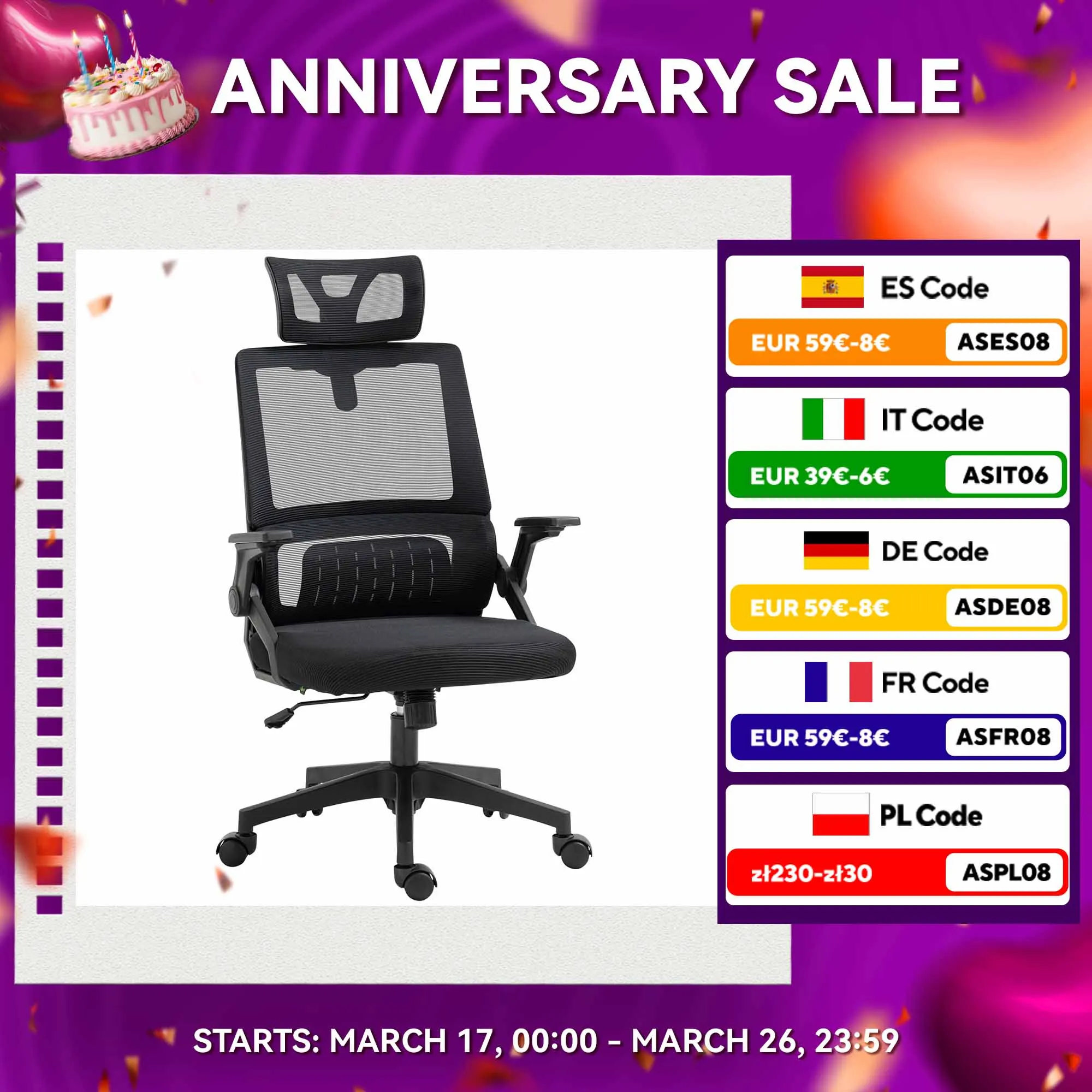 Comprar Vinsetto Silla de Oficina de Malla con Función de Basculante Silla de Escritorio Giratorio Altura Reposacabezas Ajustable y Reposabrazos Carga 120 kg para Estudio 58x61x102-119 cm