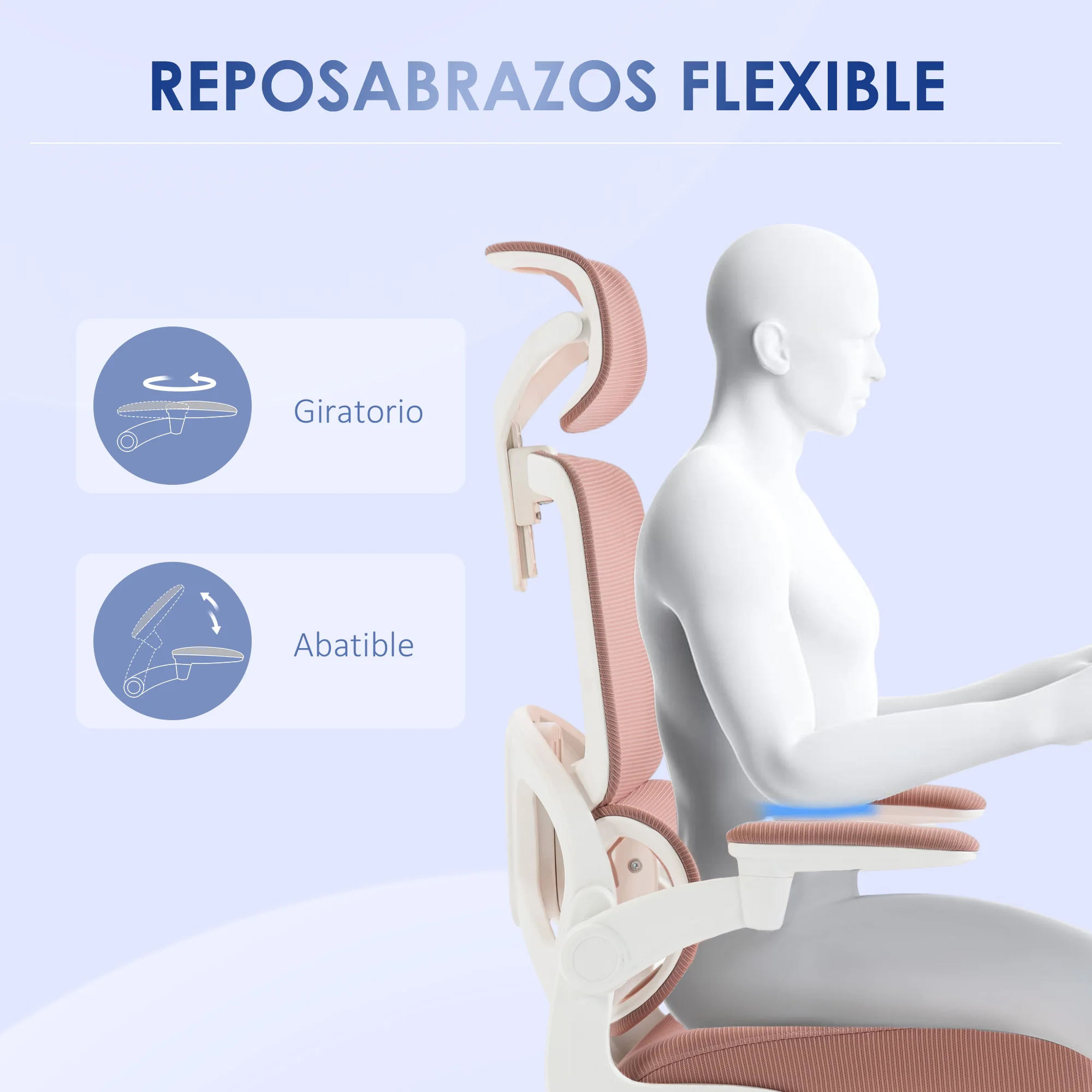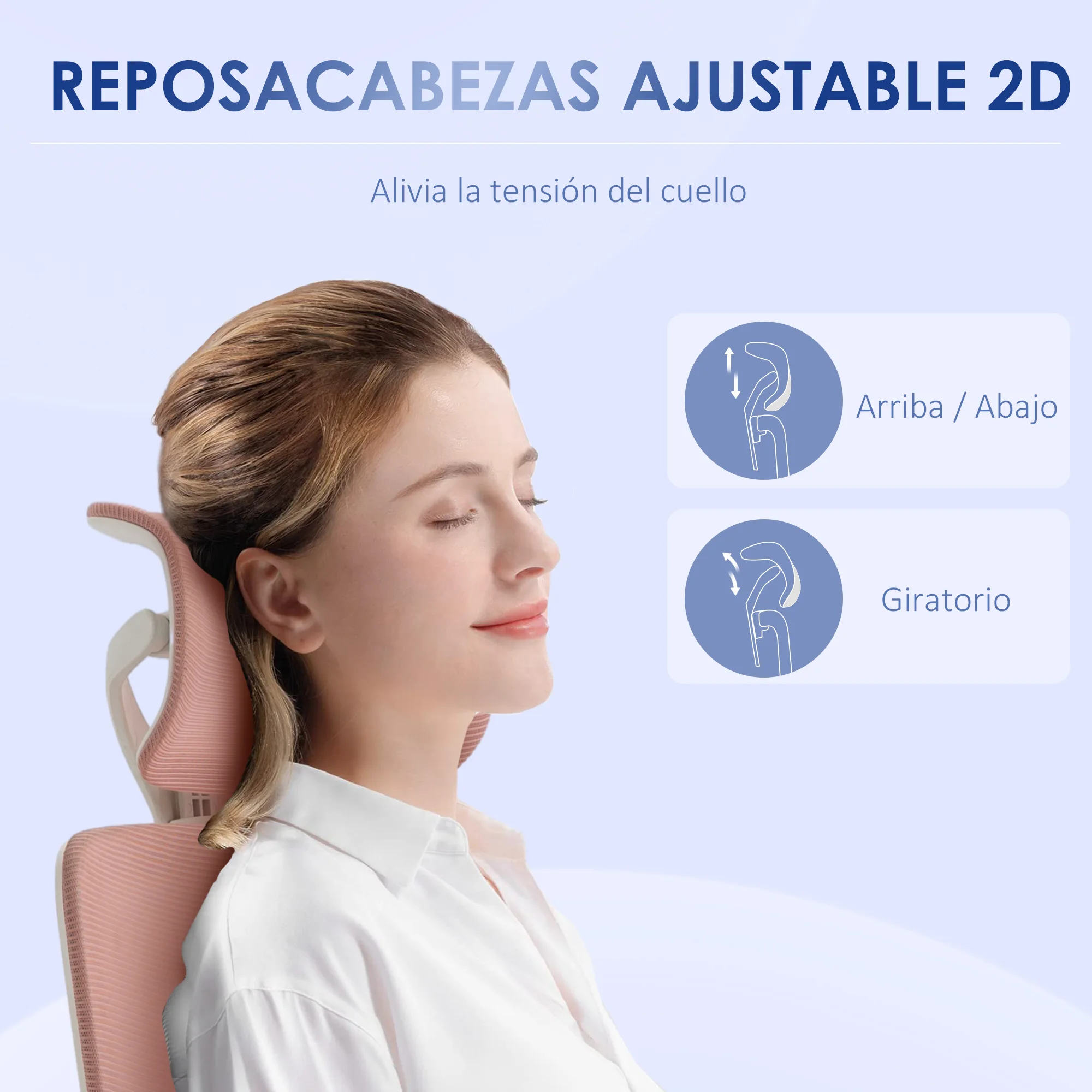Especificaciones: ● Color: rosa ● Material: malla (100% poliéster), espuma, PP, nylon ● Medidas totales: 62x58x120-133 cm (LxANxAL) ● Medidas del asiento: 52x50 cm (LxAN) ● Altura del asiento: 47-55 cm ● Grosor del asiento: 10 cm ● Medidas del respaldo: 51x72 cm (LxAN) ● Medidas del reposabrazos: 23x7 cm (LxAN) ● Altura del reposabrazos al asiento: 19 cm ● Medidas del reposacabezas: 33x19 cm (LxAN) ● Altura ajustable del reposacabezas: 7 cm ● Carga máxima: 120 kg ● Referencia: 921-680V01PK