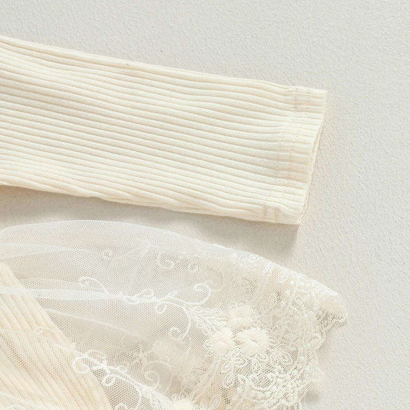 Vestido mameluco para niñas, mono de retales de tul con lazo de flores y cuello redondo de manga larga para fiesta diaria