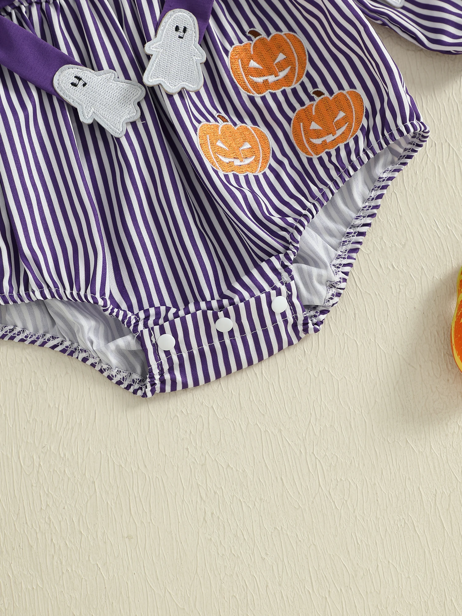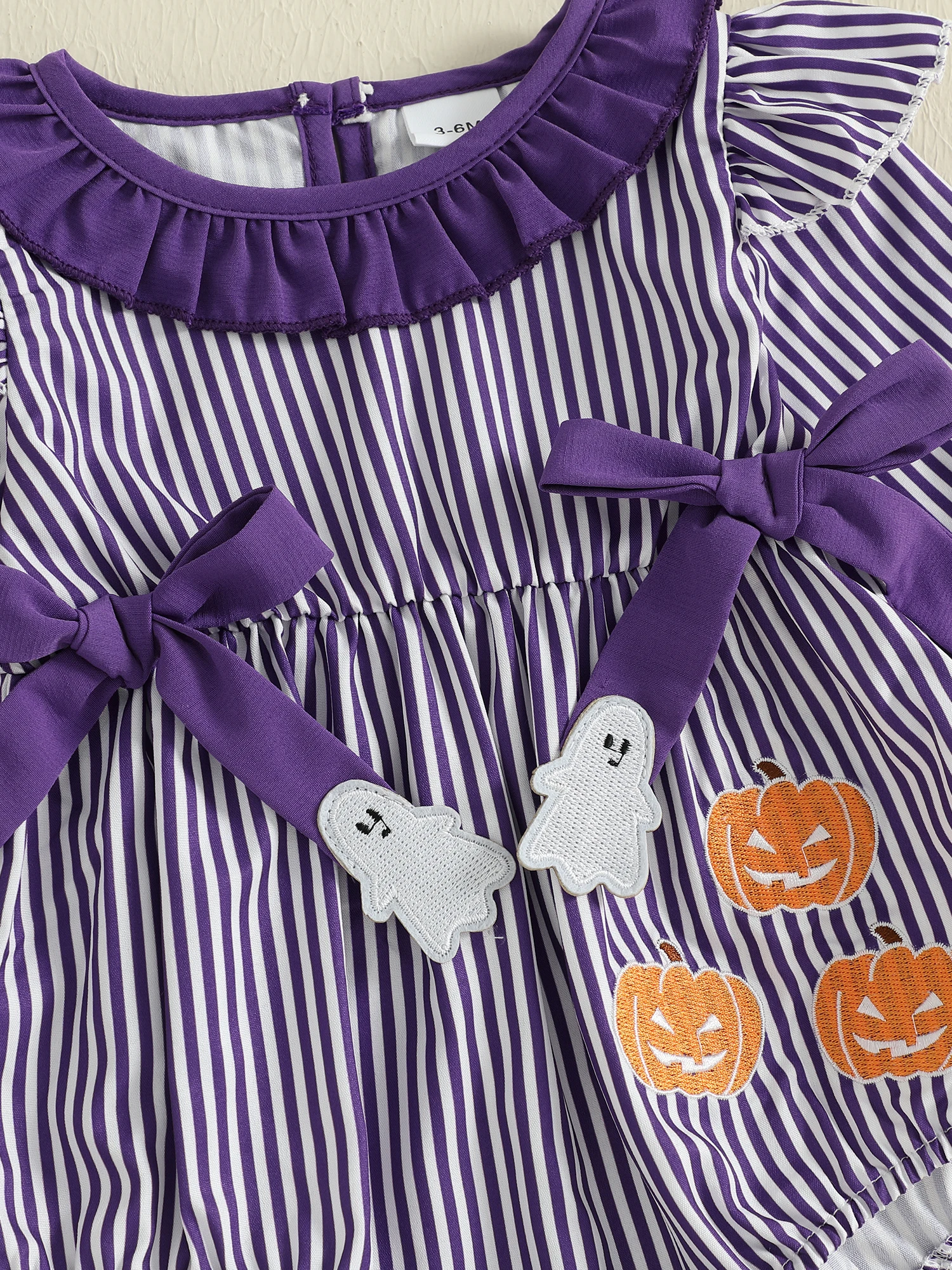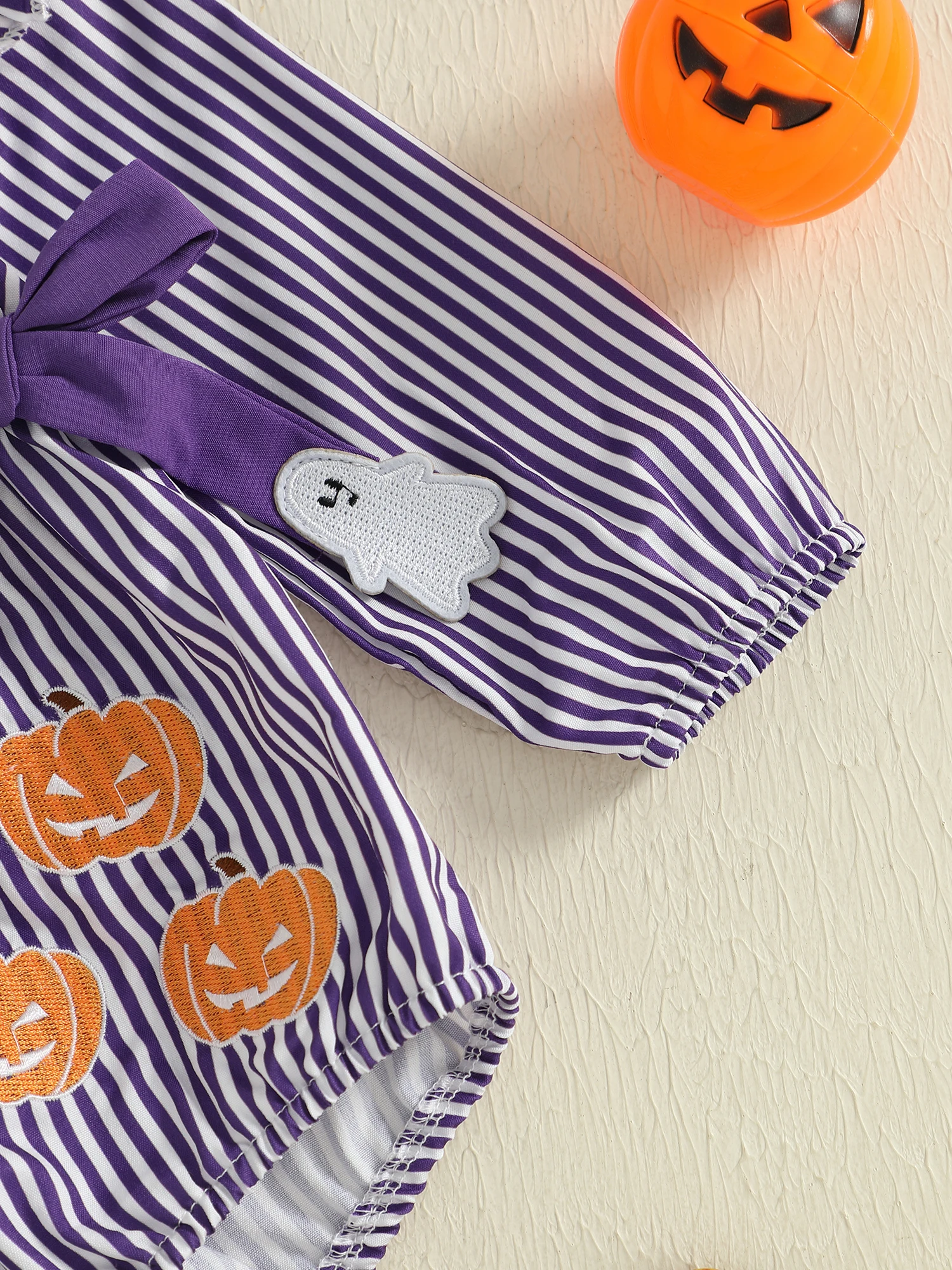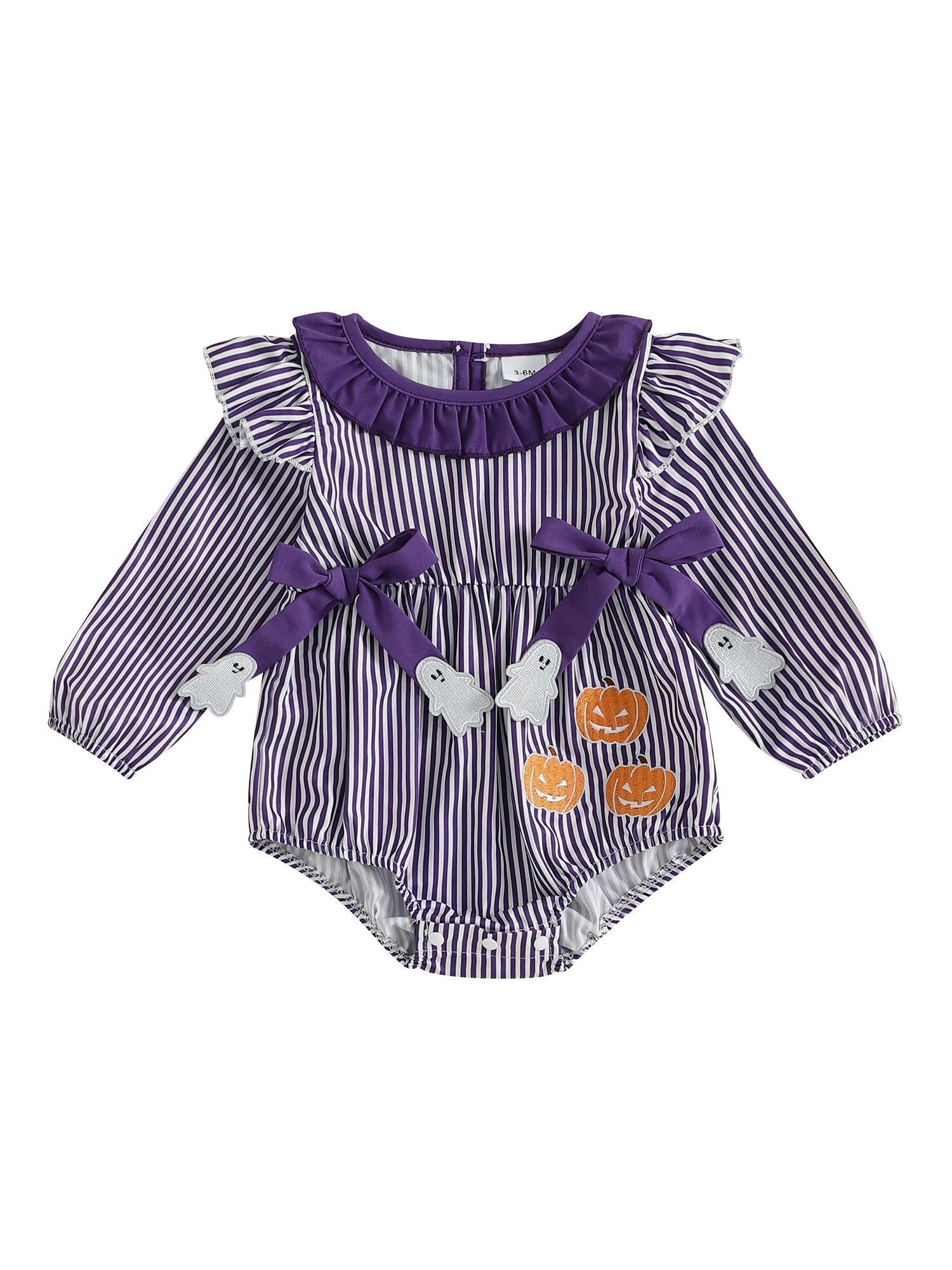 Body de Halloween para niña, mameluco con estampado de rayas delanteras y lazo de manga larga, mono de otoño para recién nacido