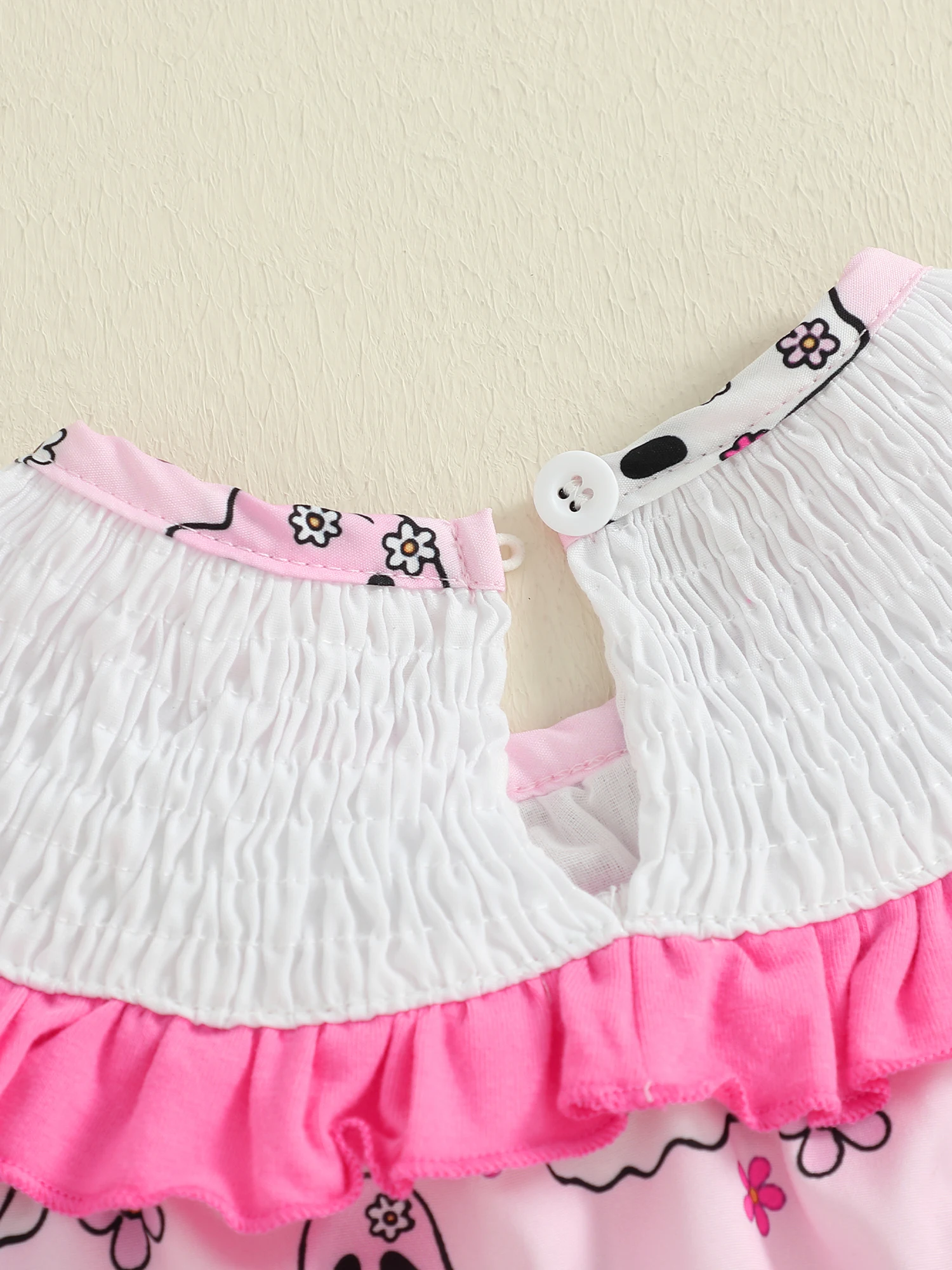 Especificación Nombre del artículo: Conjunto de mameluco para bebé Color rosa Tamaño: 0-3 meses, 3-6 meses, 6-12 meses, 12-18 meses Material: 100% poliéster Patrón: Estampado Manga: manga corta Cuello: cuello redondo Género: niñas