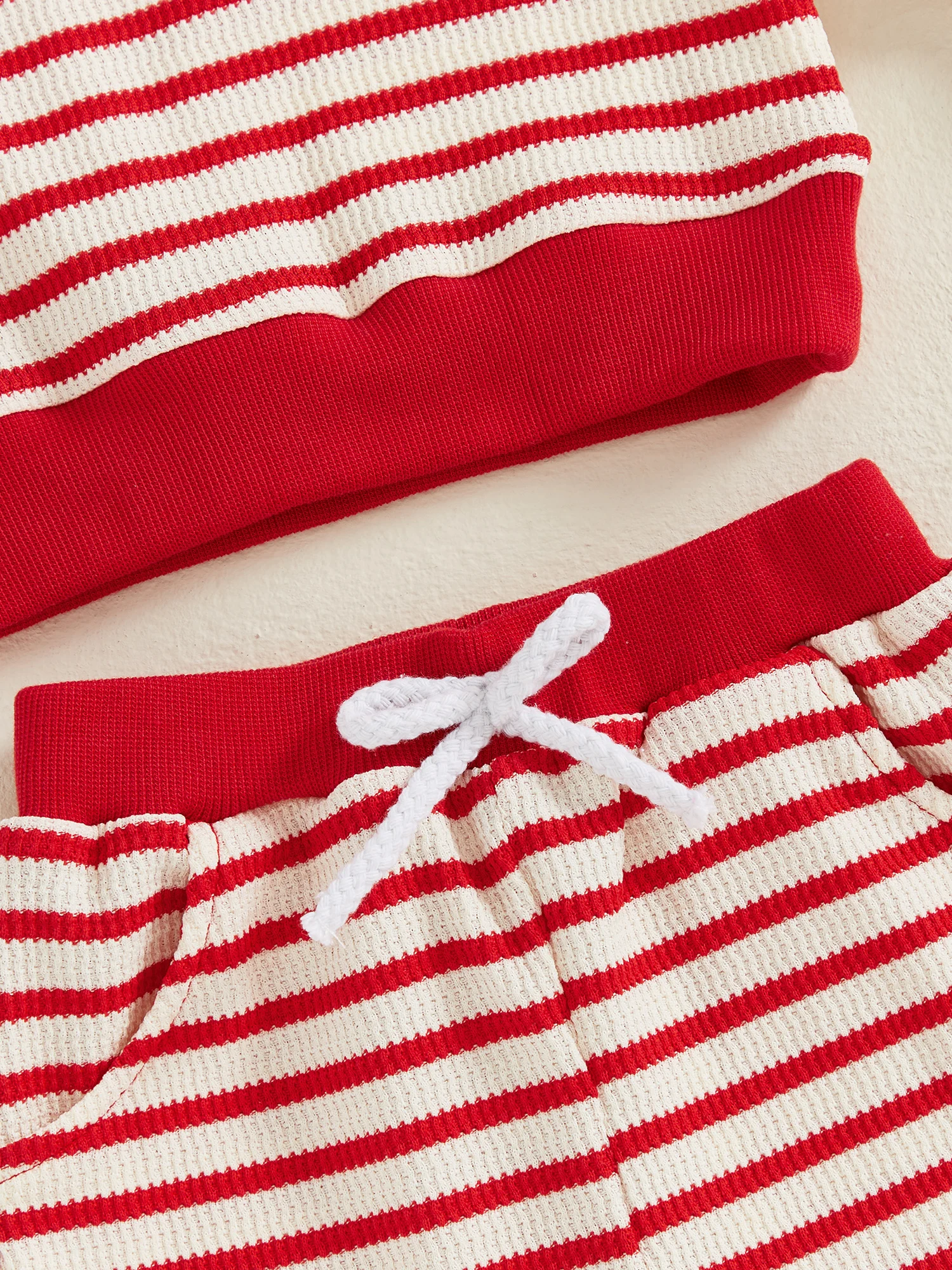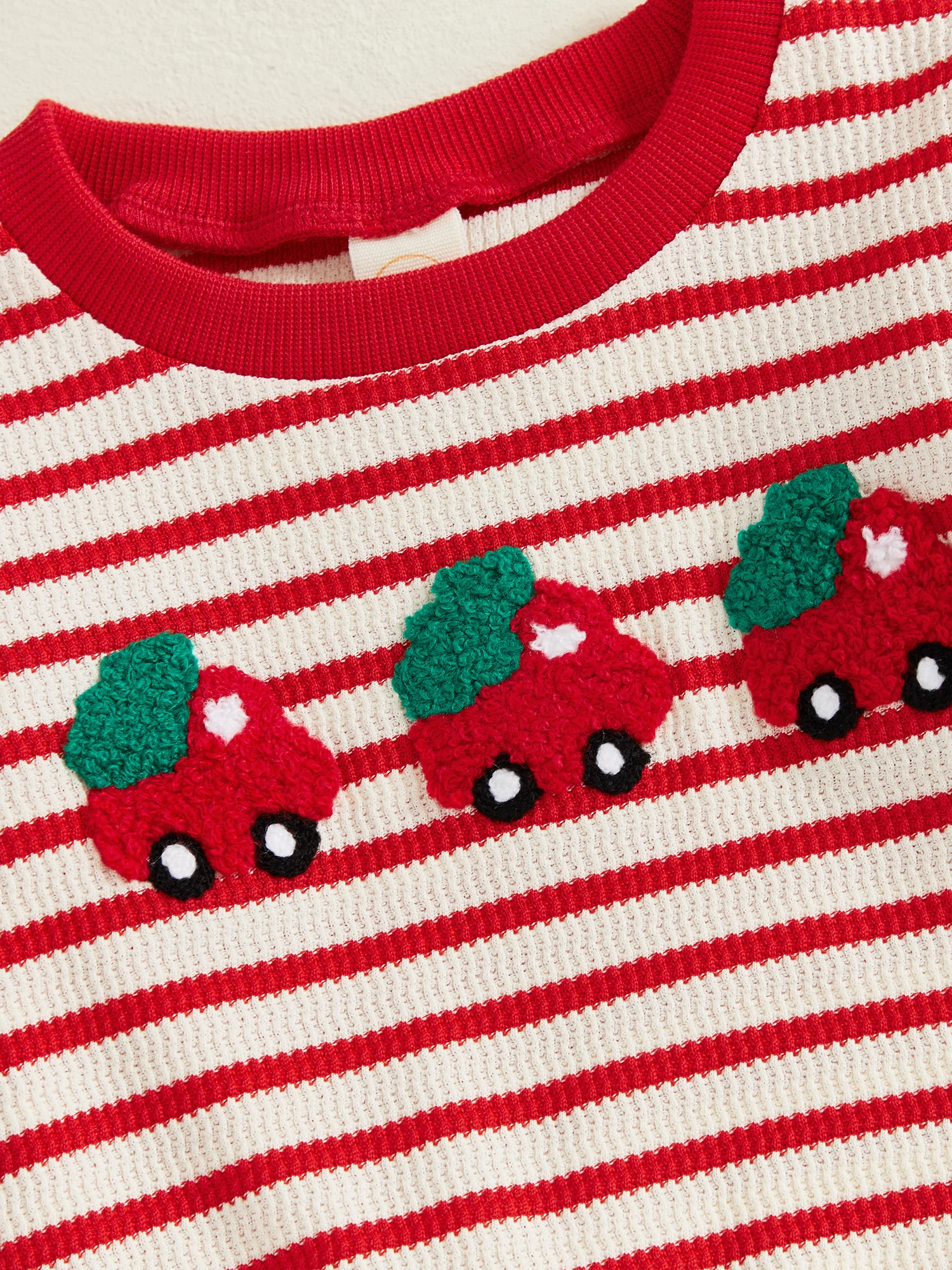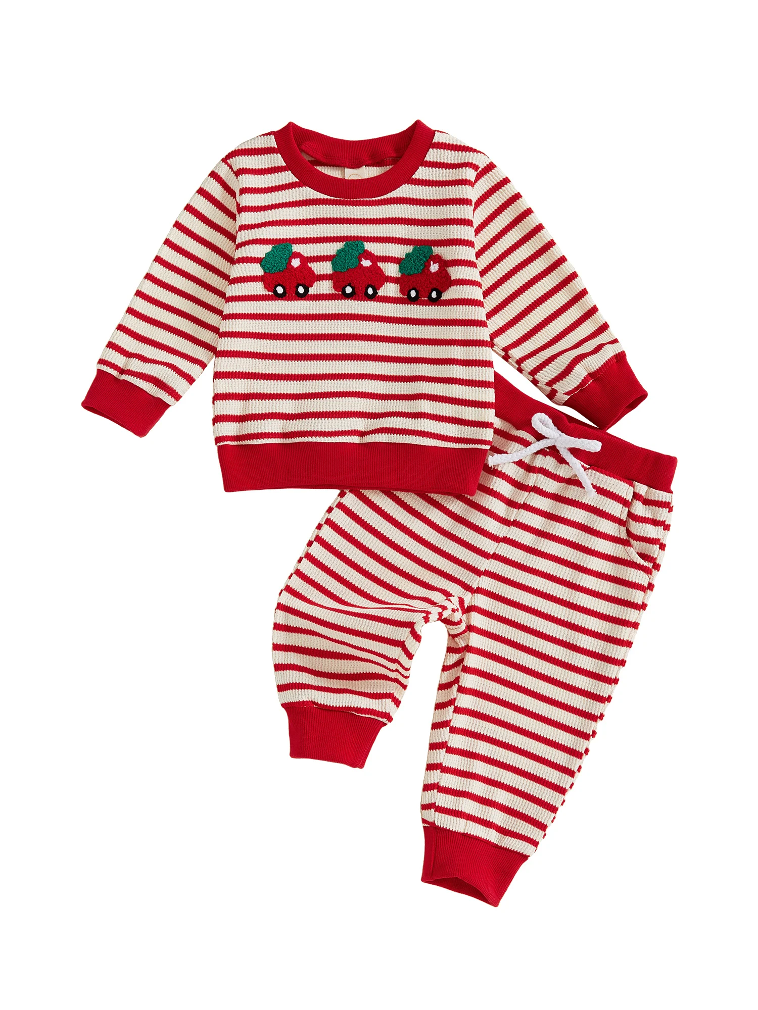 Conjunto de 2 piezas para bebé, suéter y pantalones de manga larga con cuello redondo y rayas bordadas en coche