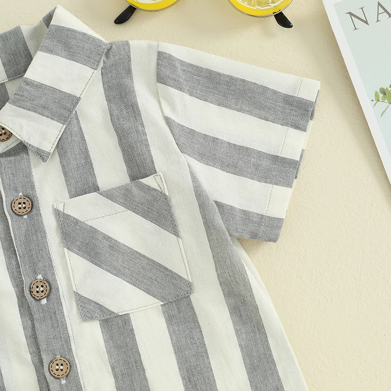 Comprar VISgogo-Conjunto de camisa de manga corta y pantalones cortos para niño, traje de caballero, estampado a rayas, ropa Formal de verano