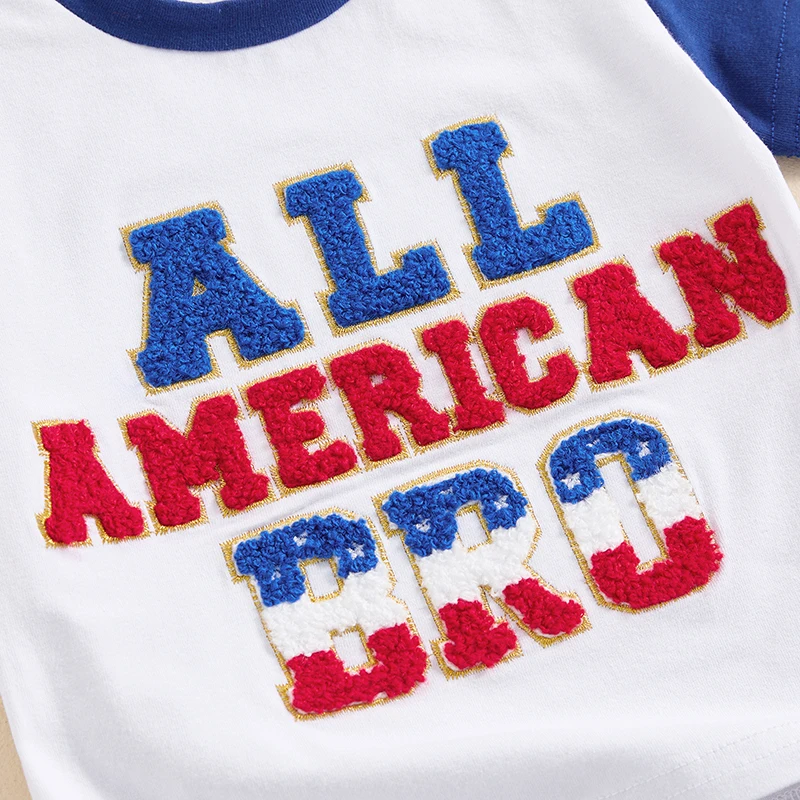 Comprar VISgogo-Conjunto de manga corta para niños pequeños, Tops con bordado de letras, pantalones cortos de Color sólido, 4 de julio, día de la independencia