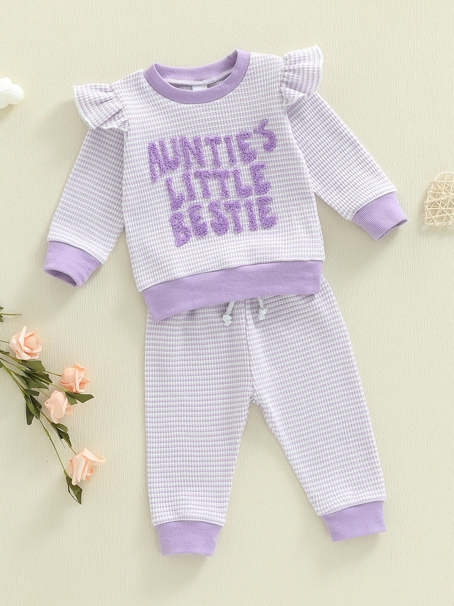 Conjunto de sudadera de manga larga con letras y pantalones de cintura elástica para niña de primavera