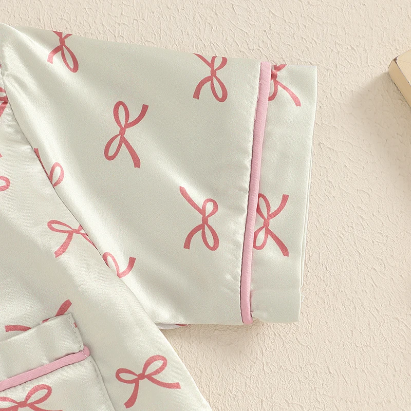 Comprar VISgogo Conjunto de pijamas de verano para niñas pequeñas con estampado de lazo y botones con cuello en V, camisetas y pantalones cortos de manga corta, ropa de salón, conjunto de 2 piezas