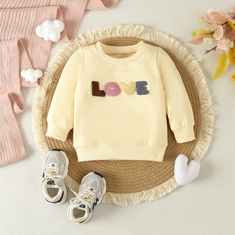 Comprar VISgogo-Conjunto de ropa para niños y niñas, sudadera de manga larga con cuello redondo y bordado de letras, pantalones de cintura elástica, 0-3 años, primavera y otoño