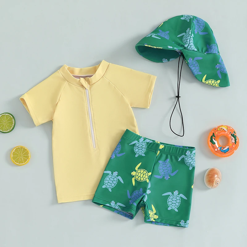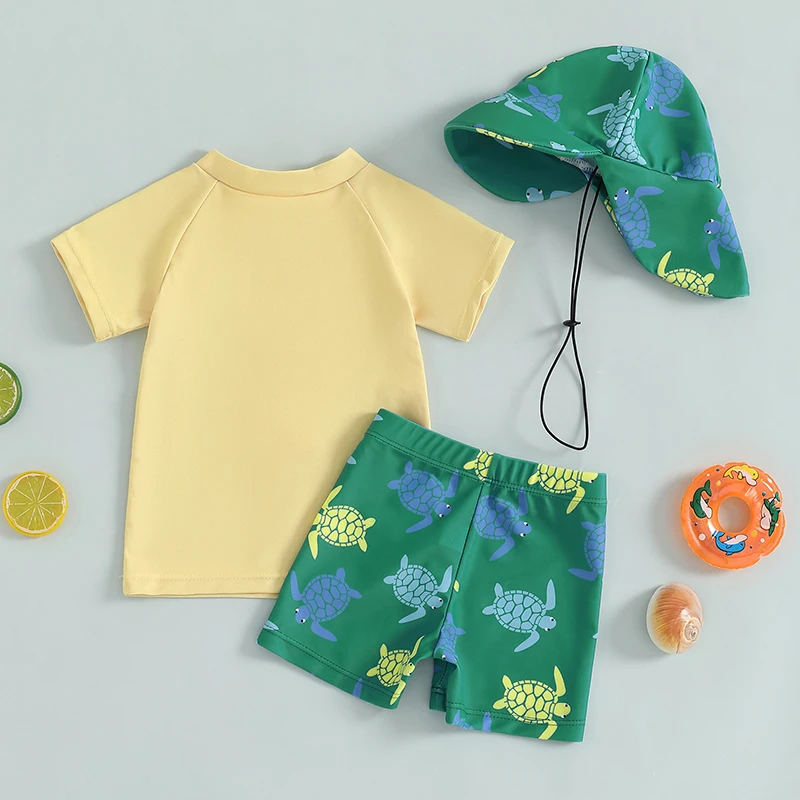 Comprar VISgogo Conjunto de traje de baño de 3 piezas con protección contra sarpullidos para niños pequeños, camisetas de manga corta con estampado de tortuga, traje de baño con gorro de baño