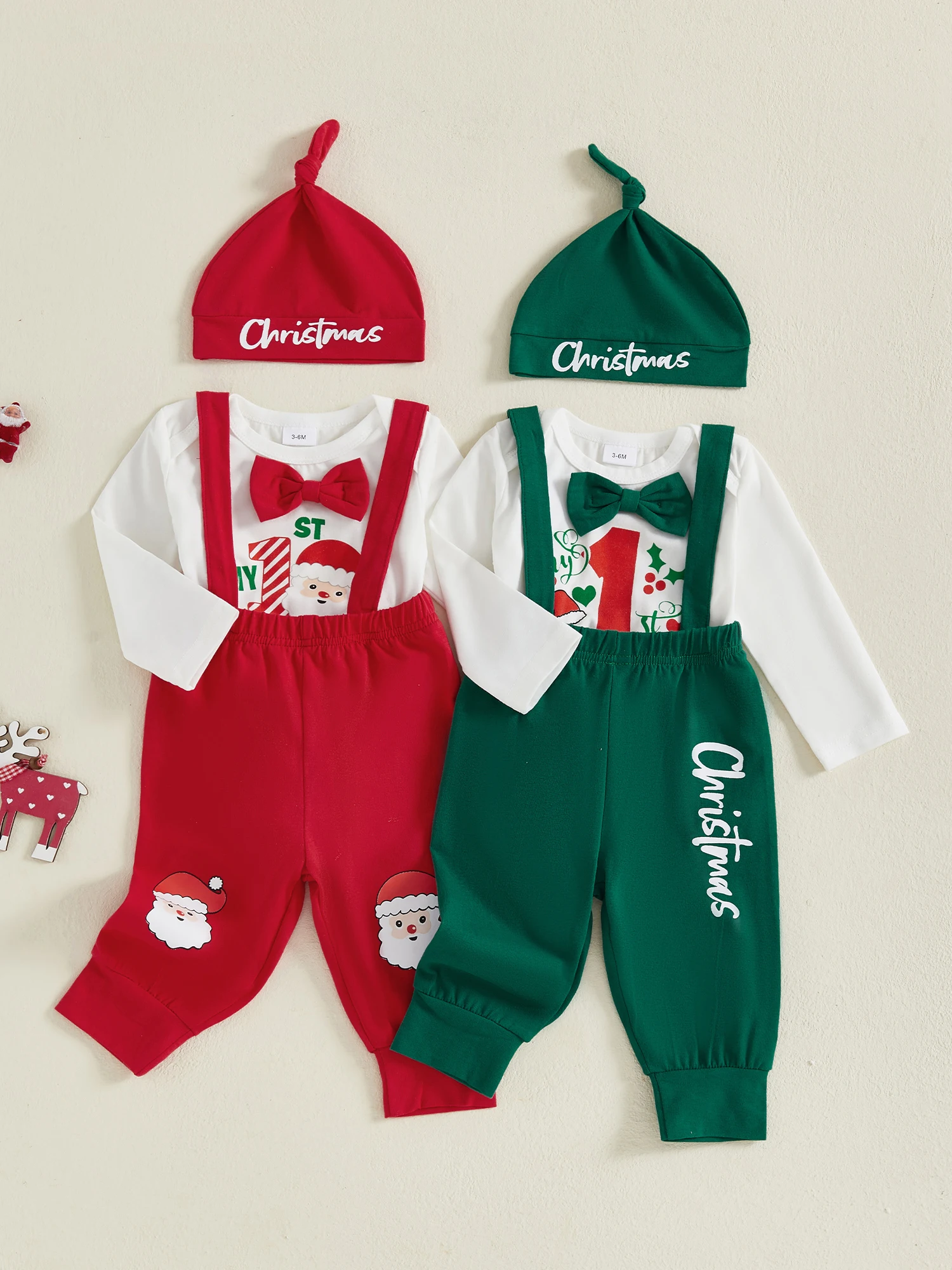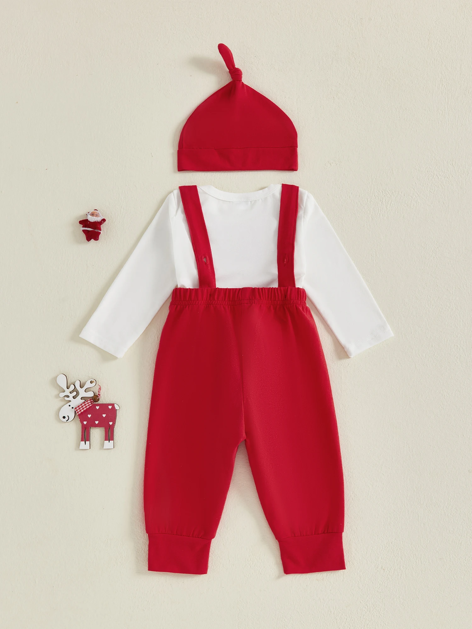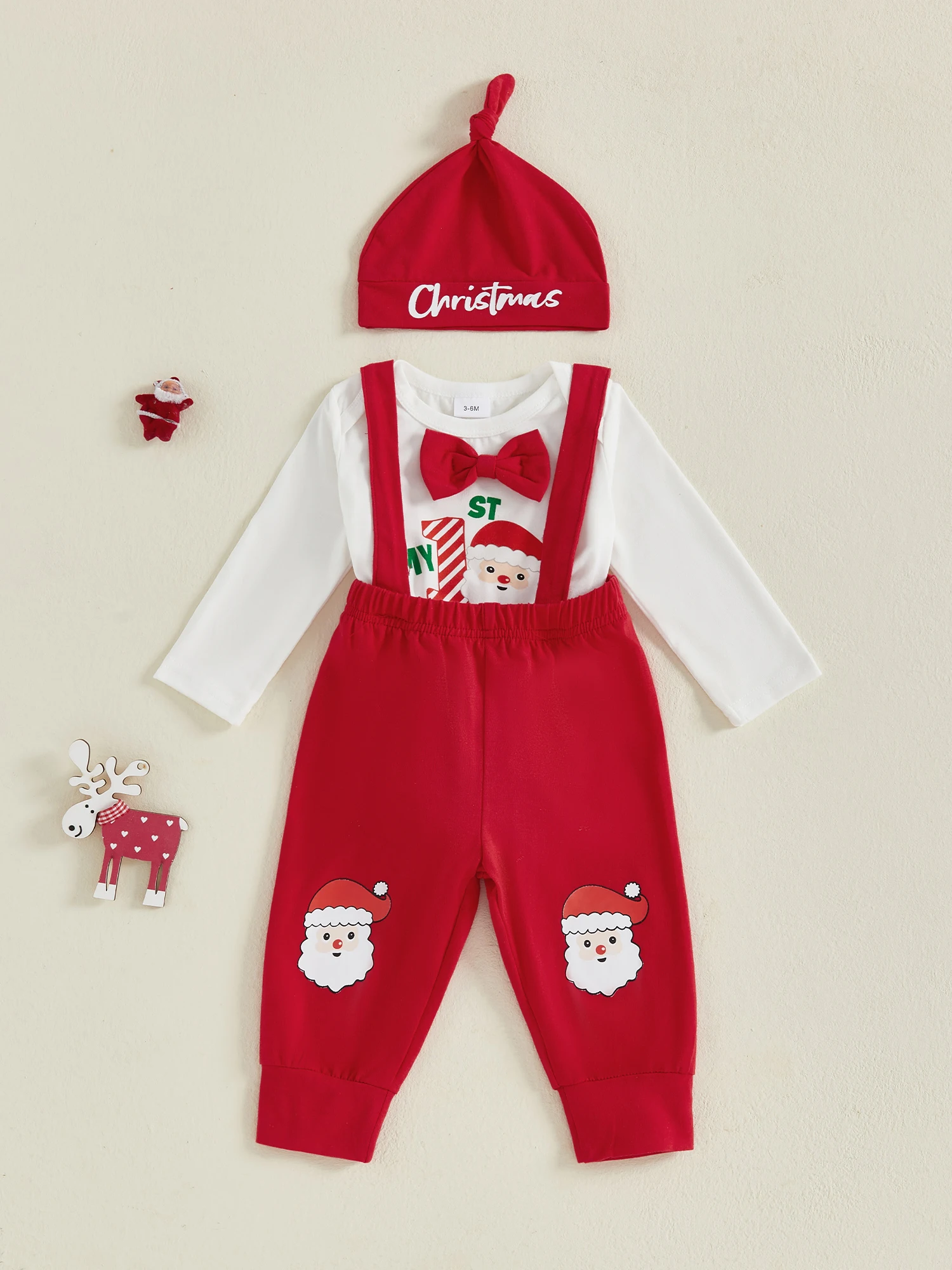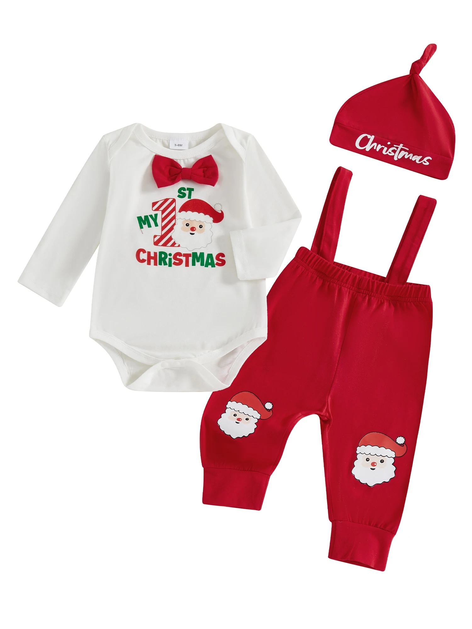 Conjuntos de otoño para bebé niña y niño, mameluco de manga larga con cuello redondo y letras navideñas, pantalones generales con cintura elástica y trajes de sombreroTamaño (cm)0-3M Longitud del mameluco: 36 Busto: 46 Hombro: 19 Manga: 23,5 Longitud de pantalones: 36 Cintura: 36 Cadera: 52 Edad recomendada: 0-3 meses3-6M Longitud del mameluco: 38 Busto: 48 Hombro: 20 Manga: 25 Largo de pantalones: 38 Cintura: 38 Cadera: 54 Edad recomendada: 3-6 meses6-9M Longitud del mameluco: 40 Busto: 50 Hombro: 21 Manga: 26,5 Largo de pantalones: 40 Cintura: 40 Cadera: 56 Edad recomendada: 6-9 meses9-12M Longitud del mameluco: 42 Busto: 52 Hombro: 22 Manga: 28 Longitud de pantalones: 42 Cintura: 42 Cadera: 58 Edad recomendada: 9-12 meses12-18M Longitud del mameluco: 44 Busto: 54 Hombro: 23 Manga: 29,5 Longitud de pantalones: 44 Cintura: 44 Cadera: 60 Edad recomendada: 12-18 mesesTamaño (pulgadas)0-3M Longitud del mameluco: 14,17 Busto: 18,11 Hombro: 7,48 Manga: 9,25 Longitud de pantalones: 14,17 Cintura: 14,17 Cadera: 20,47 Edad recomendada: 0-3 meses3-6M Longitud del mameluco: 14,96 Busto: 18,90 Hombro: 7,87 Manga: 9,84 Longitud de pantalones: 14,96 Cintura: 14,96 Cadera: 21.26 Edad recomendada: 3-6 meses6-9M Longitud del mameluco: 15,75 Busto: 19,69 Hombro: 8,27 Manga: 10,43 Longitud de pantalones: 15,75 Cintura: 15,75 Cadera: 22,05 Edad recomendada: 6-9 meses9-12M Longitud del mameluco: 16,54 Busto: 20,47 Hombro: 8,66 Manga: 11,02 Longitud de pantalones: 16,54 Cintura: 16,54 Cadera: 22,83 Edad recomendada: 9-12 meses12-18M Longitud del mameluco: 17.32 Busto: 21.26 Hombro: 9,06 Manga: 11.61 Longitud de pantalones: 17.32 Cintura: 17.32 Cadera: 23,62 Edad recomendada: 12-18 mesesEspecificaciónCondición: 100% nuevoMaterial: 95% algodón y 5% elastanoPatrón: CartaManga: manga largaEl paquete incluye:1 * mameluco + 1 * pantalones con tirantes + 1 * sombreroNota:Puede haber una desviación de 1 a 2 cm en diferentes tamaños, ubicaciones y estiramiento de las telas.La tabla de tallas es solo como referencia; Puede haber una pequeña diferencia con lo que obtienes.El color puede ser más claro o más oscuro debido a las diferentes pantallas de PC.PromesaSi el producto tiene algún problema de calidad, háganoslo saber y lo ayudaremos a resolverlo lo antes posible.