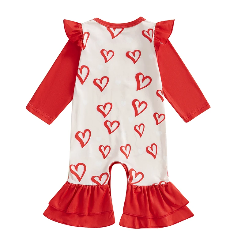 Comprar VISgogo Mameluco del Día de San Valentín para niña con estampado de corazón, manga larga, cuello redondo, botón con volantes, mono largo