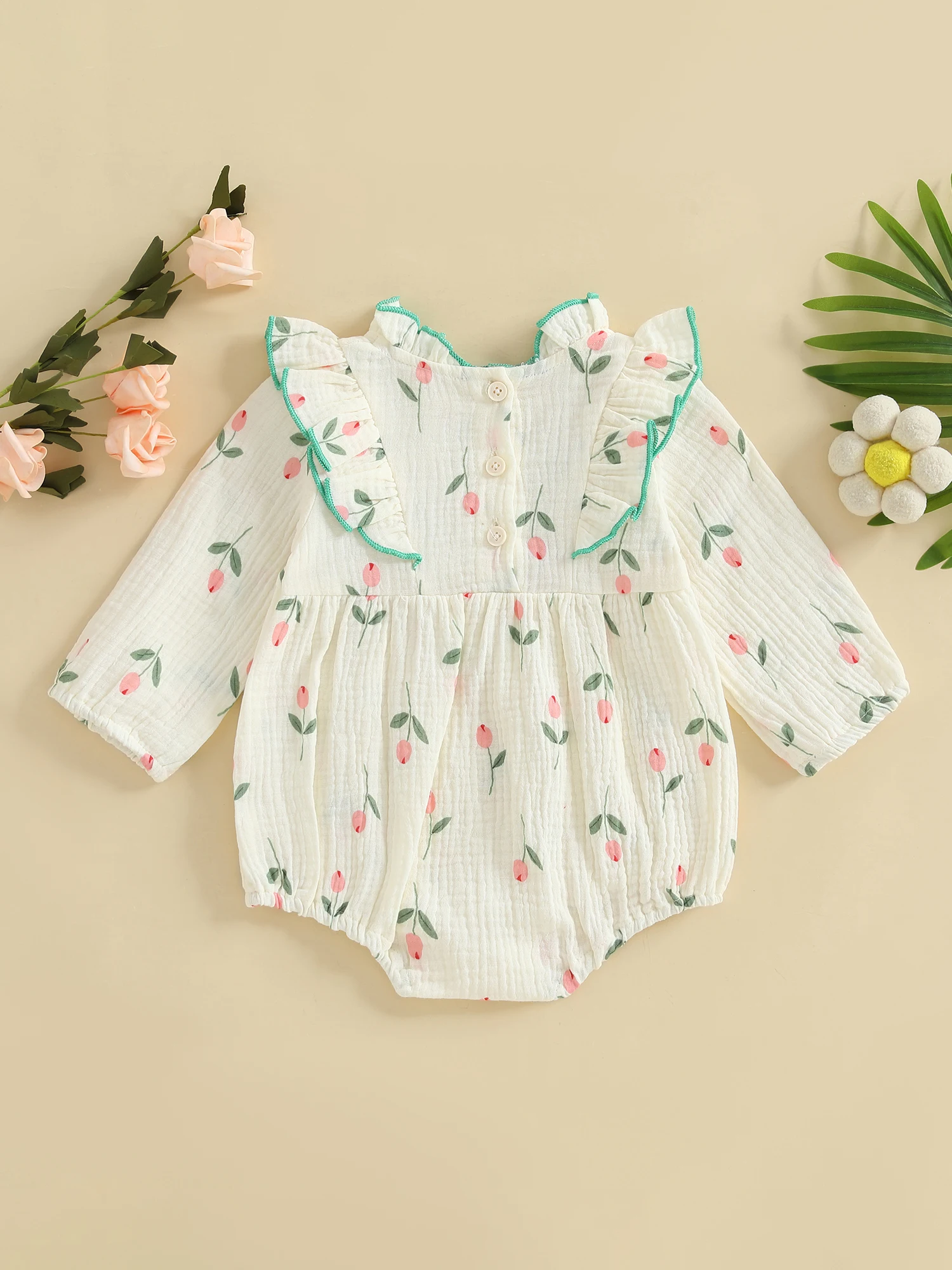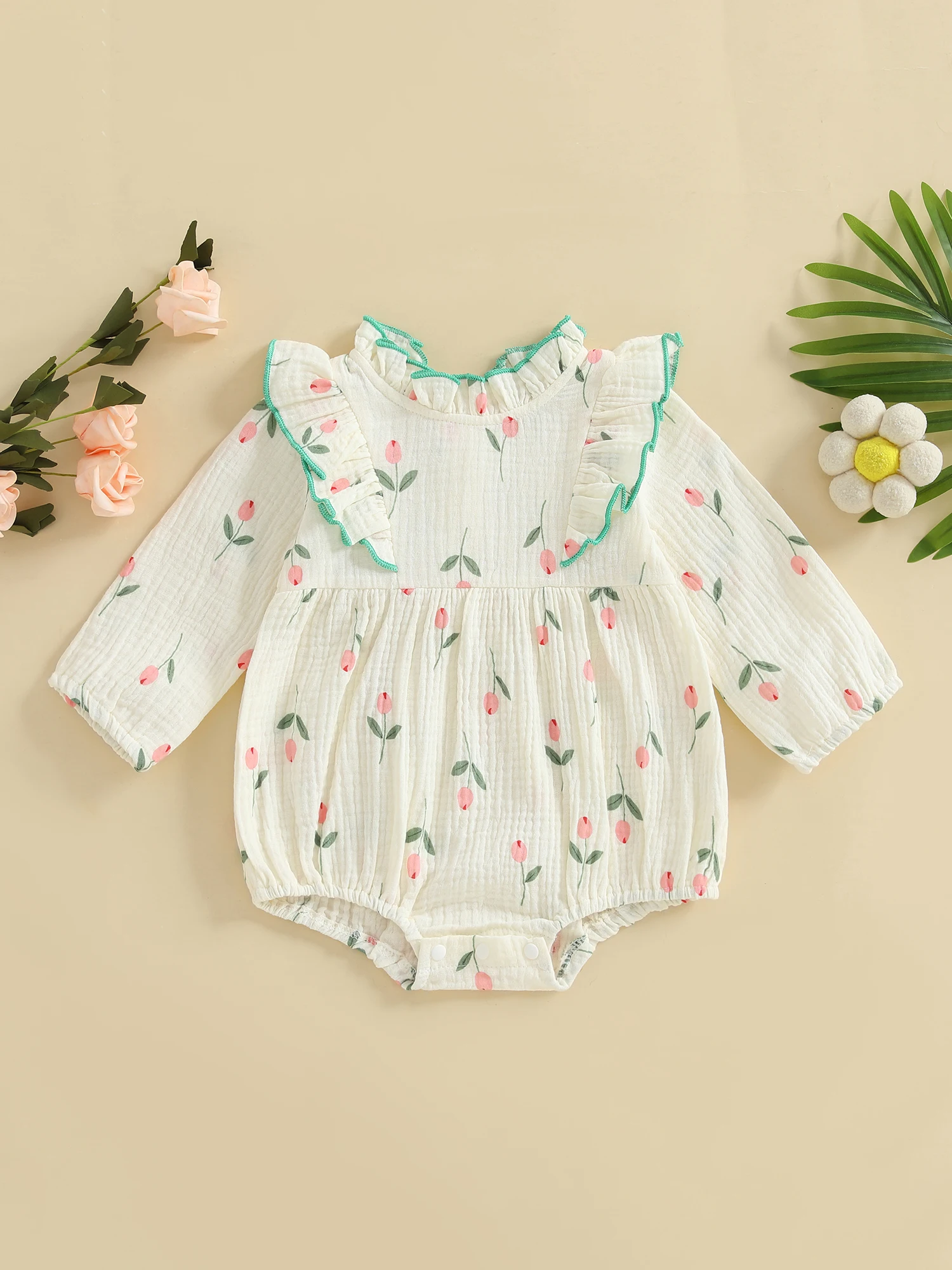 Mameluco de otoño para niñas, monos informales con estampado Floral y volantes de manga larga para recién nacidos, ropa de moda