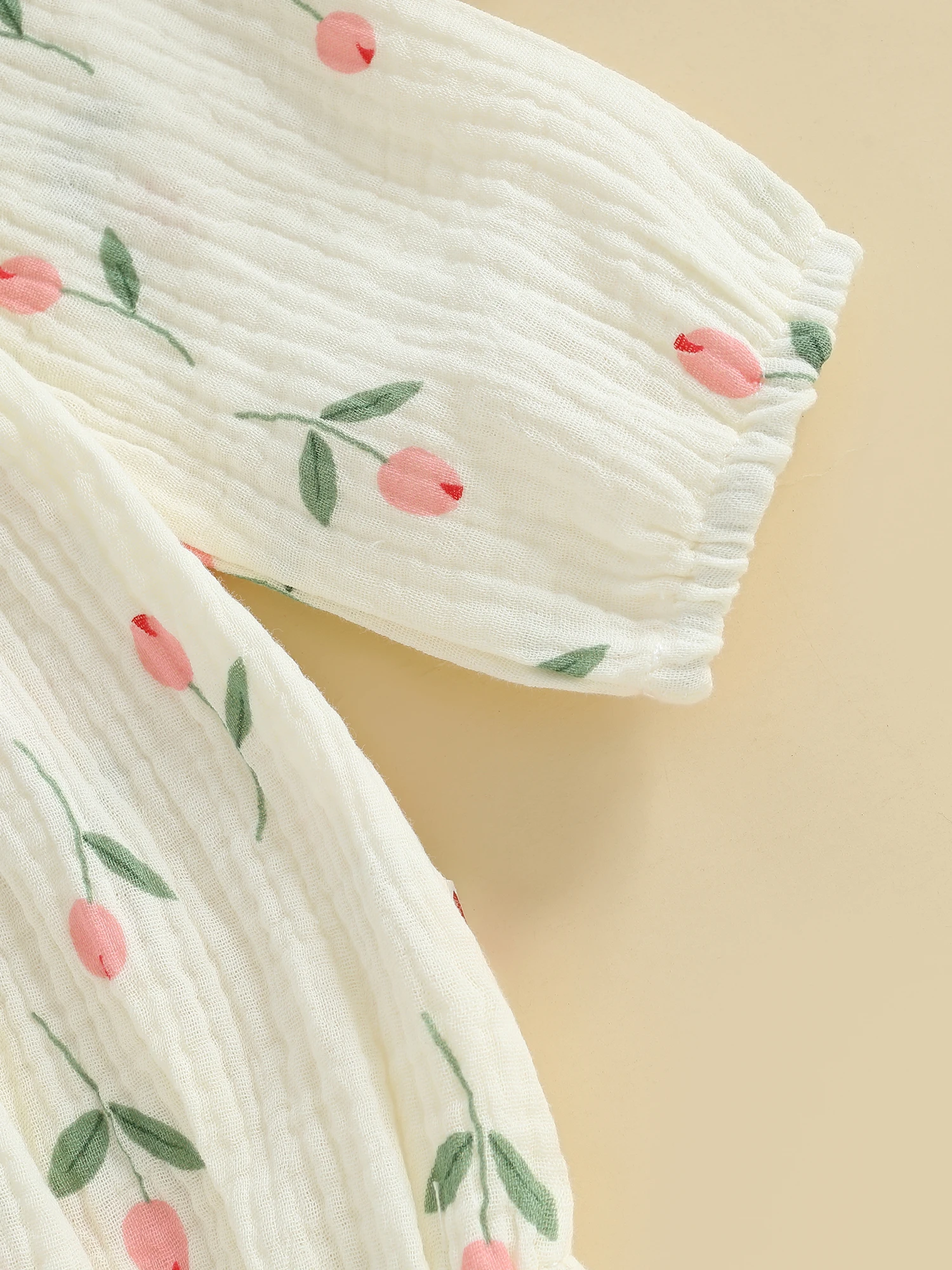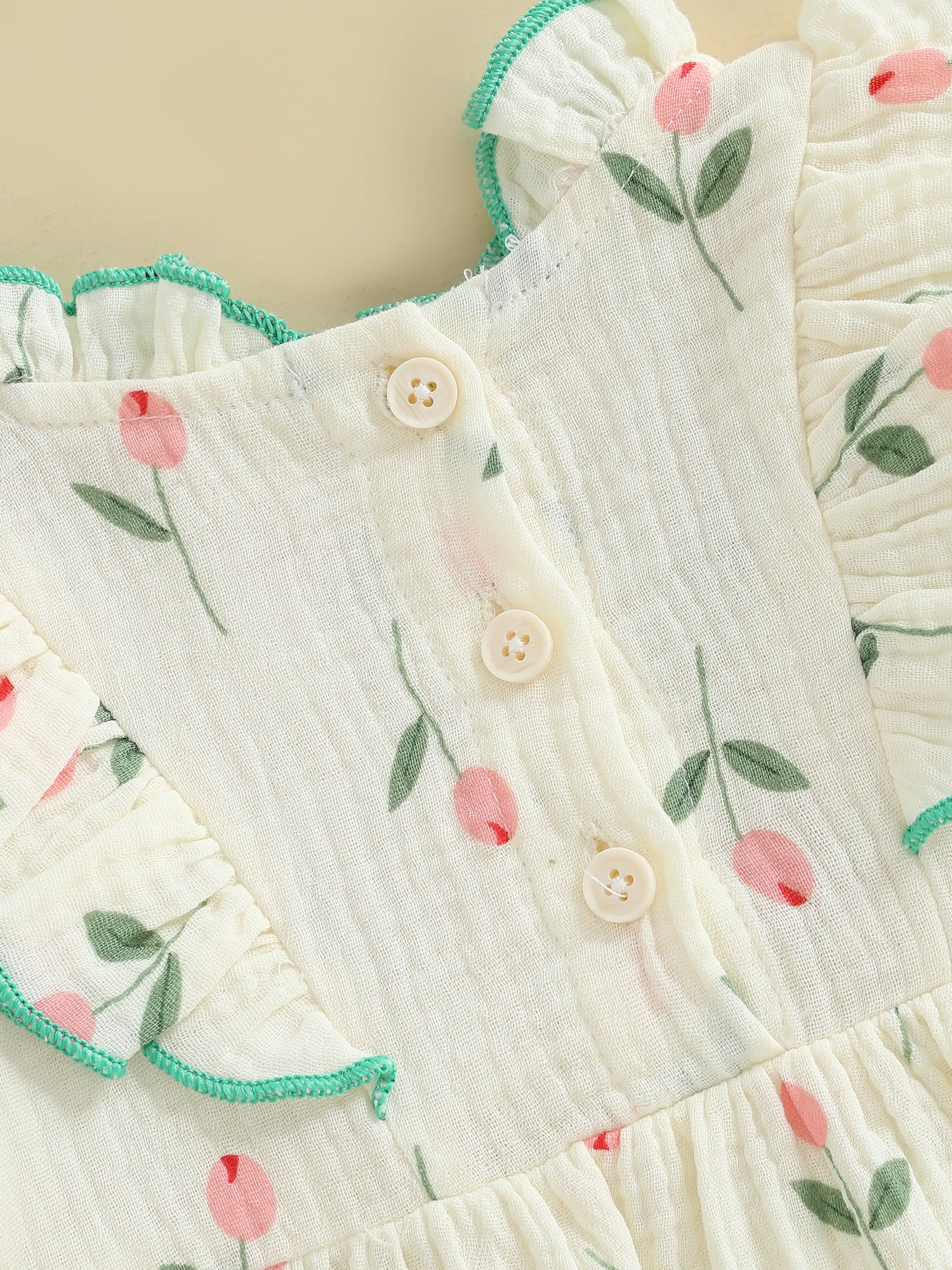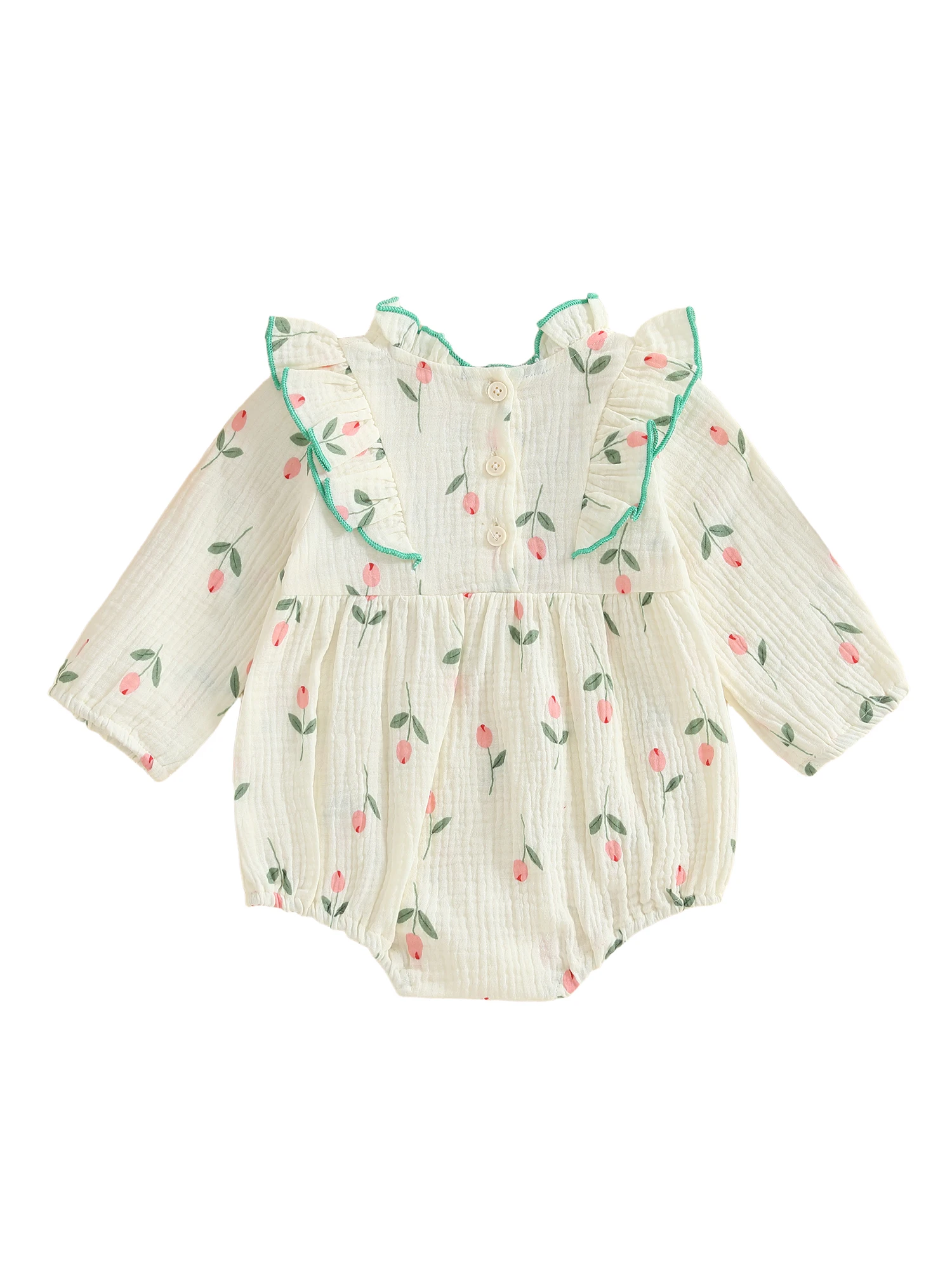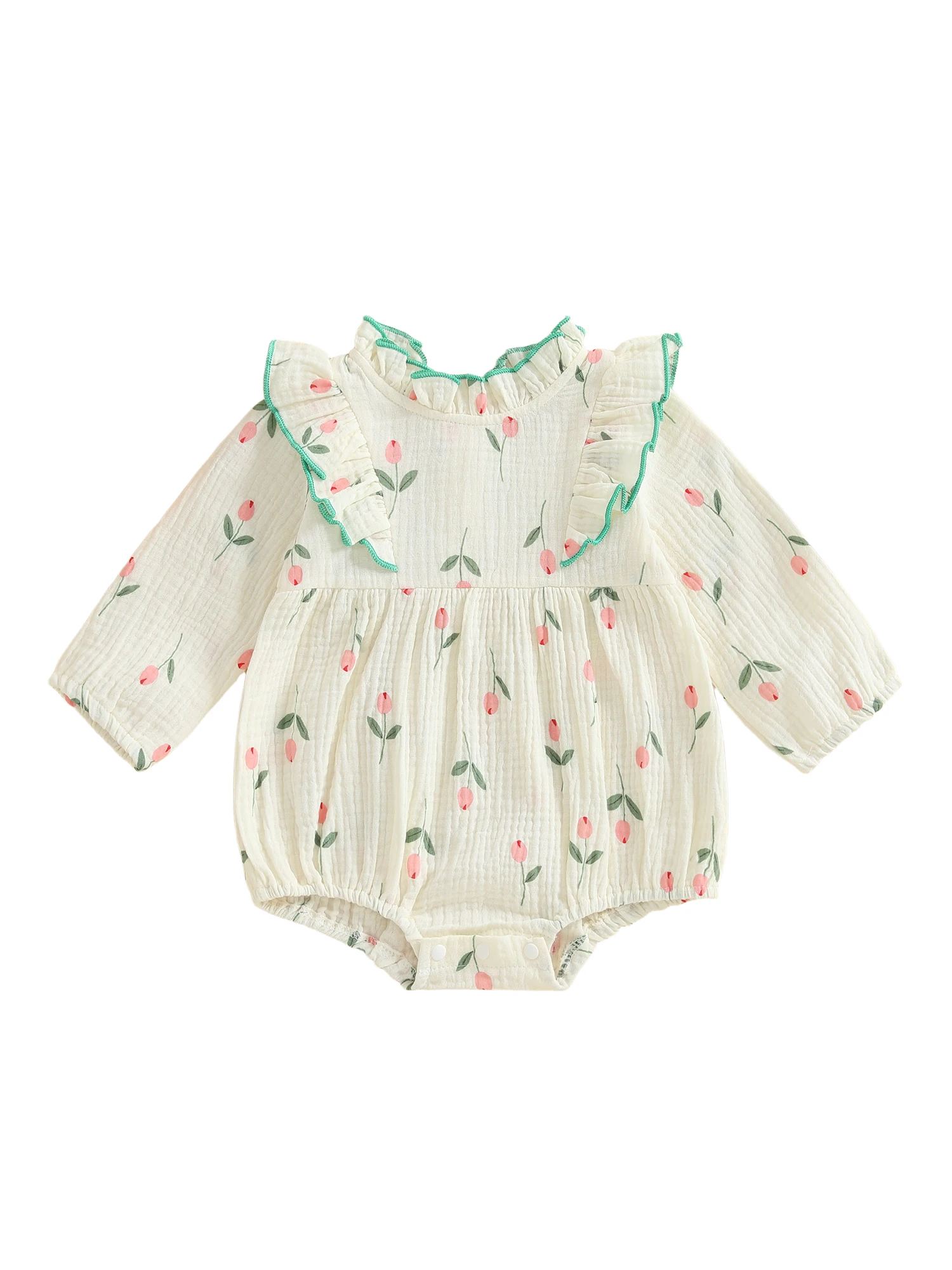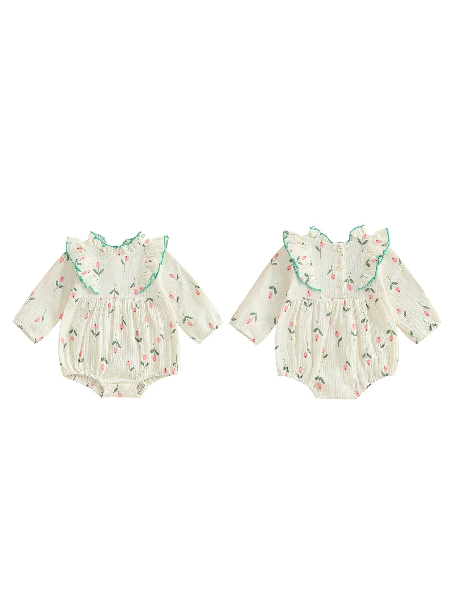Características Estampado floral, volantes, cuello redondo, manga larga, botones en la entrepierna; Mono y pelele para niñas con detalles de diseño exquisitos para que tu pequeña se destaque entre la multitud. Adecuado para uso diario casual, juegos al aire libre, bodas, vacaciones, fiestas de cumpleaños, reuniones familiares, fotografía.