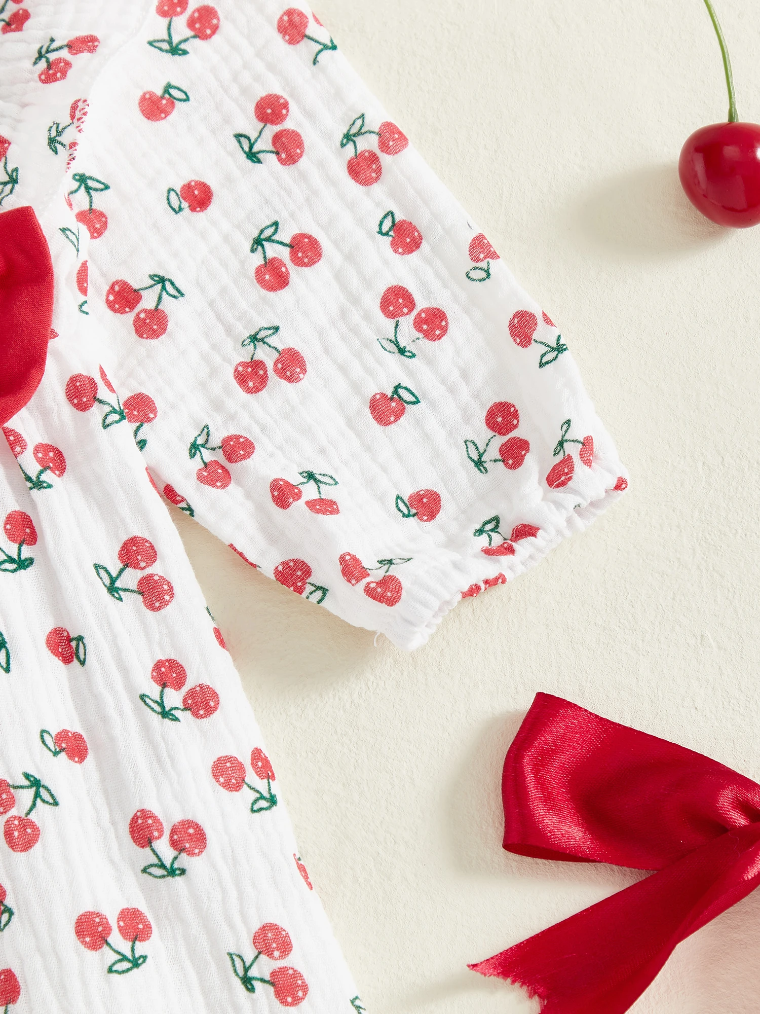 Especificación: Materiales: 95% algodón y 5% poliéster Patrón: Patrón de cereza Manga: manga larga Color blanco