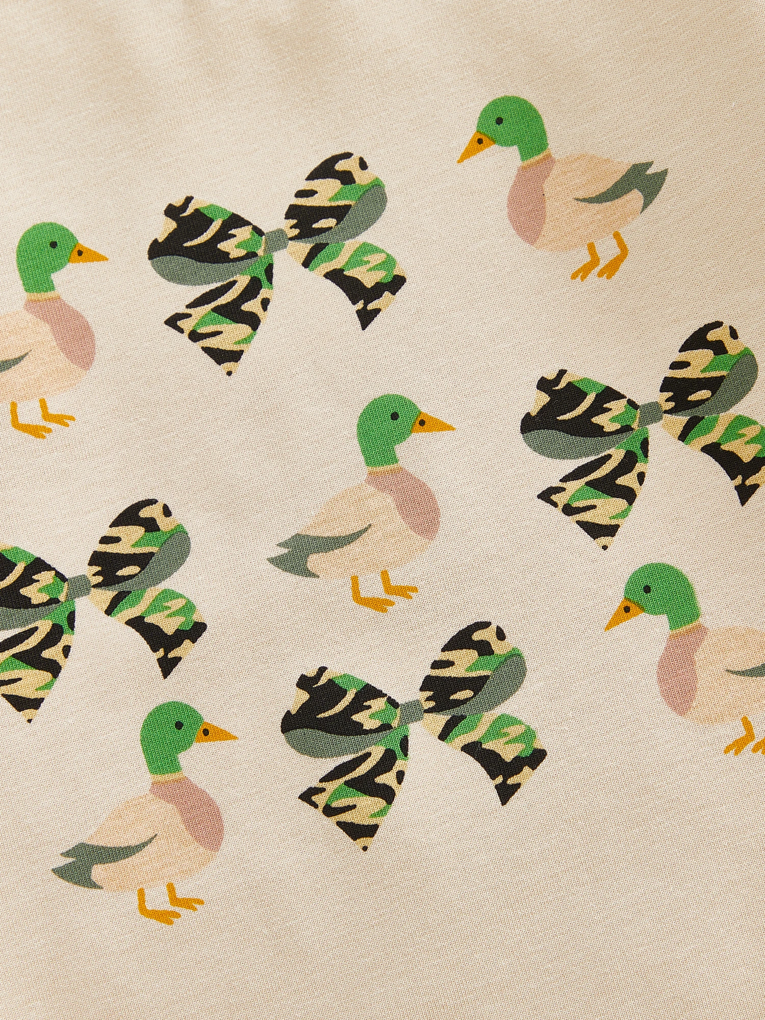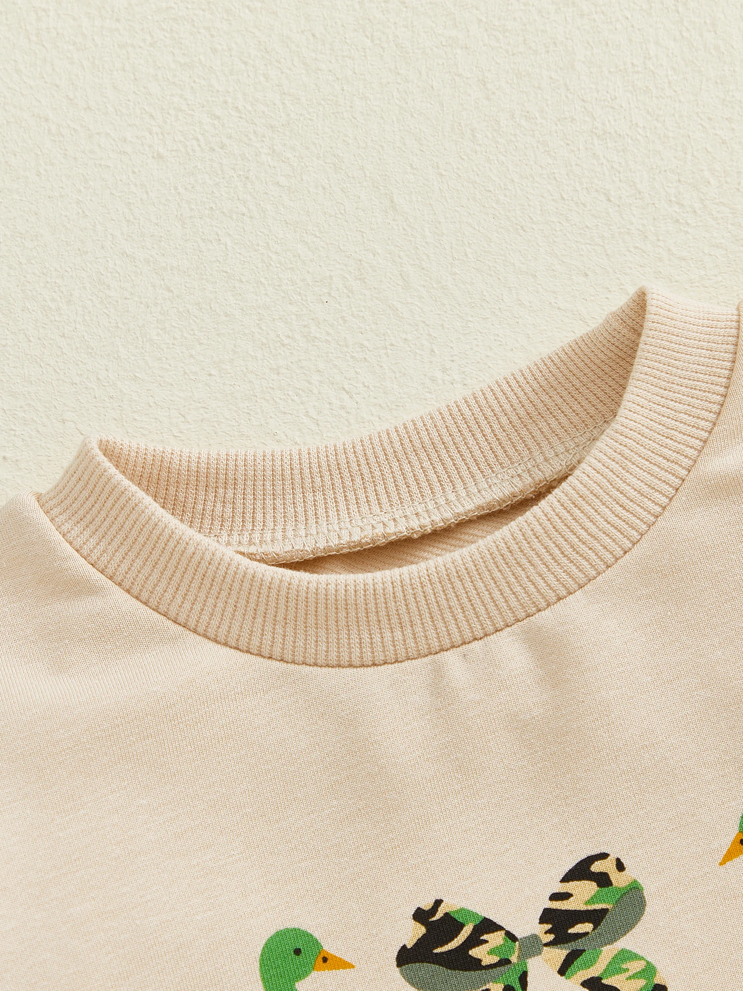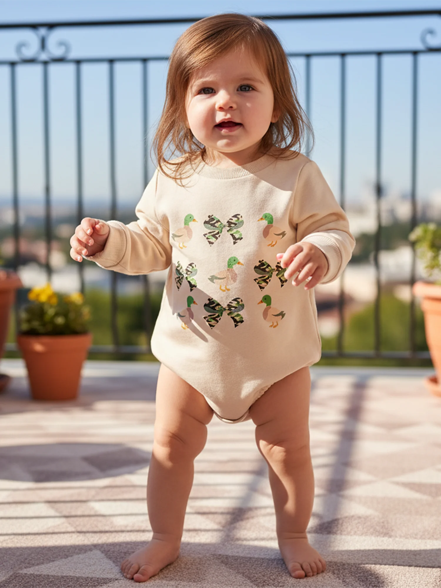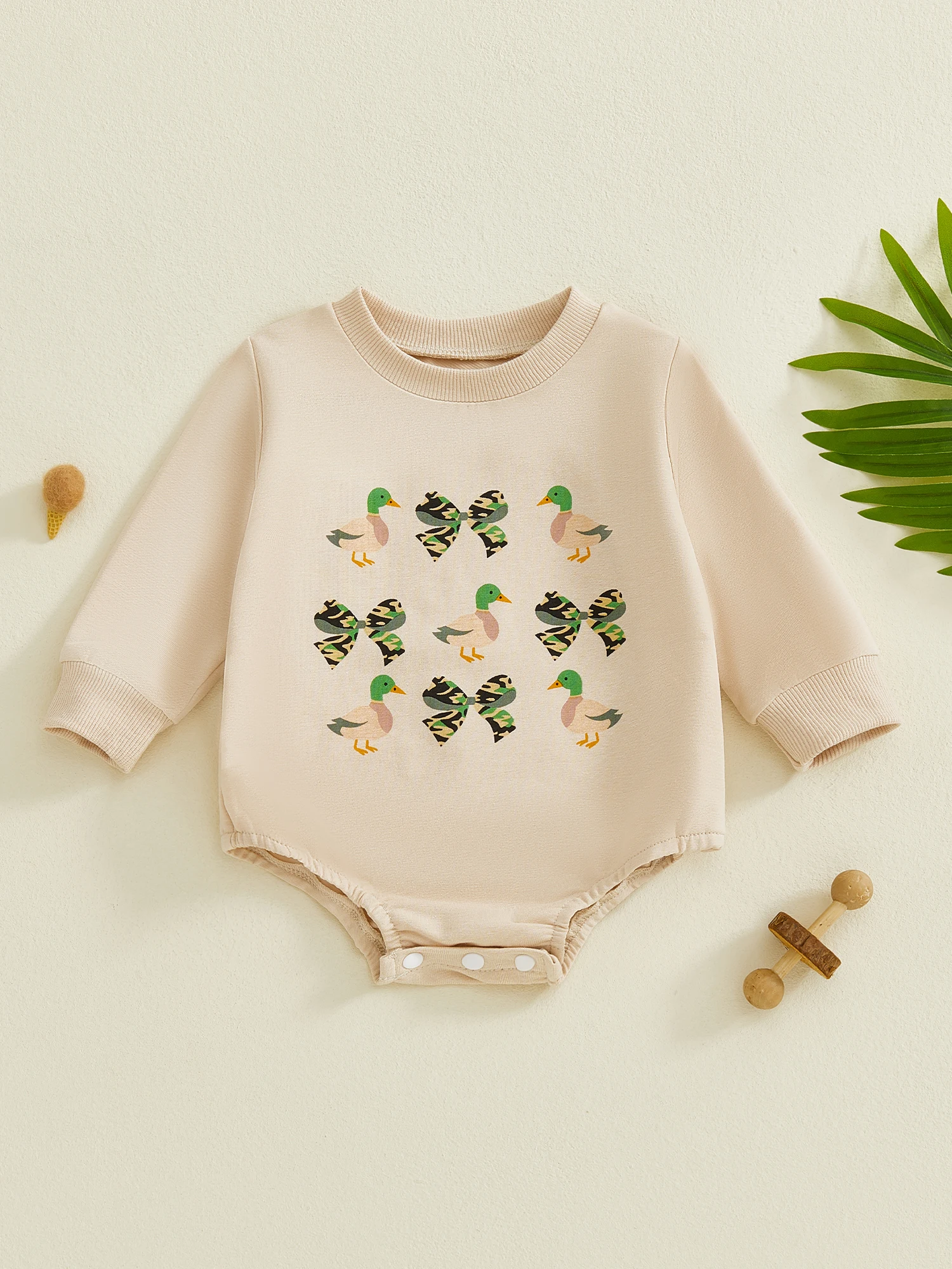 Mamelucos de otoño para niña, manga larga, cuello redondo, mono estampado de lazo de pato de camuflaje