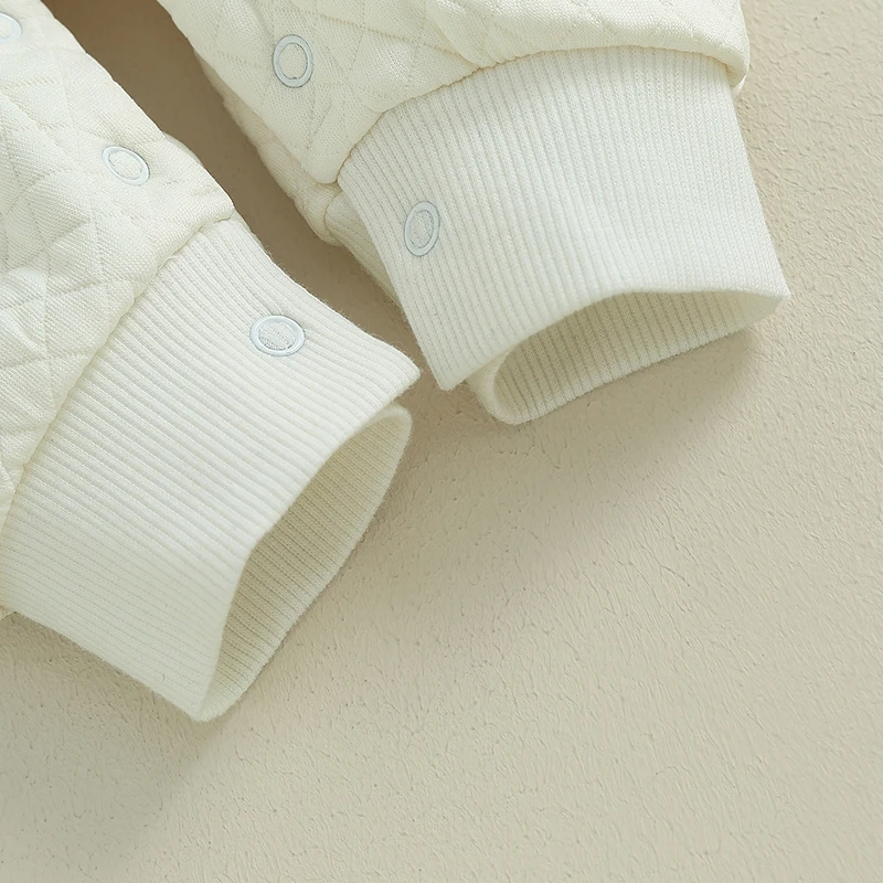 Monos acolchados para bebés, niños y niñas, monos bonitos de manga larga con bordado de oso, atuendo para recién nacidosCaracterísticas:-La tela súper suave hace que su bebé se sienta súper cómodo.Mameluco de otoño perfecto para bebés y niños.-Lavar a máquina/agua fría/colgar seco.Tamaño (cm)60 Longitud: 51 Busto: 48 Edad recomendada: 0-3 meses70 Longitud: 55 Busto: 50 Edad recomendada: 3-6 mesesTamaño (pulgadas)60 Longitud: 20,08 Busto: 18,90 Edad recomendada: 0-3 meses70 Longitud: 21,65 Busto: 19,69 Edad recomendada: 3-6 mesesEspecificación:Material: 95% algodón, 5% poliésterColor: BlancoEstilo: Casual, dulceGénero aplicable: Niños, NiñasTemporadas adecuadas: otoño, primavera, InviernoPaquete incluido1 mamelucoPromesaSi el producto tiene algún problema de calidad, no dude en contactarnos, le ayudaremos a resolver el problema lo más rápido posible.