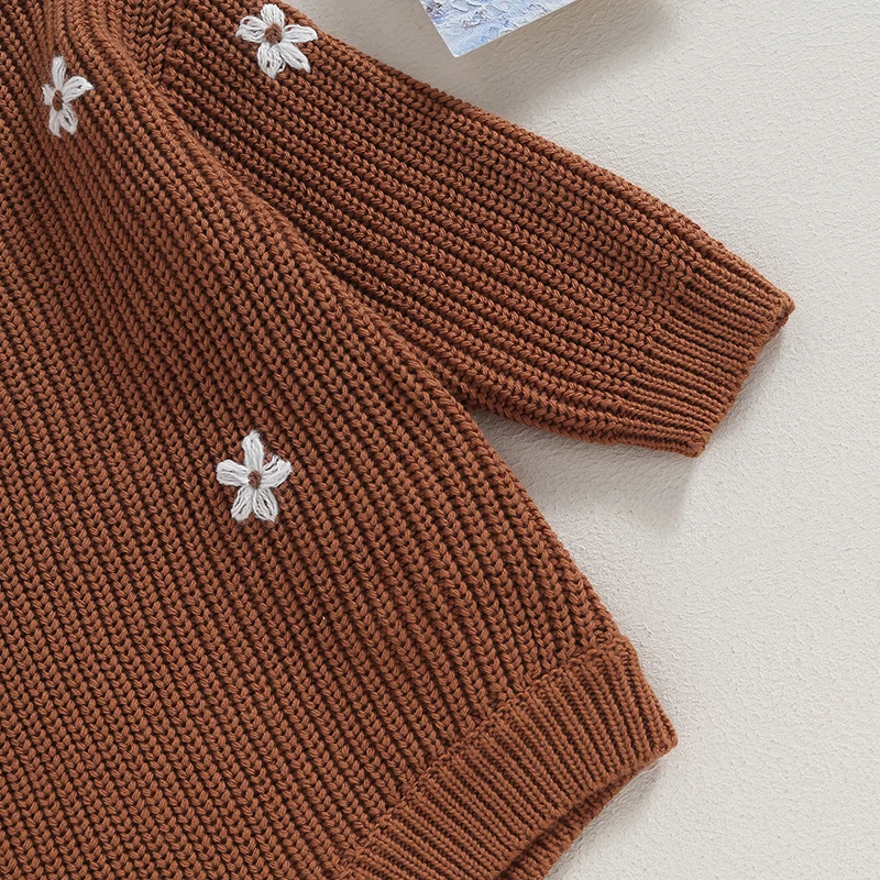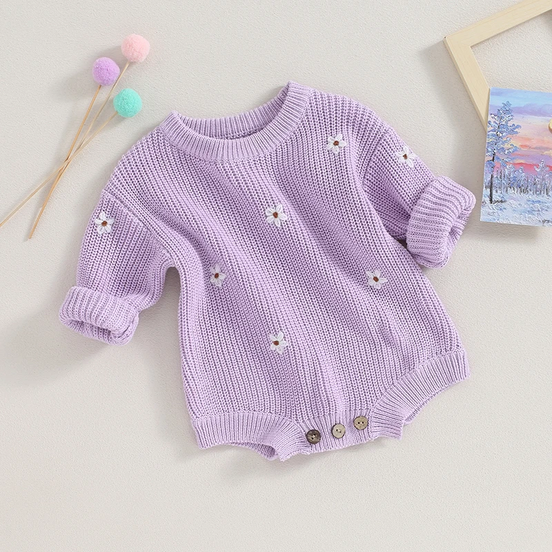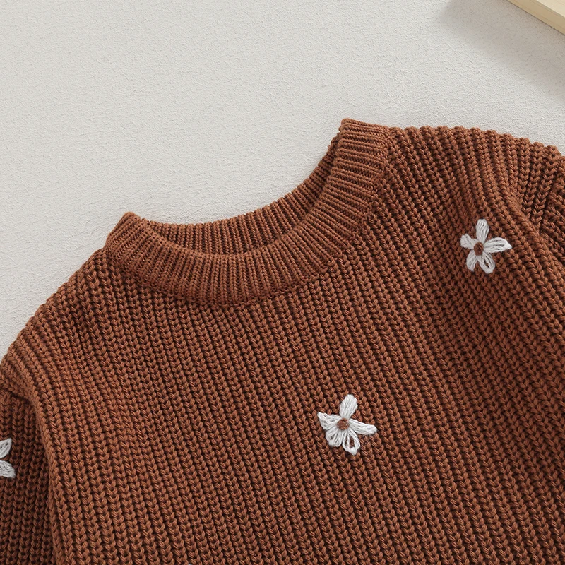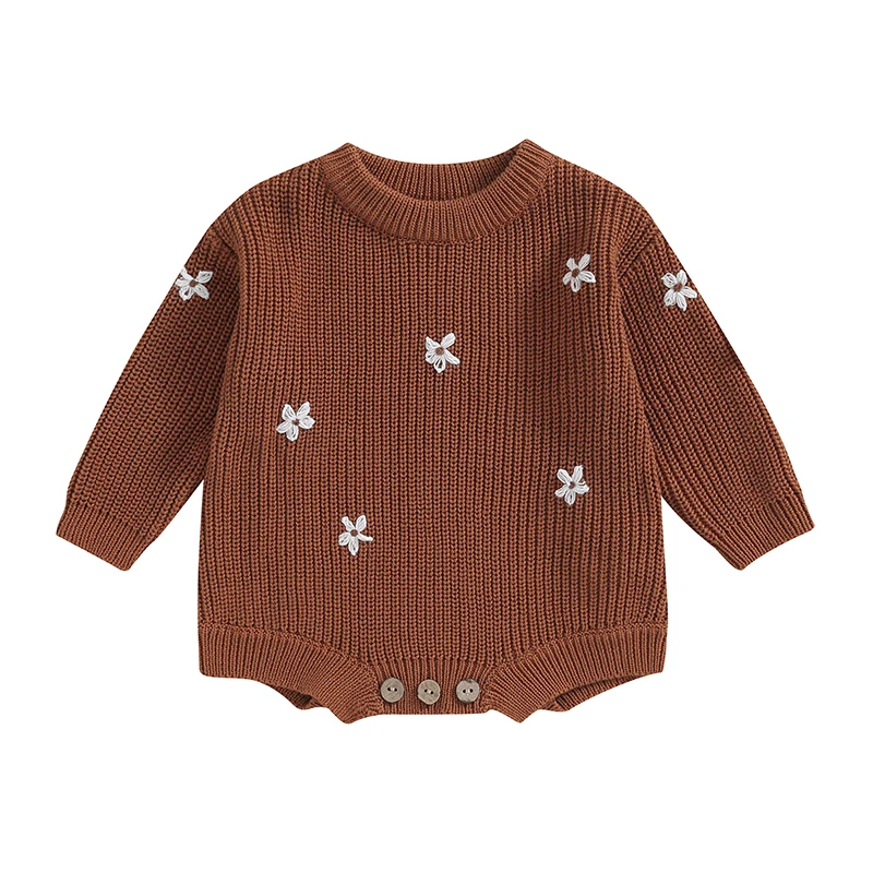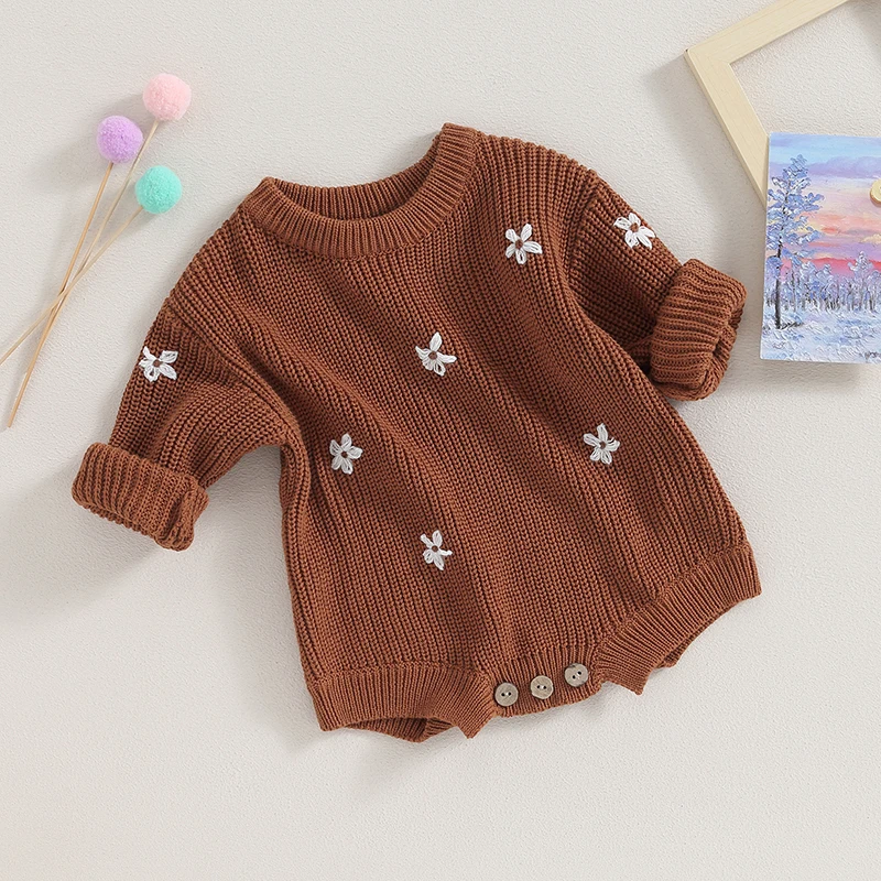 Suéter para bebés, niños y niñas, peleles con bordado de flores, cuello redondo, manga larga, monos infantiles, ropa de otoño para niños pequeños, monos de punto