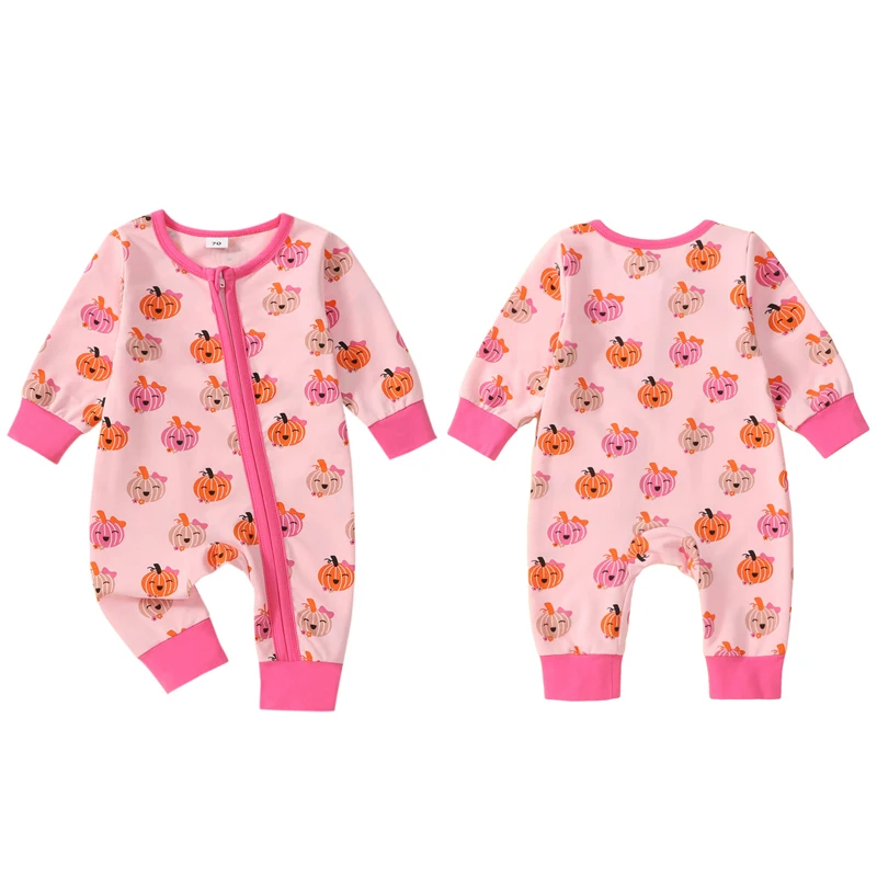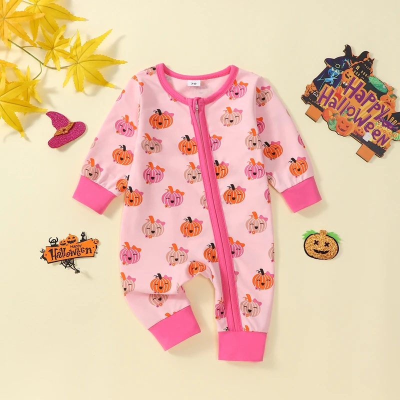 Comprar VISgogo-Pelele con estampado de calabaza para niña, mono de manga larga con cremallera frontal, cuello redondo, largo completo, ropa de otoño para recién nacido