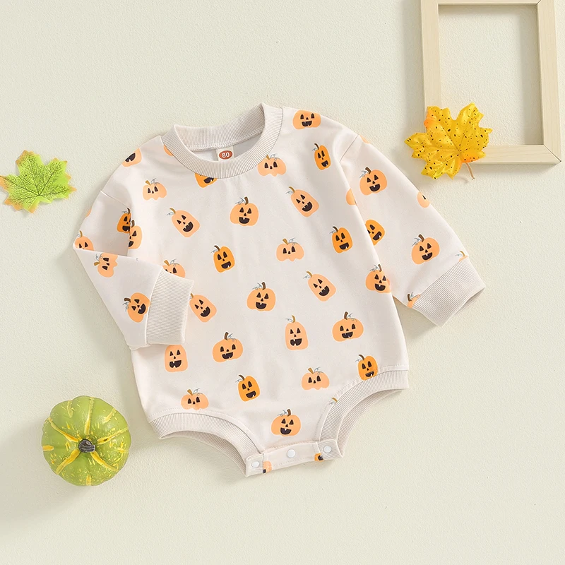 Comprar VISgogo-Pelele de Halloween para bebé de 0 a 24 meses, mono de manga larga con cuello redondo, estampado de calabaza/Lazo, traje de otoño para recién nacido