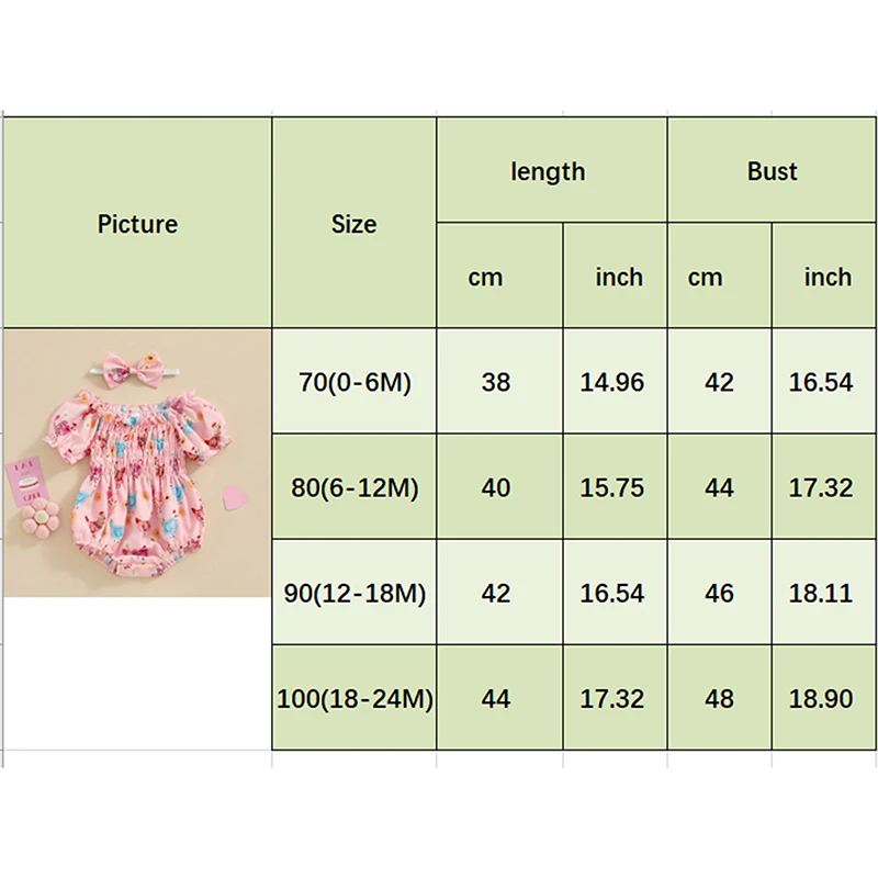 Mono infantil para niña, mono de manga corta con estampado de pollo y gallina de dibujos animados con diadema con lazoTamaño (cm)70 Longitud: 38 Busto: 42 Edad sugerida: 0-6 meses80 Longitud: 40 Busto: 44 Edad recomendada: 6-12 meses90 Longitud: 42 Busto: 46 Edad sugerida: 12-18 meses100 Longitud: 44 Busto: 48 Edad sugerida: 18-24 mesesTamaño (pulgadas)70 Longitud: 14,96 Busto: 16,54 Edad sugerida: 0-6 meses80 Longitud: 15,75 Busto: 17,32 Edad sugerida: 6-12 meses90 Longitud: 16,54 Busto: 18,11 Edad sugerida: 12-18 meses100 Longitud: 17,32 Busto: 18,9 Edad sugerida: 18-24 mesesEspecificación:Materiales: 95% poliéster y 5% ElastanoEstilo: CasualPatrón: estampado animalEdad: Recién nacidoColor: RosaPaquete incluido1 * mono + 1 * diademaPromesaSi el producto tiene algún problema de calidad, no dude en contactarnos, le ayudaremos a resolver el problema lo más rápido posible.
