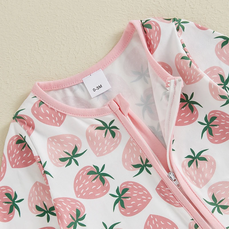 Comprar VISgogo-Pelele de manga larga con estampado de fresas para niñas, monos con cremallera frontal, ropa de otoño para recién nacidos, 0 a 6 meses